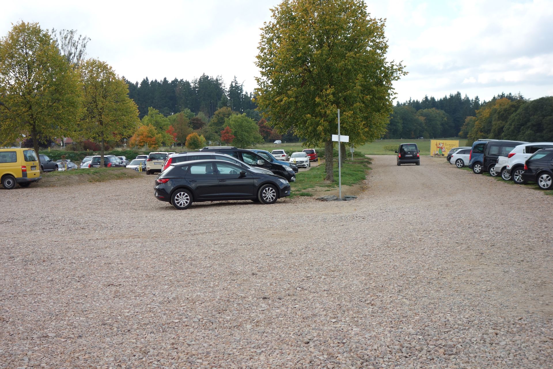 Der Parkplatz befindet sich auf der anderen Straßenseite und wurde wohl im Zuge der Neugestaltung frisch geschottert.