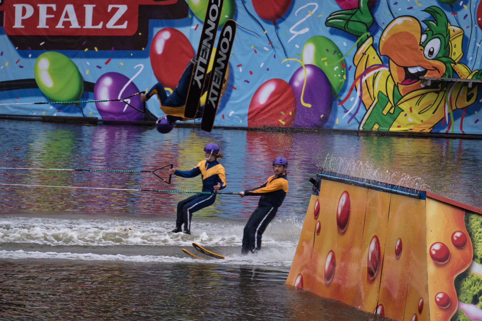 Eiskaltes Wasser und geübte Wasserskifahrer dominieren die Show,