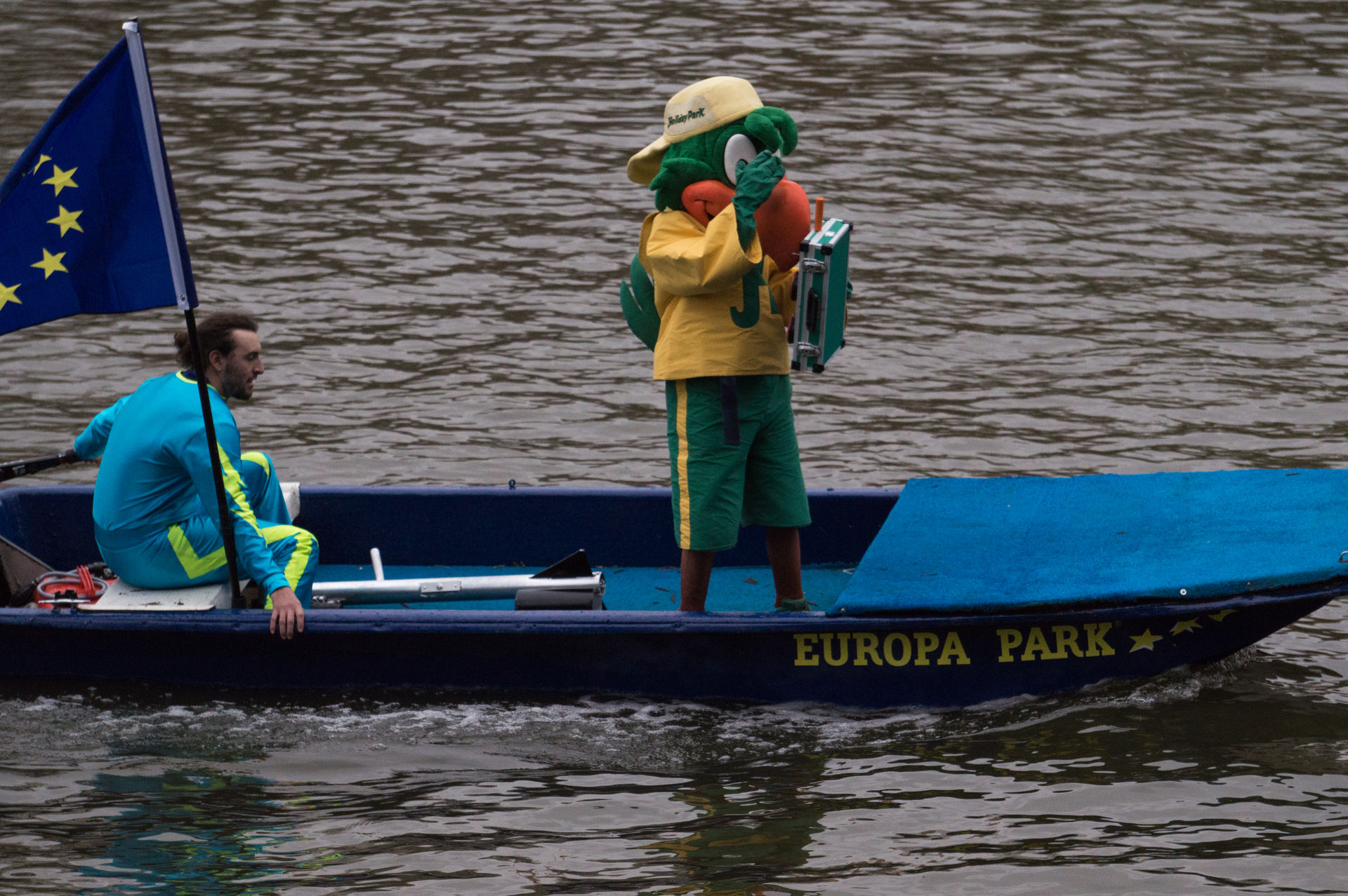 Dabei sind die nett winkenden Darsteller keineswegs nett, denn Monsieur Crèmebrûlée und sein Companion sind die Bösewichte der diesjährigen Wasserskishow. In ihr möchte der böse, böse Disney Park aus Paris die ach so tolle Wasserskishow des Holiday Parks ruinieren und später sogar das altehrwürdige Maskottchen Holly kidnappen, der hier eigentlich nur seinen 45. Geburtstag feiern möchte. Mit der Hilfe der Supermacht von Roland