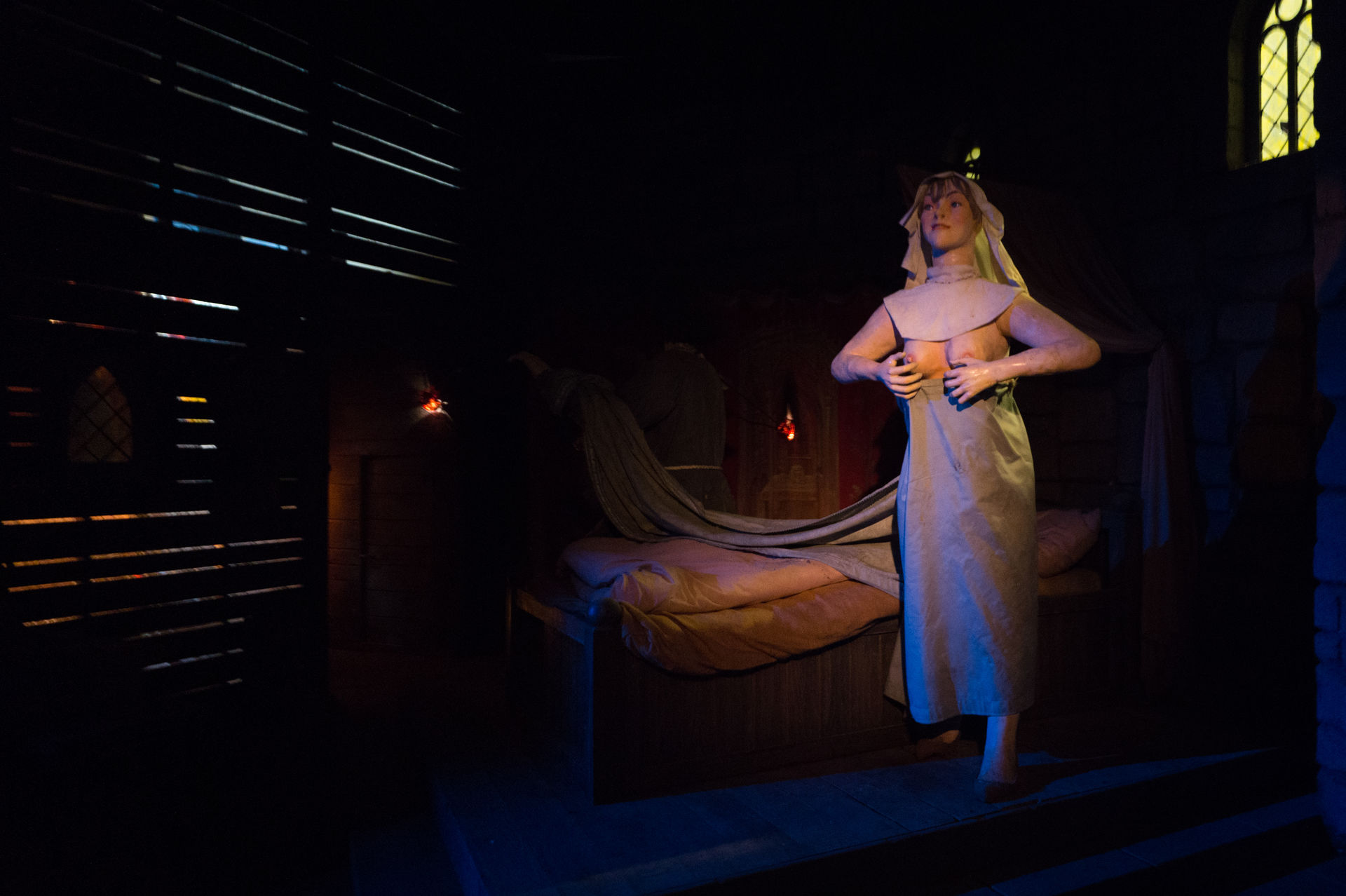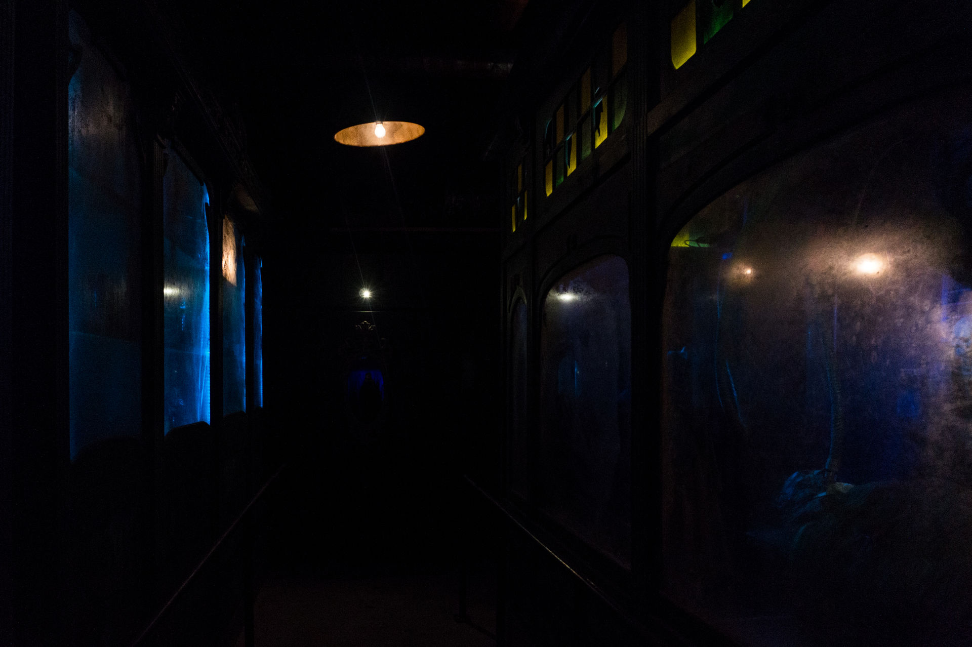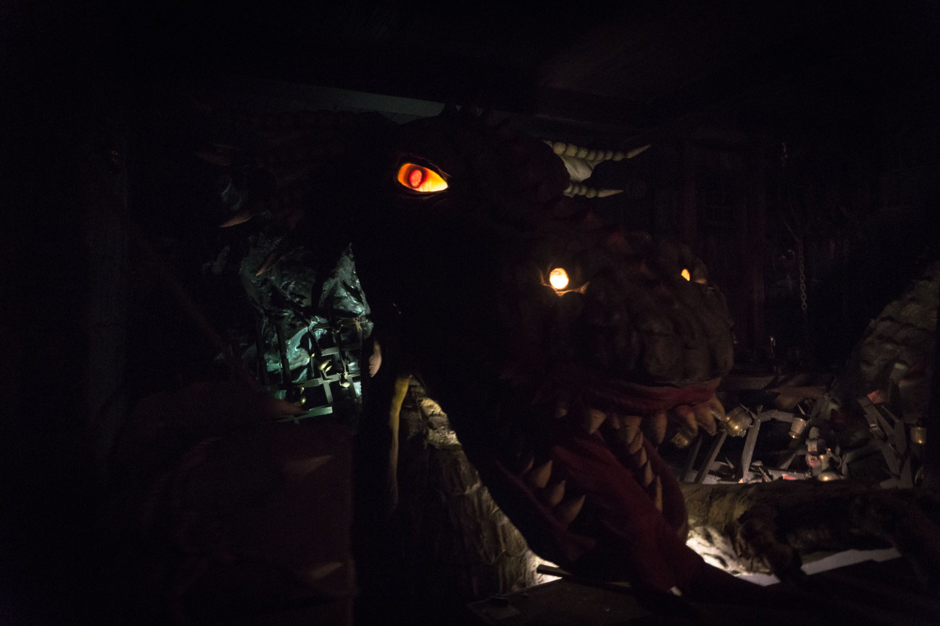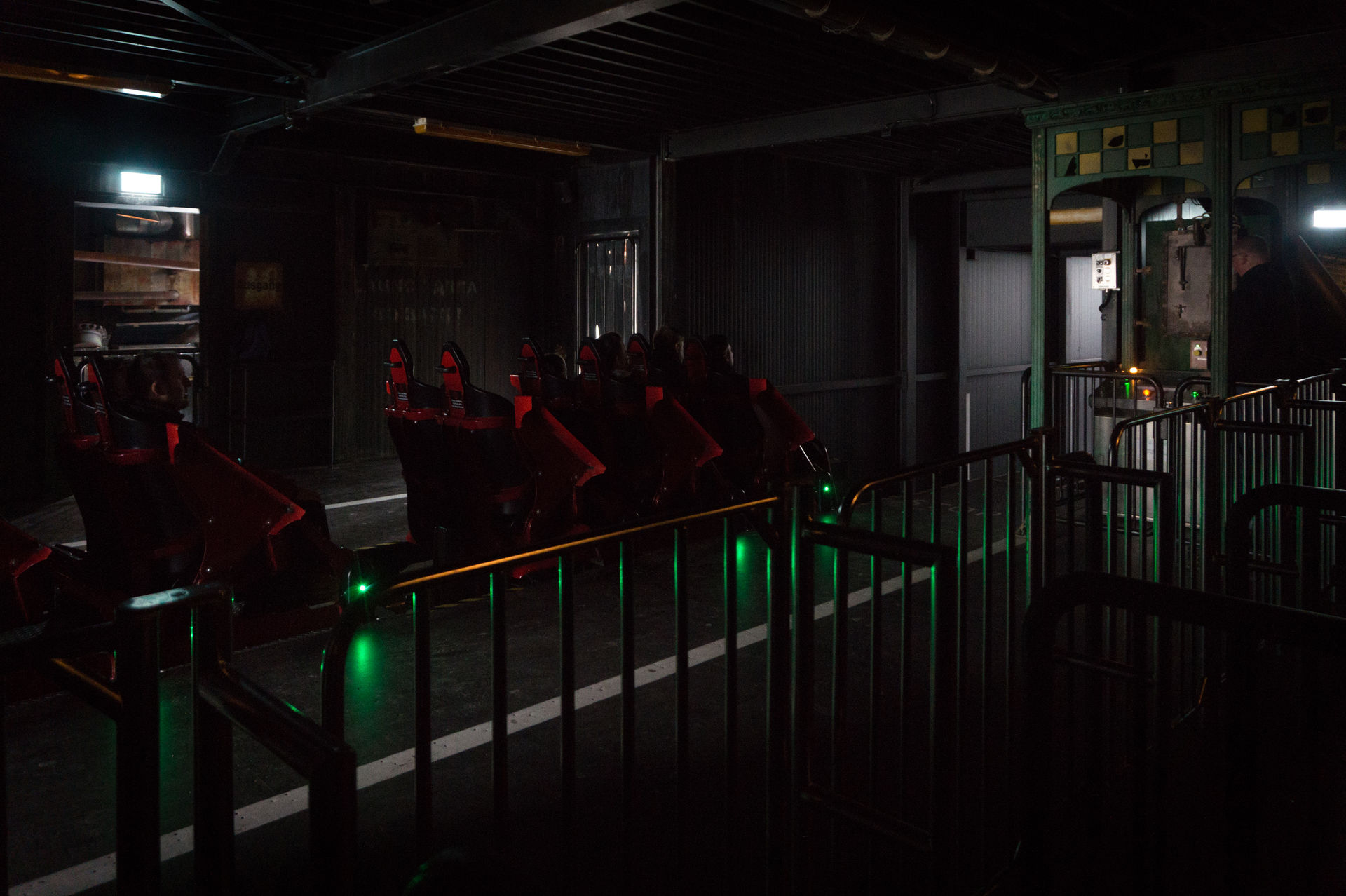 Es ist schon sehr interessant, dass man eine Achterbahn, die man bereits von ihrem Eröffnungstag an kennt, immer wieder neu erleben kann. Nachdem man bereits in der Saison 2014 das Äußere der Anlage poliert hatte konnte ich mich nun endlich von den inneren Werten überzeugen. Dabei waren im letzten Jahr, also dem Eröffnungsjahr der fertigen Warteschlange, bizarrste Horrorgeschichten und Weltanschauungen über eben jene vorgetragen wurden, so dass meine Erwartungshaltung doch sehr hoch war. Zugegebenermaßen ist die Szene mit den herausschnellenden Augen der alten Hexe aus Tim Burtons Filmklassiker Sleepy Hollow dann doch tausend mal gruseliger als die geplatzte Schädel-Szene im Eingangsbereich der Attraktion, aber man kann es ja auch übertreiben. Insgesamt ist die Warteschlange sehr stimmig umgesetzt und leitet die Fahrt auf der Anlage hervorragend ein, zumal der Wartebereich gespenstisch leer war.