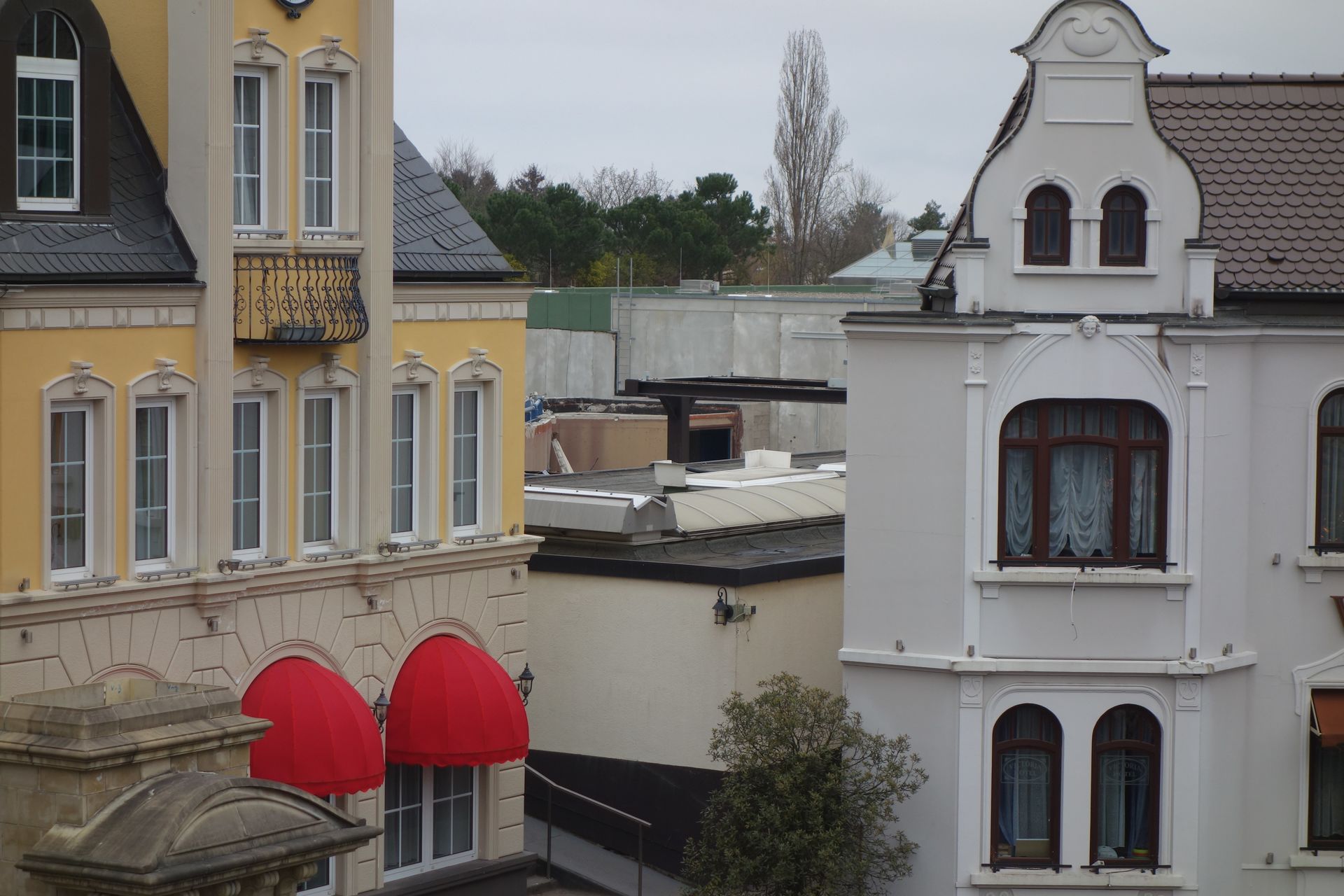 Von hier ist die Baustelle nur schwer einsehbar. Man sieht nur Dächer.