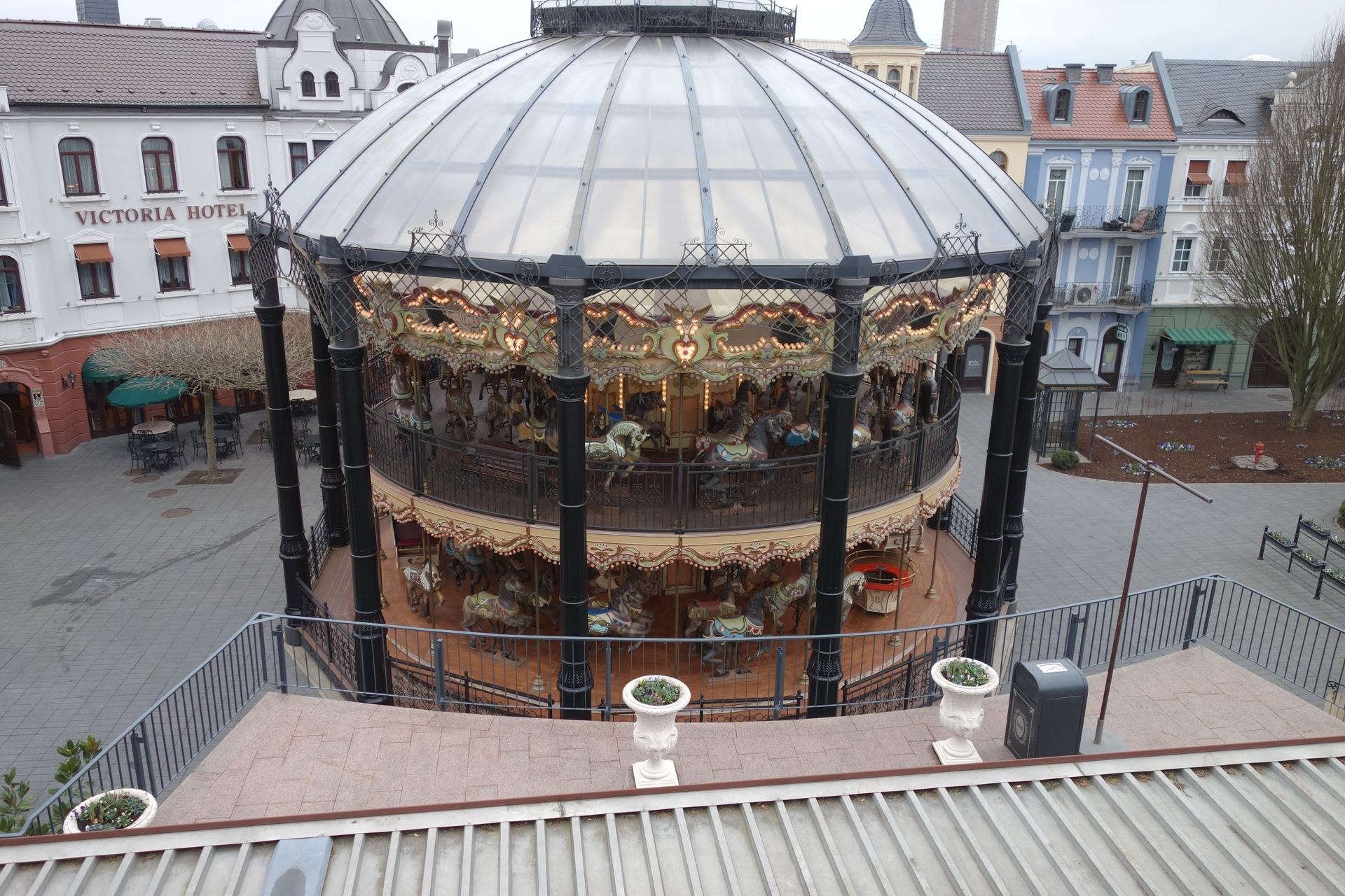 Der interaktive Darkride sollte im 9:30 Uhr öffnen, alle übrigen Attraktionen nahmen erst um 10 den Betrieb auf. Bei den paar Menschen, die direkt in Berlin den Park betraten, stand ich ganz vorne in der Schlange vor dem Eingang. Caruso ließ allerdings auf sich warten, sodass ich bei Öffnung einfach schonmal reinging. Für die erste Fahrt des Tages hab ich mir ein klein wenig zu lange Zeit gelassen, bei der zweiten war ich dann aber dabei. Interessant fand ich ja, dass der freie Platz neben mir am Ende auch 100 Punkte hatte. Ich vermute, dass der Blitz der Fotoanlage die Sensorik beeinflusst und quasi alle Mitfahrer dadurch 100 Punkte bekommen.