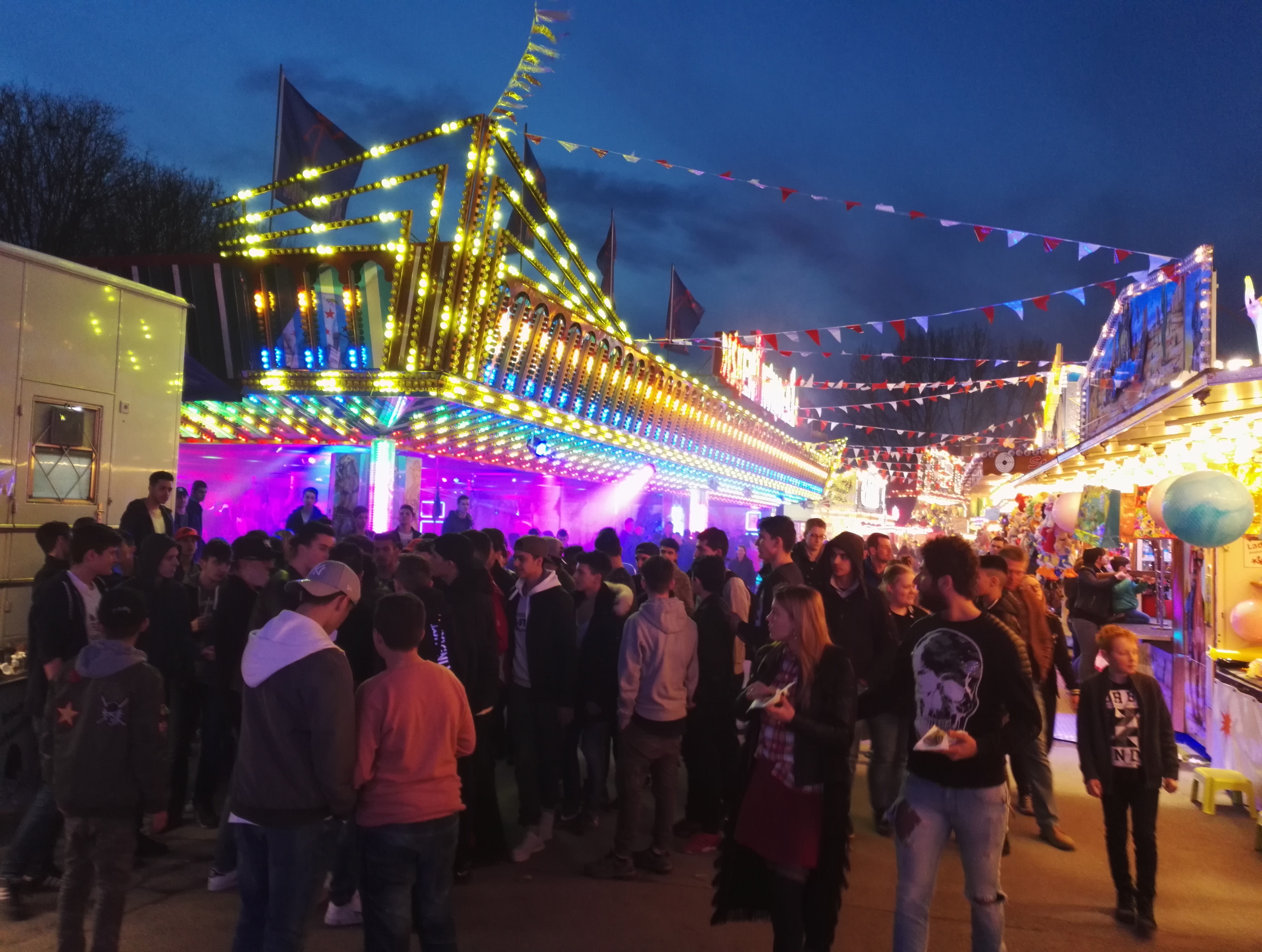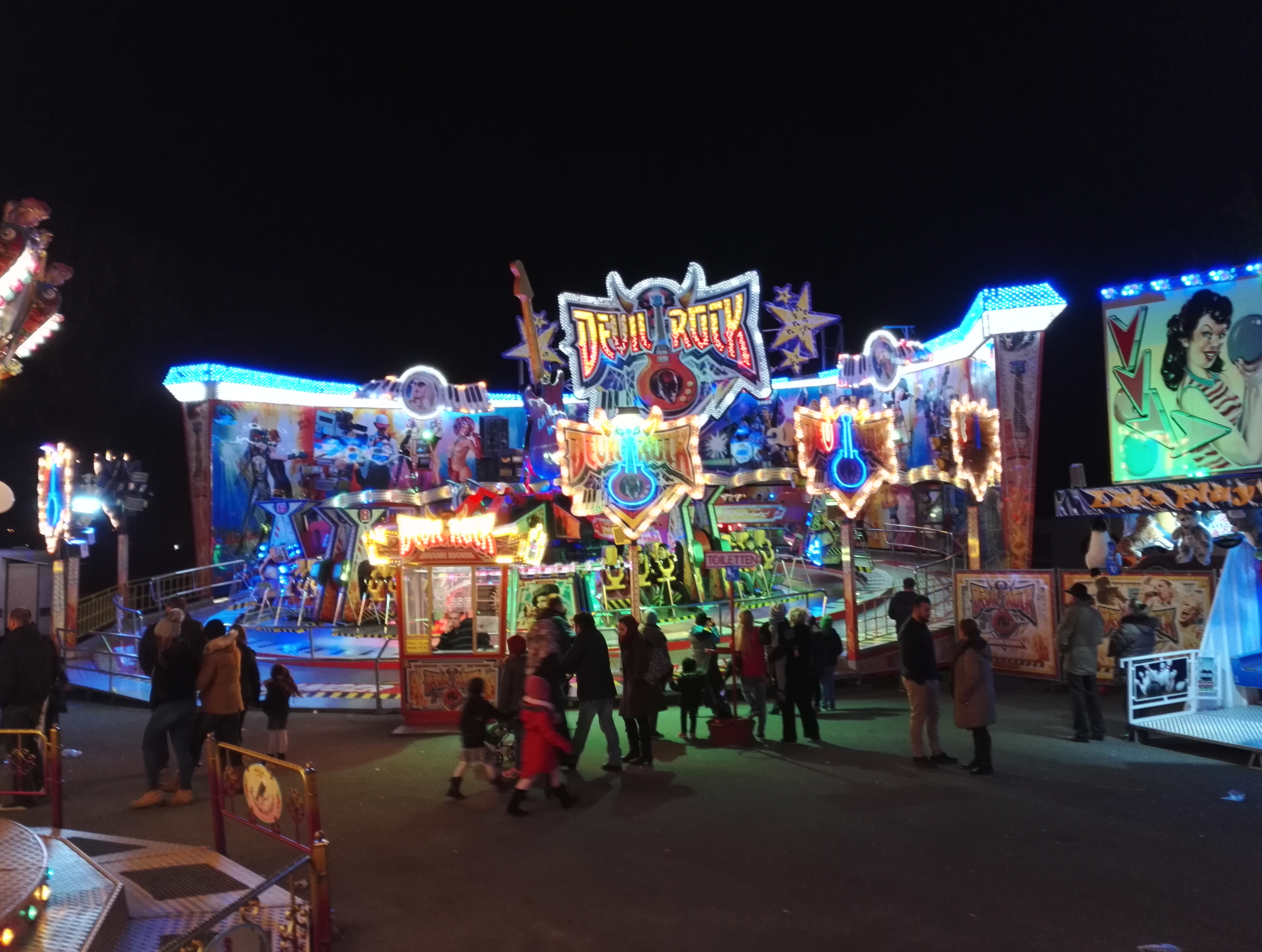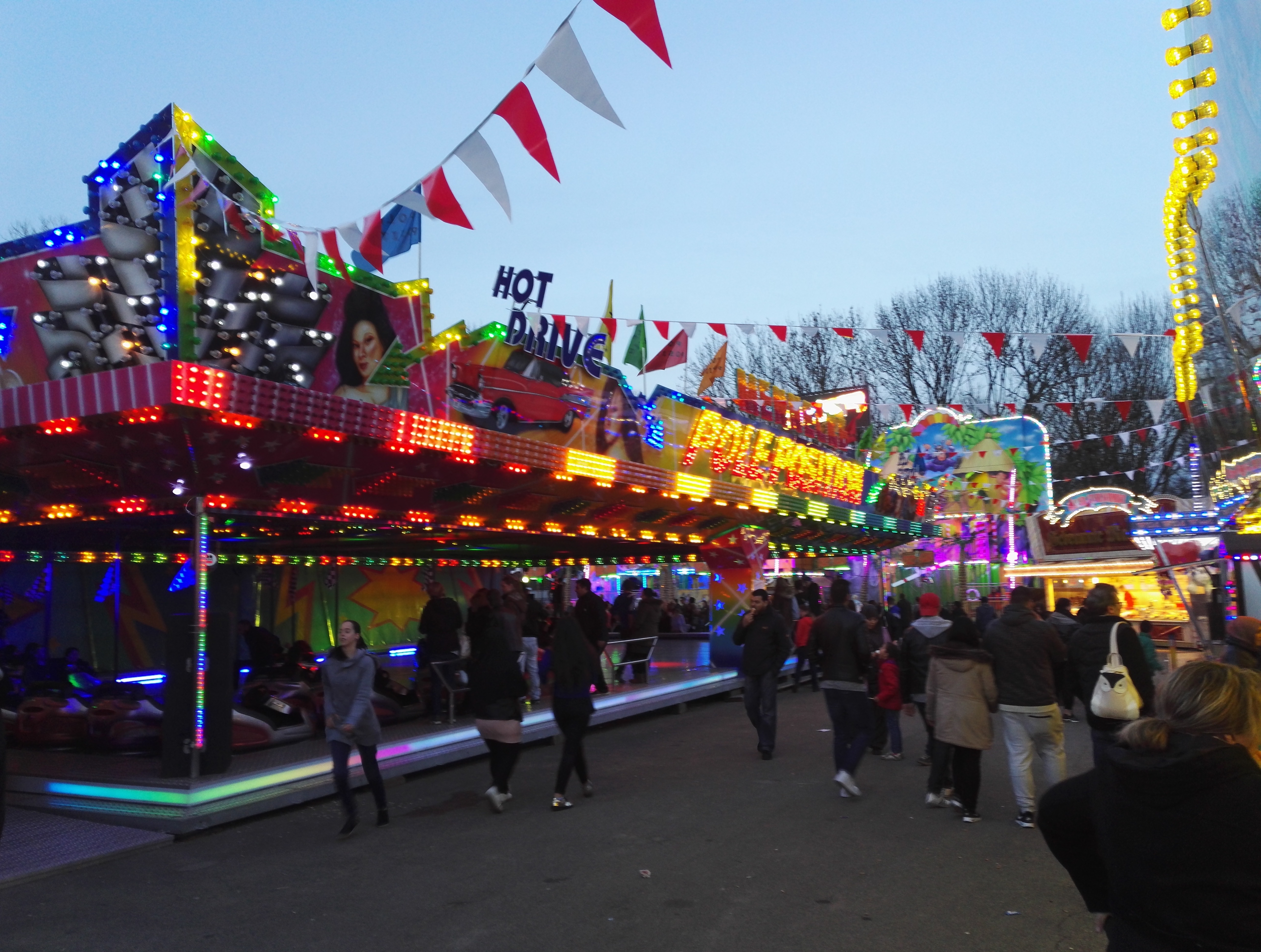 Die drei Autoscooter sollen verschiedene Geschmäcker ansprechen und zur Entzerrung auf dem Festplatz beitragen. So verkündet zumindest der gastgebende Schaustellerverein Rote Erde e.V. auf seiner Facebook-Seite das drei Scooter-Konzept. Bei Isken bildet sich bei meinem Besuch jedoch eine Traube um einen Hahnenkampf. Die übergewichtigen Sicherheitskräfte sind jedoch rasch zur Stelle und versuchen den Konflikt zu schlichten.