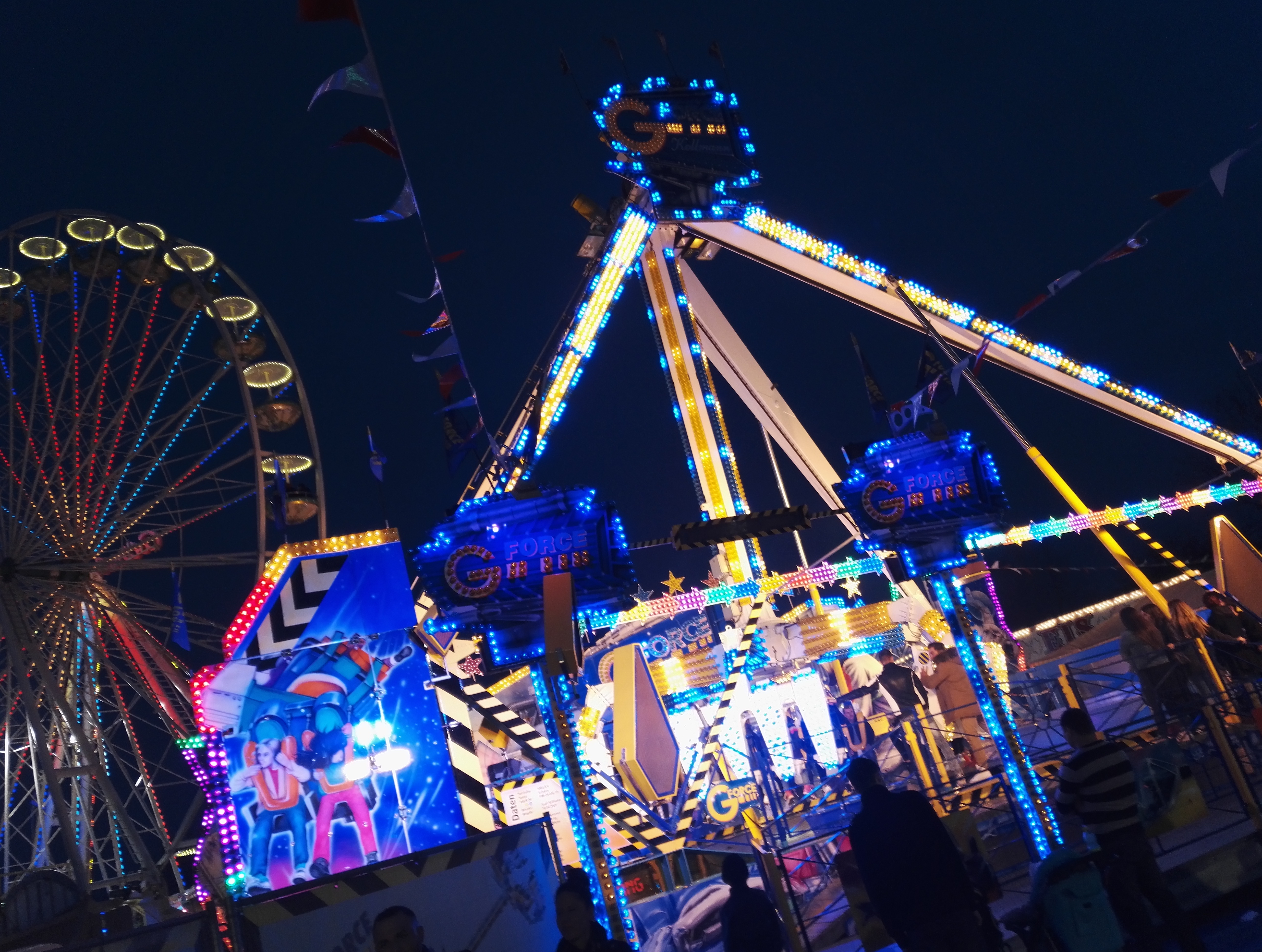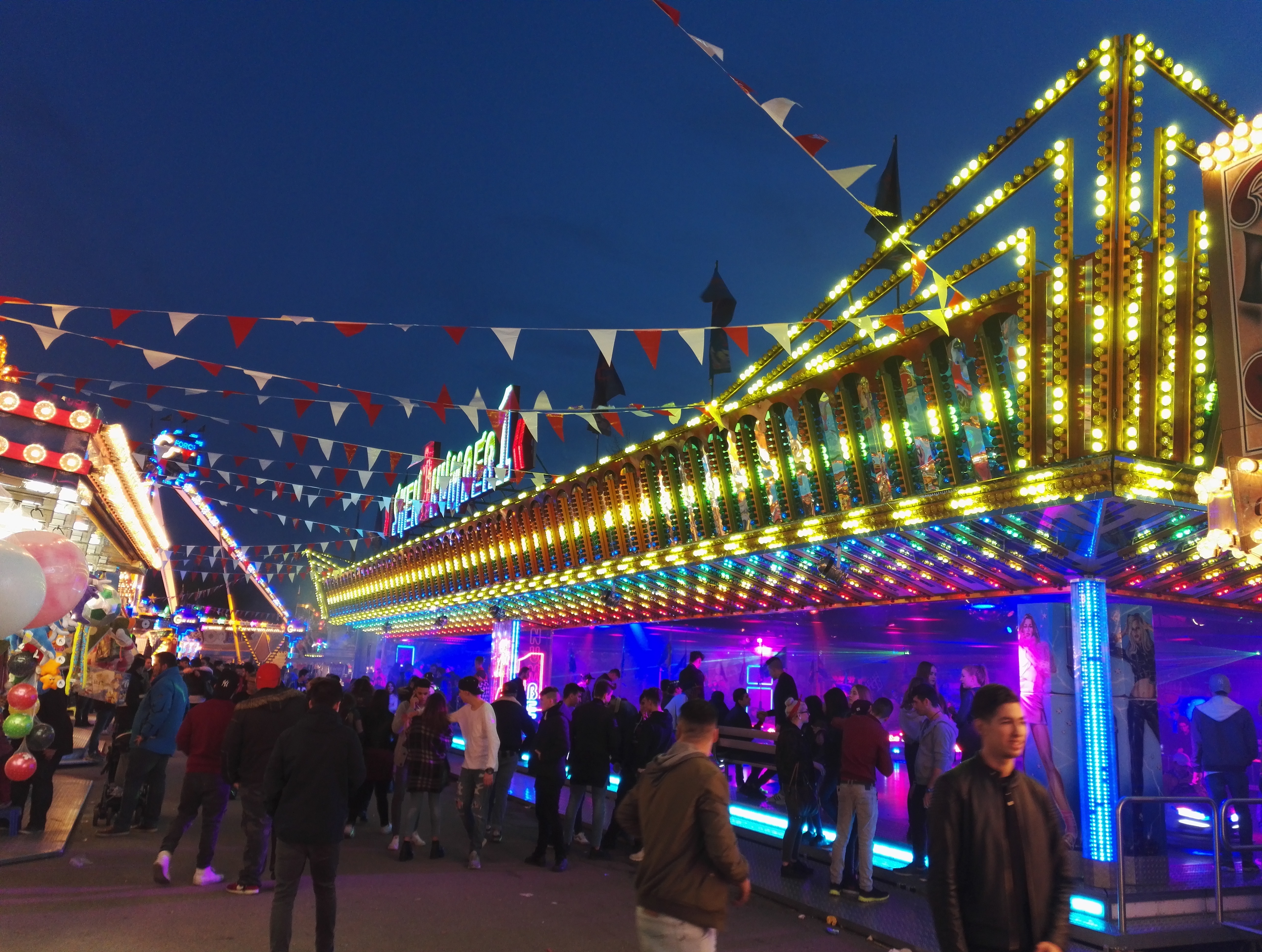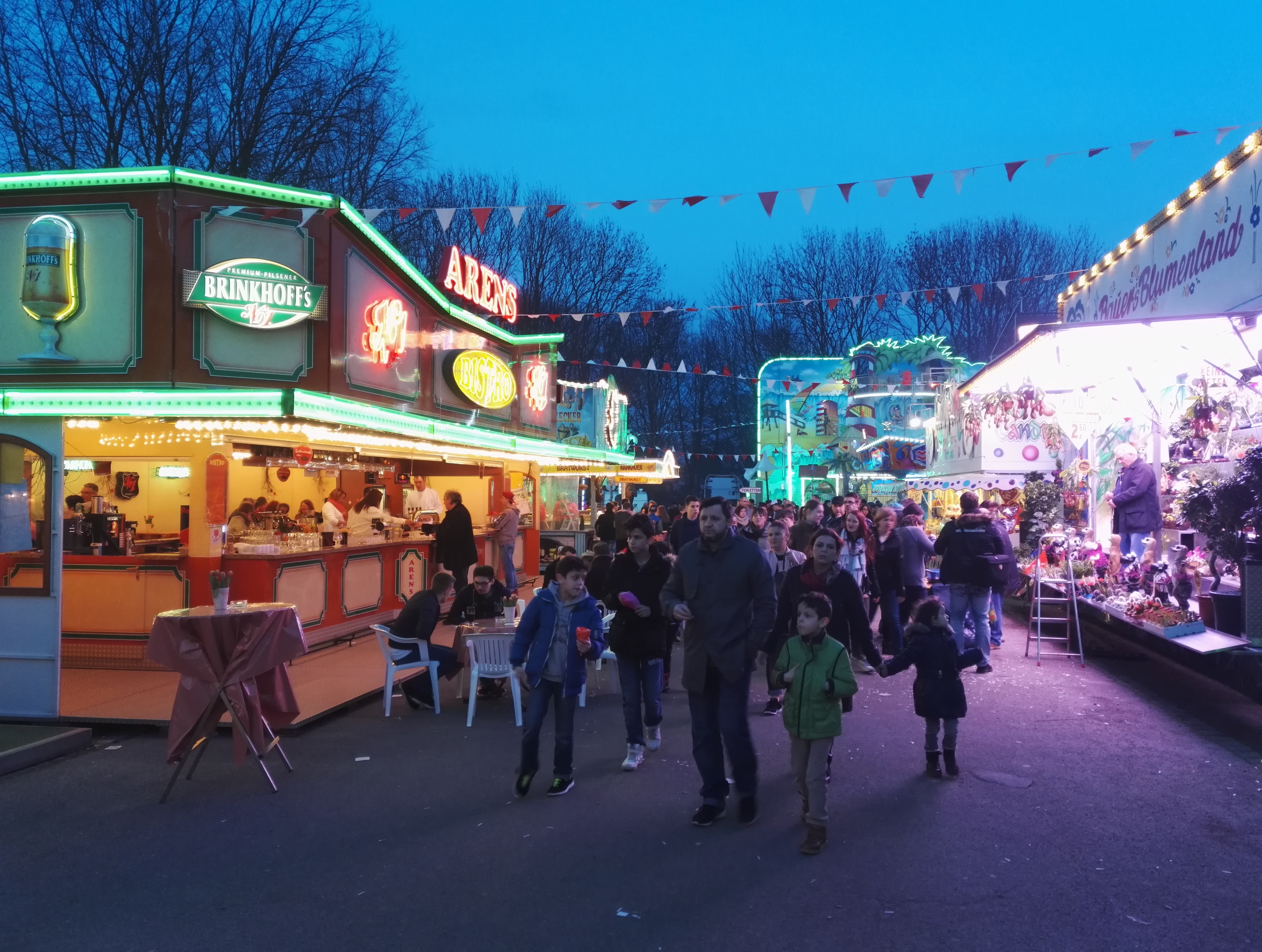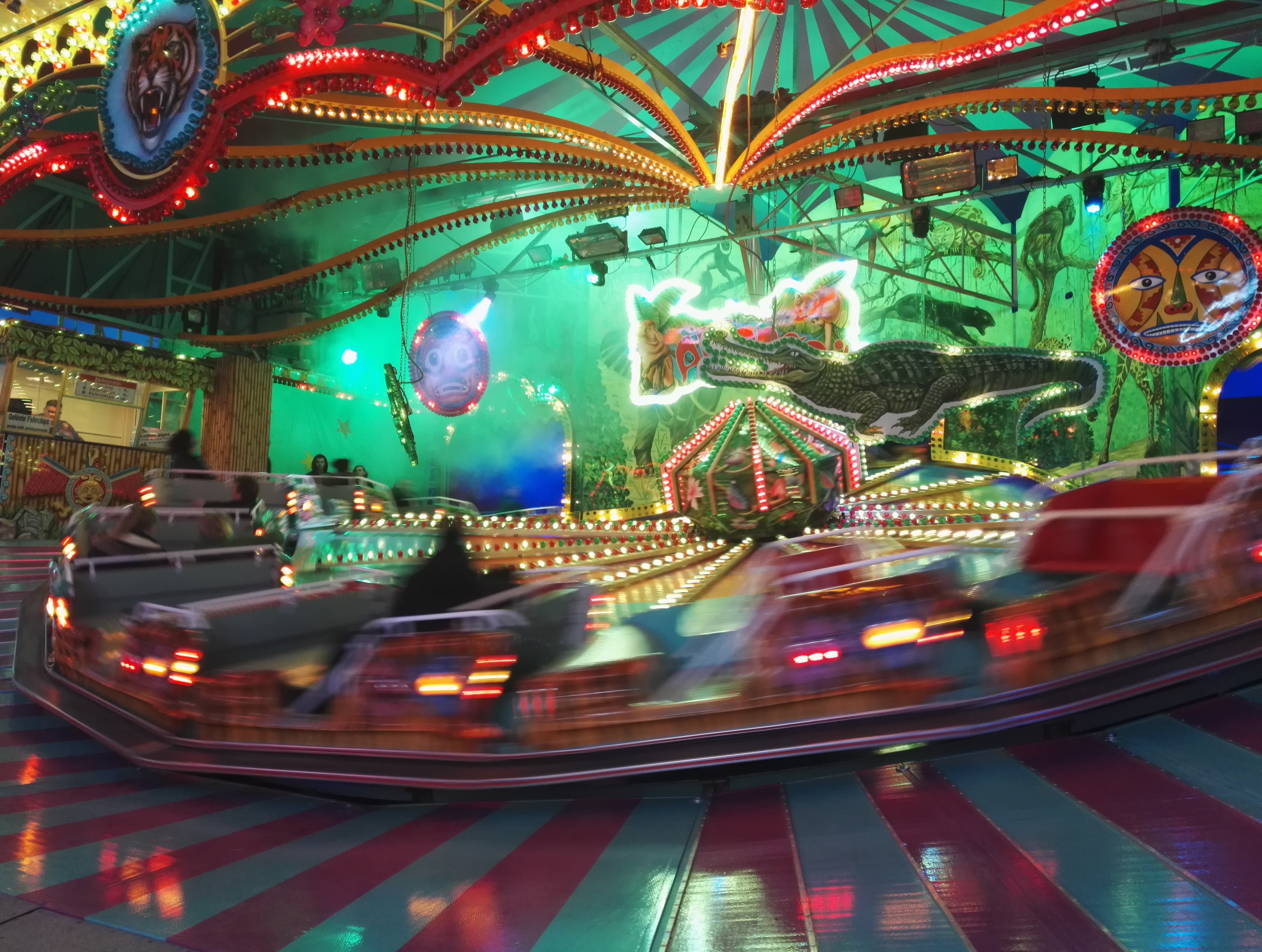 Die drei Autoscooter sollen verschiedene Geschmäcker ansprechen und zur Entzerrung auf dem Festplatz beitragen. So verkündet zumindest der gastgebende Schaustellerverein Rote Erde e.V. auf seiner Facebook-Seite das drei Scooter-Konzept. Bei Isken bildet sich bei meinem Besuch jedoch eine Traube um einen Hahnenkampf. Die übergewichtigen Sicherheitskräfte sind jedoch rasch zur Stelle und versuchen den Konflikt zu schlichten.