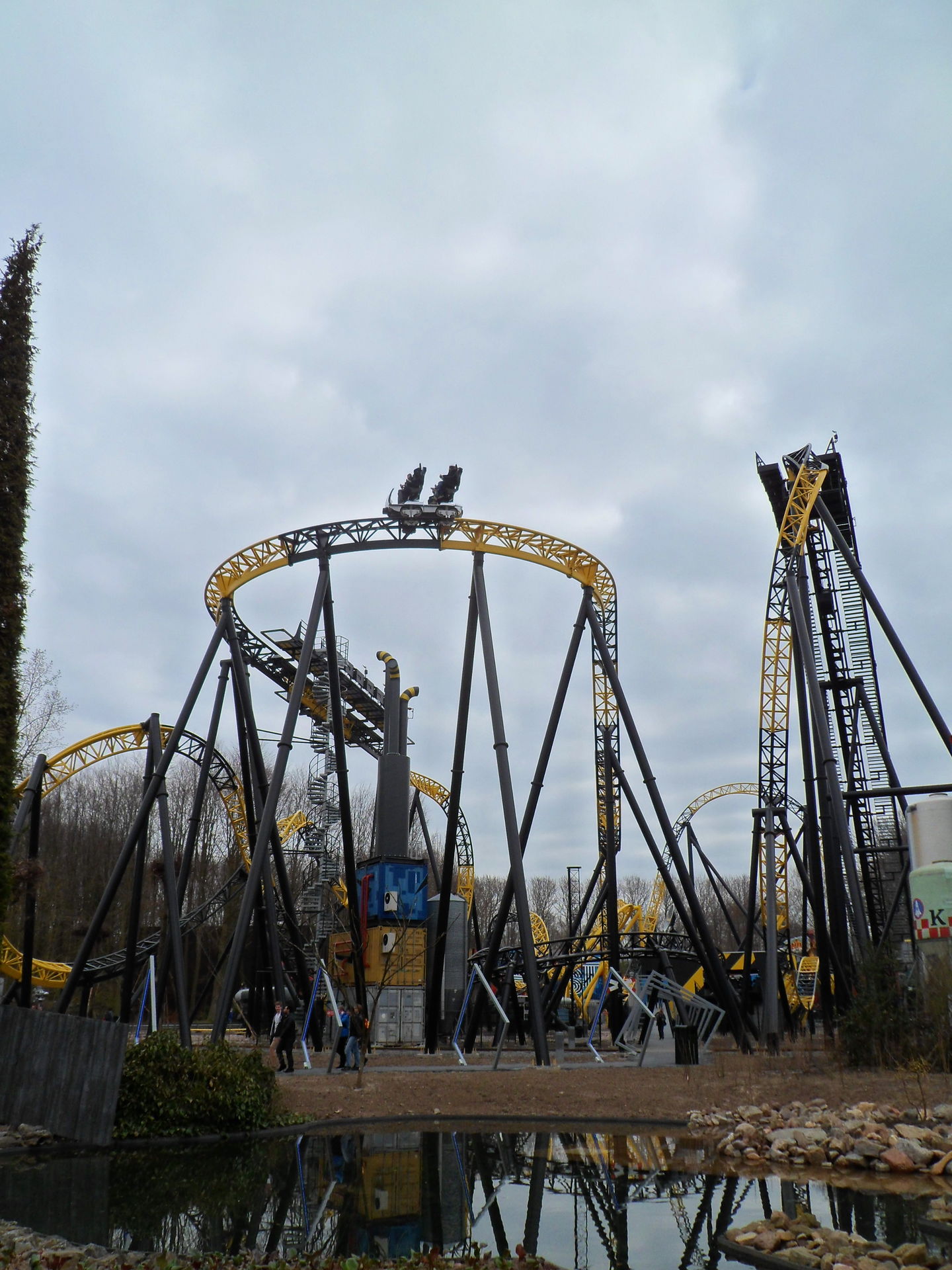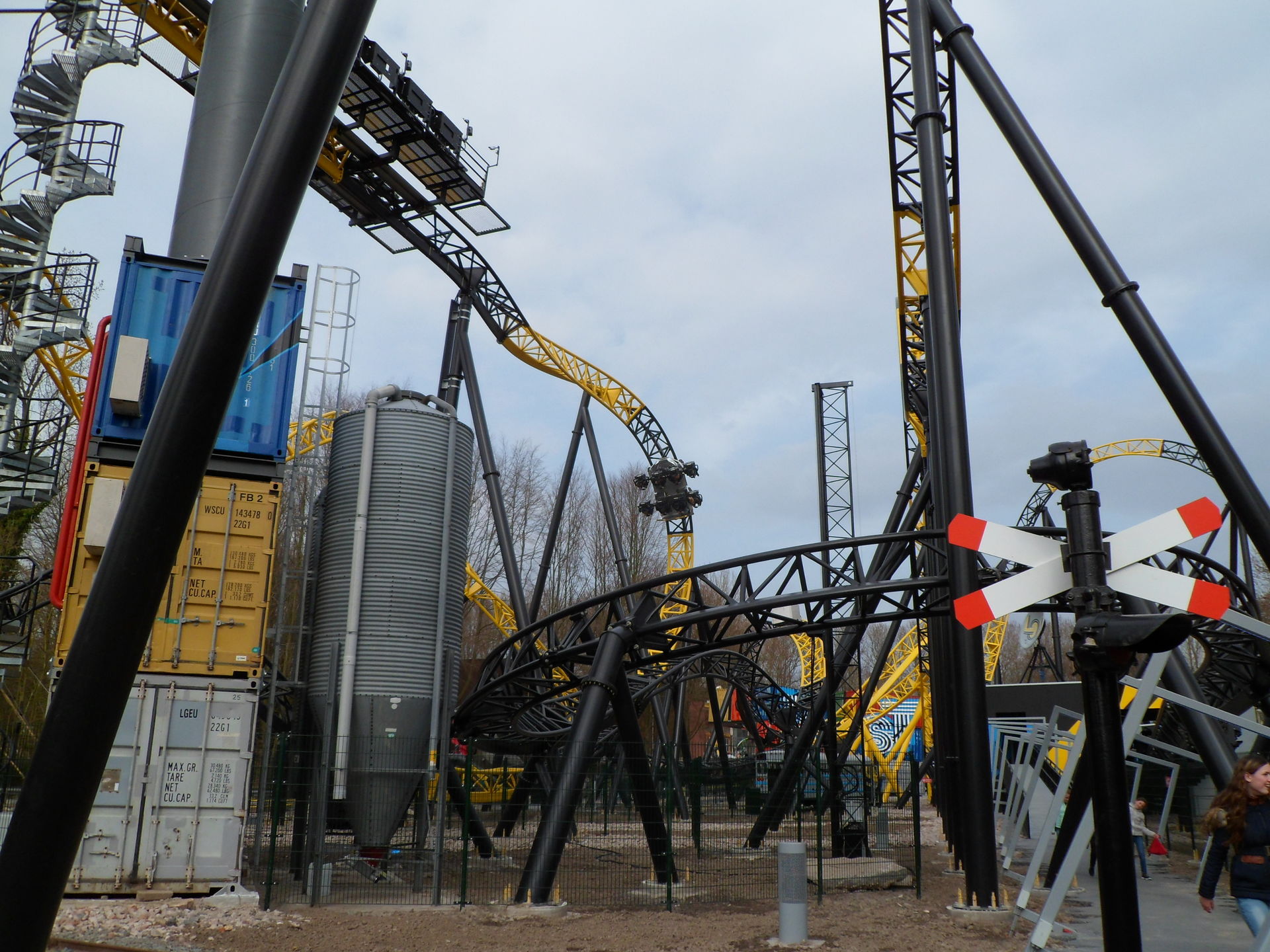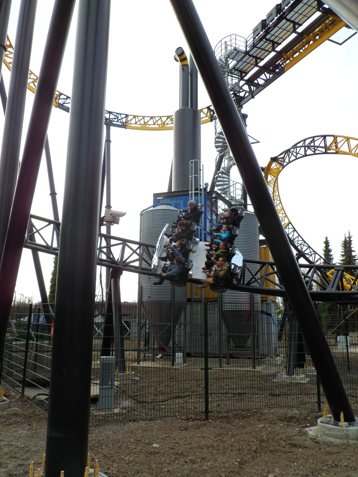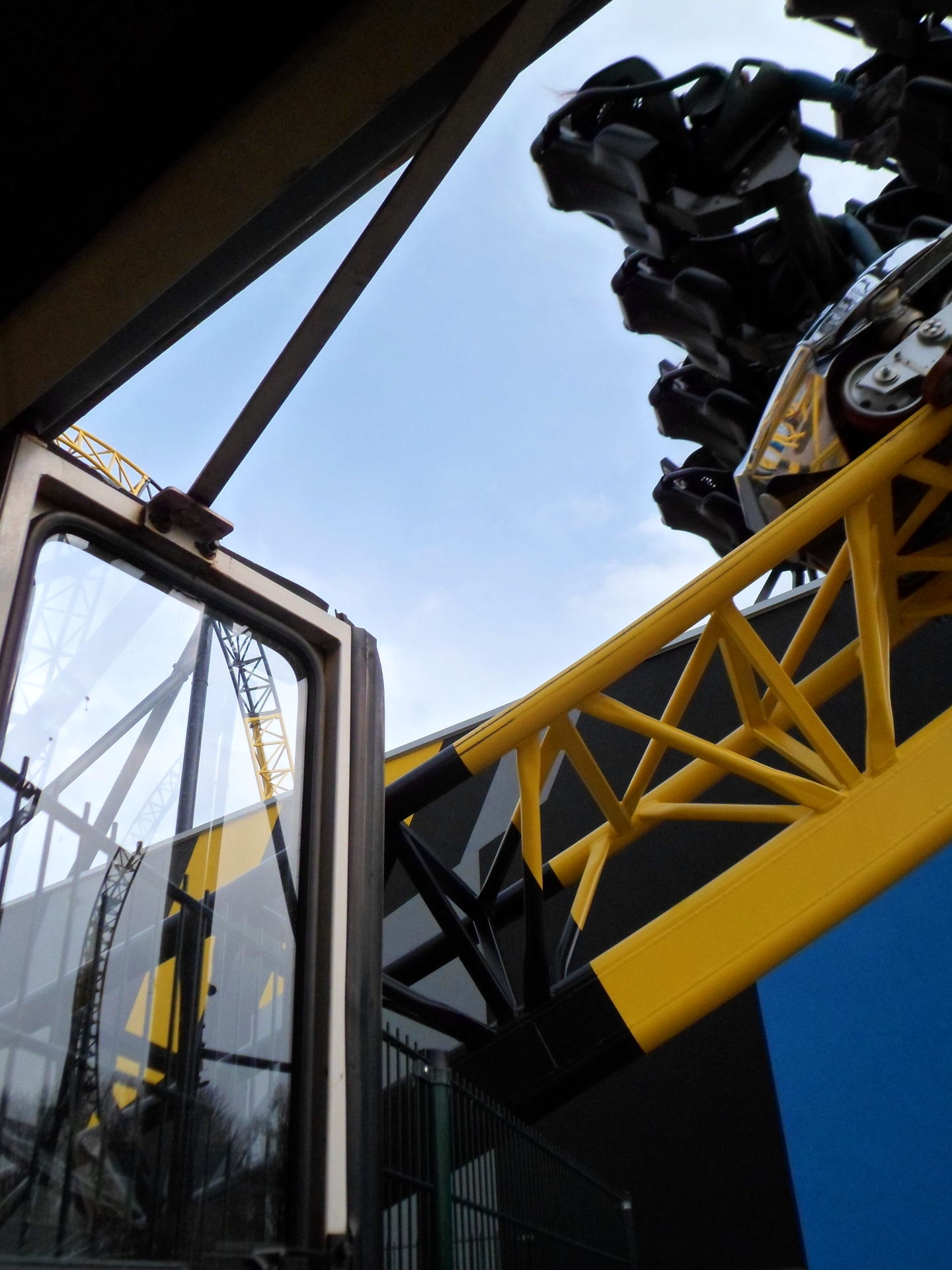 Der Himmel wurde etwas heller und so gingen wir zurück zu Lost Gravity in der Hoffnung das bessere Bilder entstehen, wenn mehr Sonnenlicht durch die Wolkendecke scheint. Meine Sonnenbrille hatte ich jedenfalls völlig umsonst mitgeschleppt. Dort trafen wir wieder bekannte Eventteilnehmer und ich lernte Serge und Danny von themepark.nl kennen, die so reizend waren mich zu einer gemeinsamen Fahrt dazu zu bitten. Da konnte ich nicht nein sagen, vor allem weil sie mir netterweise auch die Wahl meiner Sitzposition überließen. Dafür dass diese dann von einer eventfremden Person einfach beansprucht wurde konnten die beiden nichts. Aber vorne innen war ich bis dahin auch noch nicht gefahren. Nachmittags wurde es nach der ersten