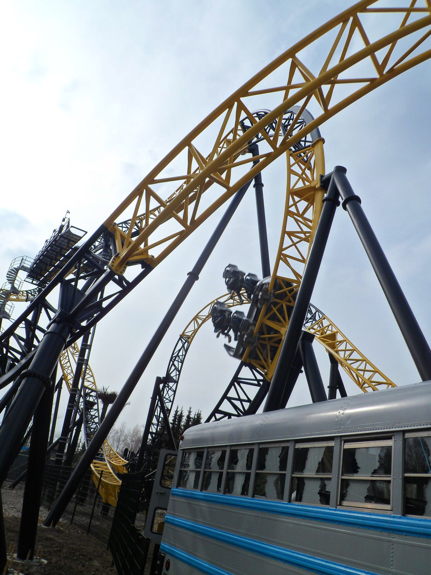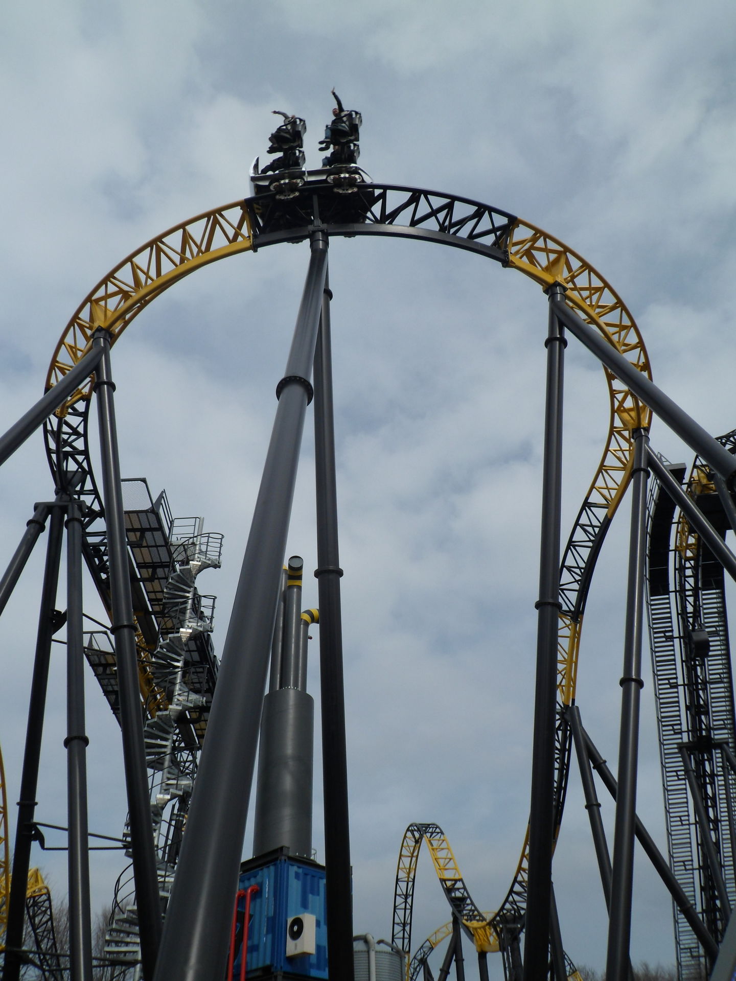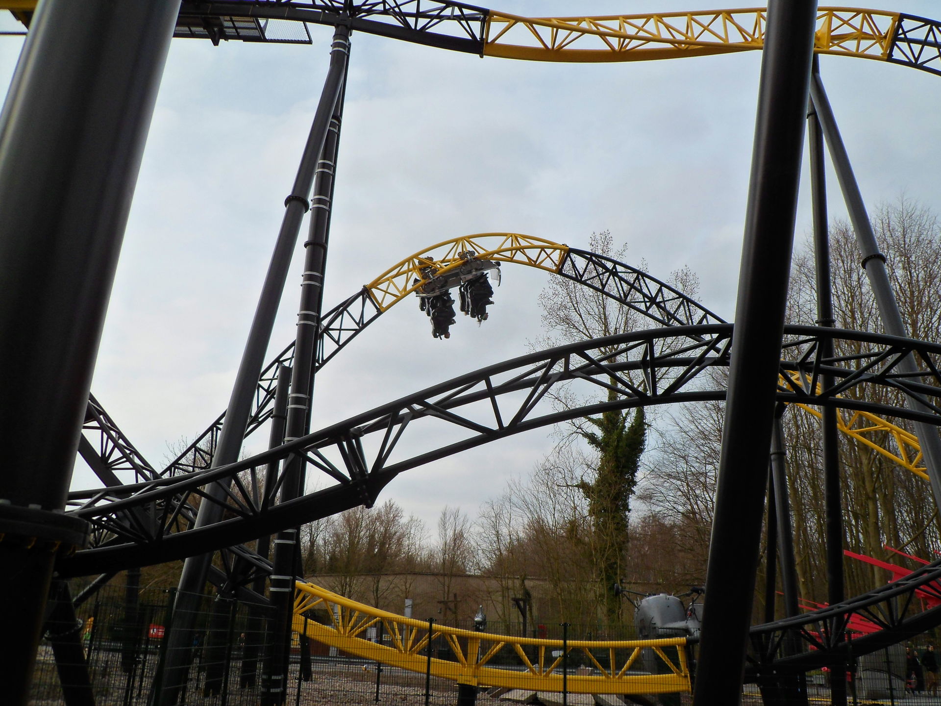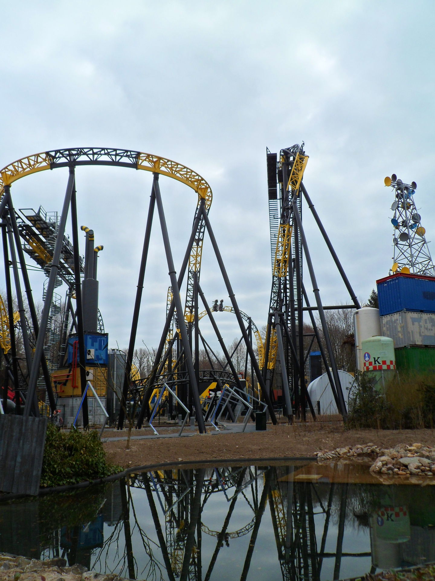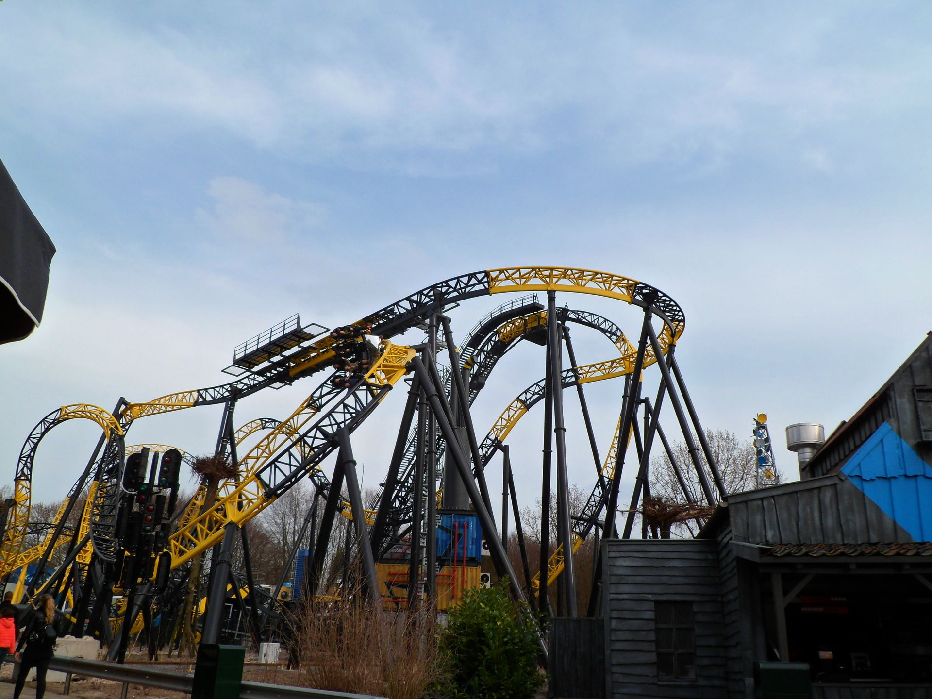 Der Himmel wurde etwas heller und so gingen wir zurück zu Lost Gravity in der Hoffnung das bessere Bilder entstehen, wenn mehr Sonnenlicht durch die Wolkendecke scheint. Meine Sonnenbrille hatte ich jedenfalls völlig umsonst mitgeschleppt. Dort trafen wir wieder bekannte Eventteilnehmer und ich lernte Serge und Danny von themepark.nl kennen, die so reizend waren mich zu einer gemeinsamen Fahrt dazu zu bitten. Da konnte ich nicht nein sagen, vor allem weil sie mir netterweise auch die Wahl meiner Sitzposition überließen. Dafür dass diese dann von einer eventfremden Person einfach beansprucht wurde konnten die beiden nichts. Aber vorne innen war ich bis dahin auch noch nicht gefahren. Nachmittags wurde es nach der ersten