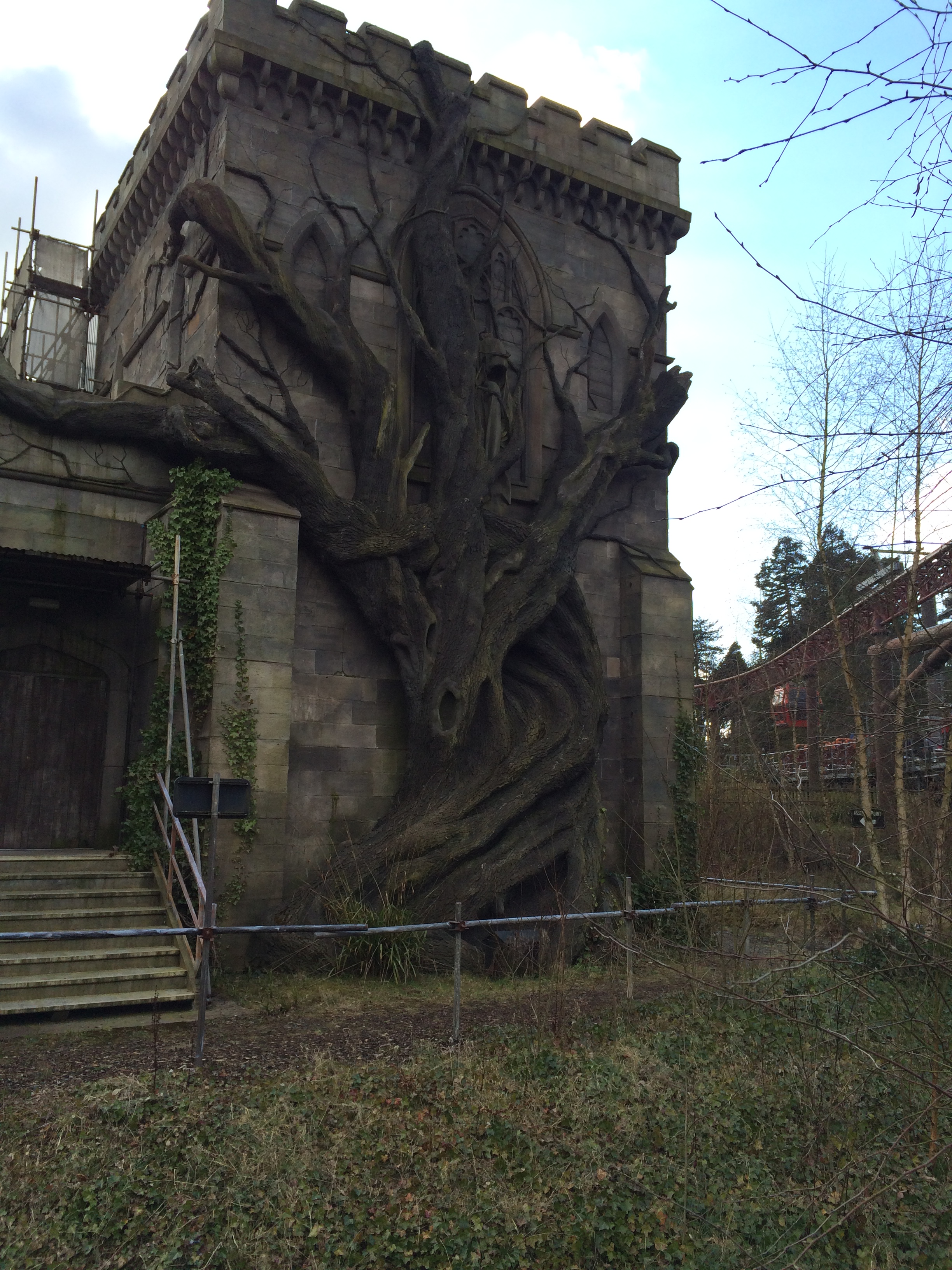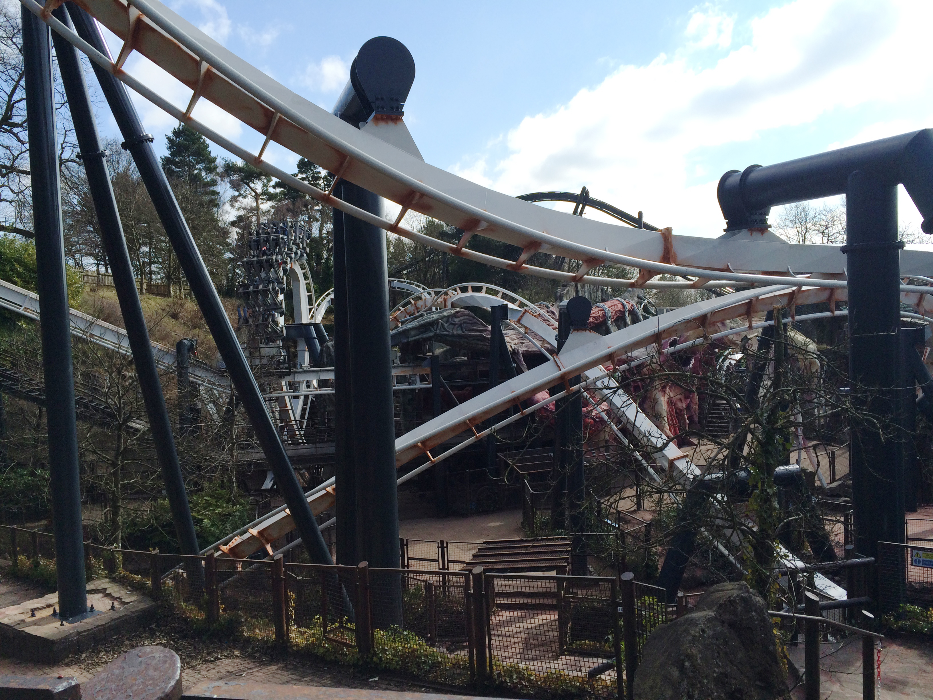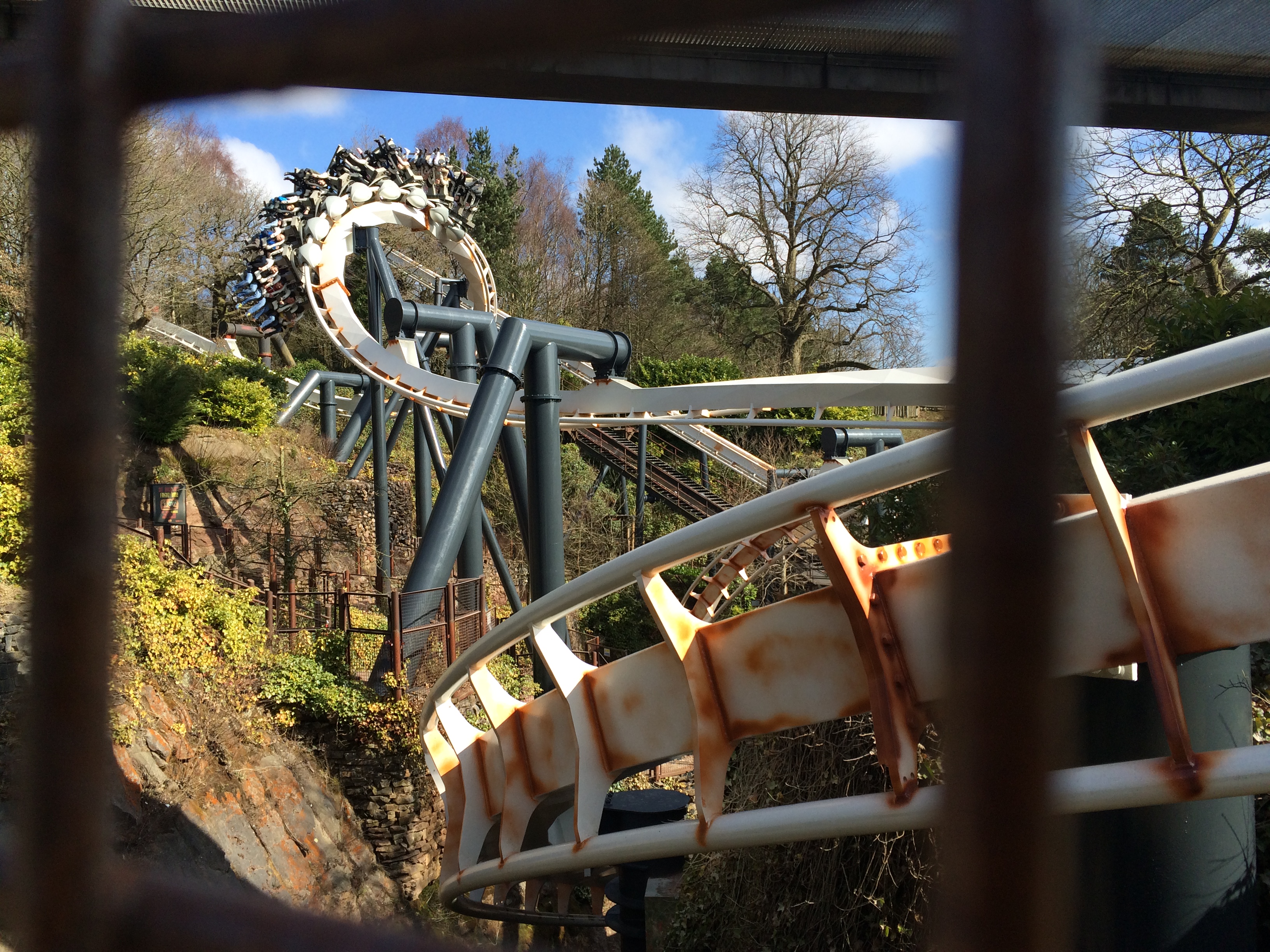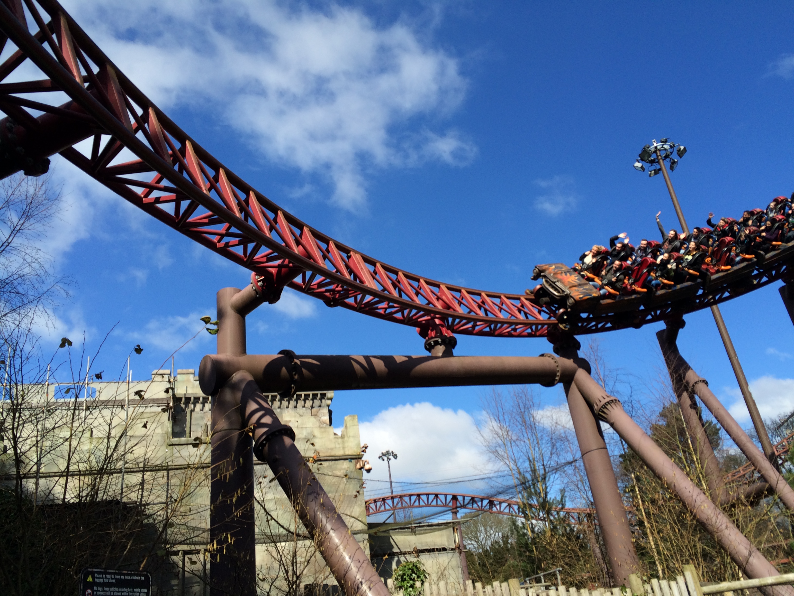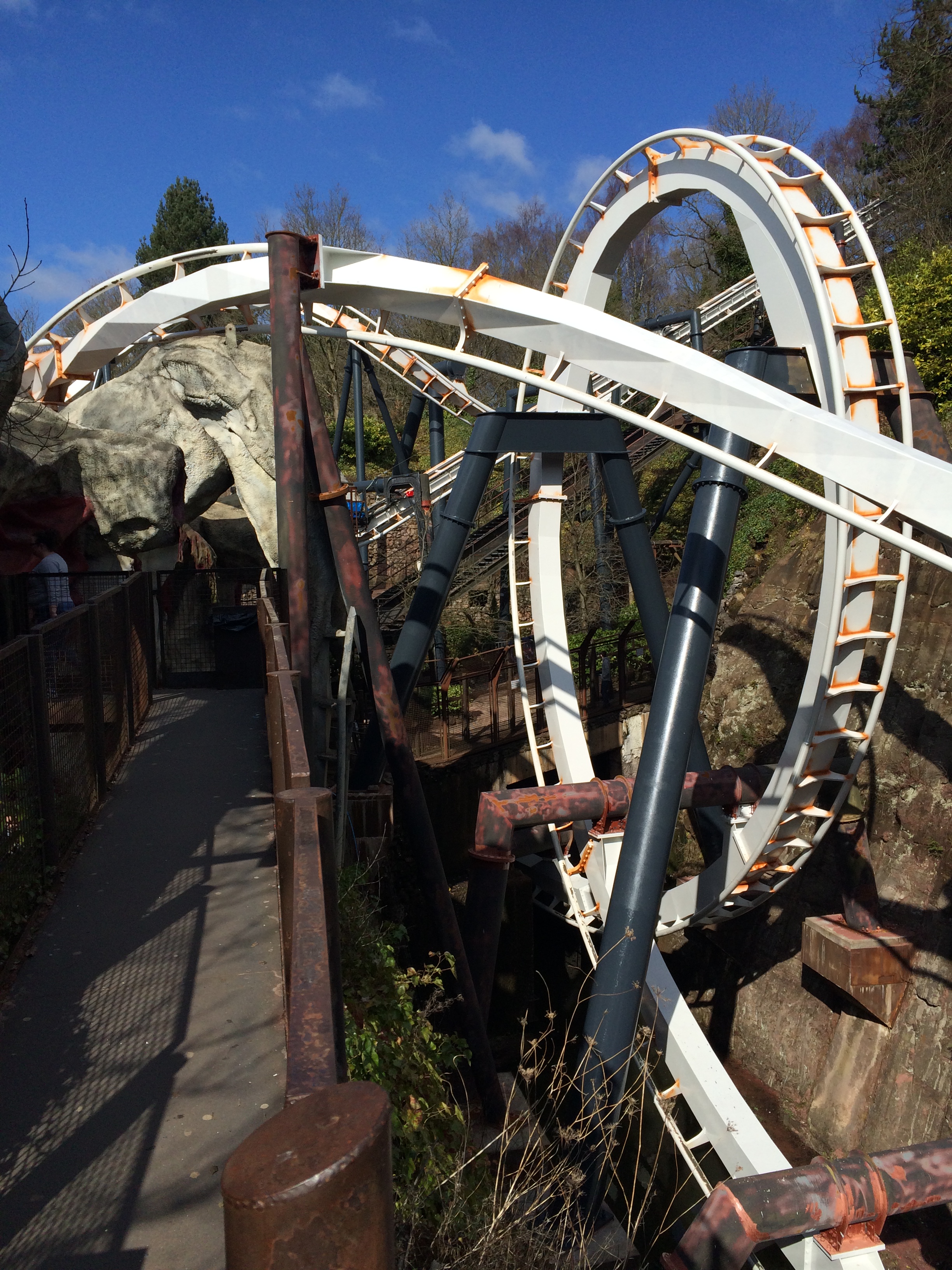 Okay, kurze Erklärung für die etwas weniger mit Alton Towers vertrauten: Man hatte hier bis vor ein paar Jahren mit Corkscrew eine baugleiche Bahn, deren Korkenzieher jetzt den Parkeingang zieren.