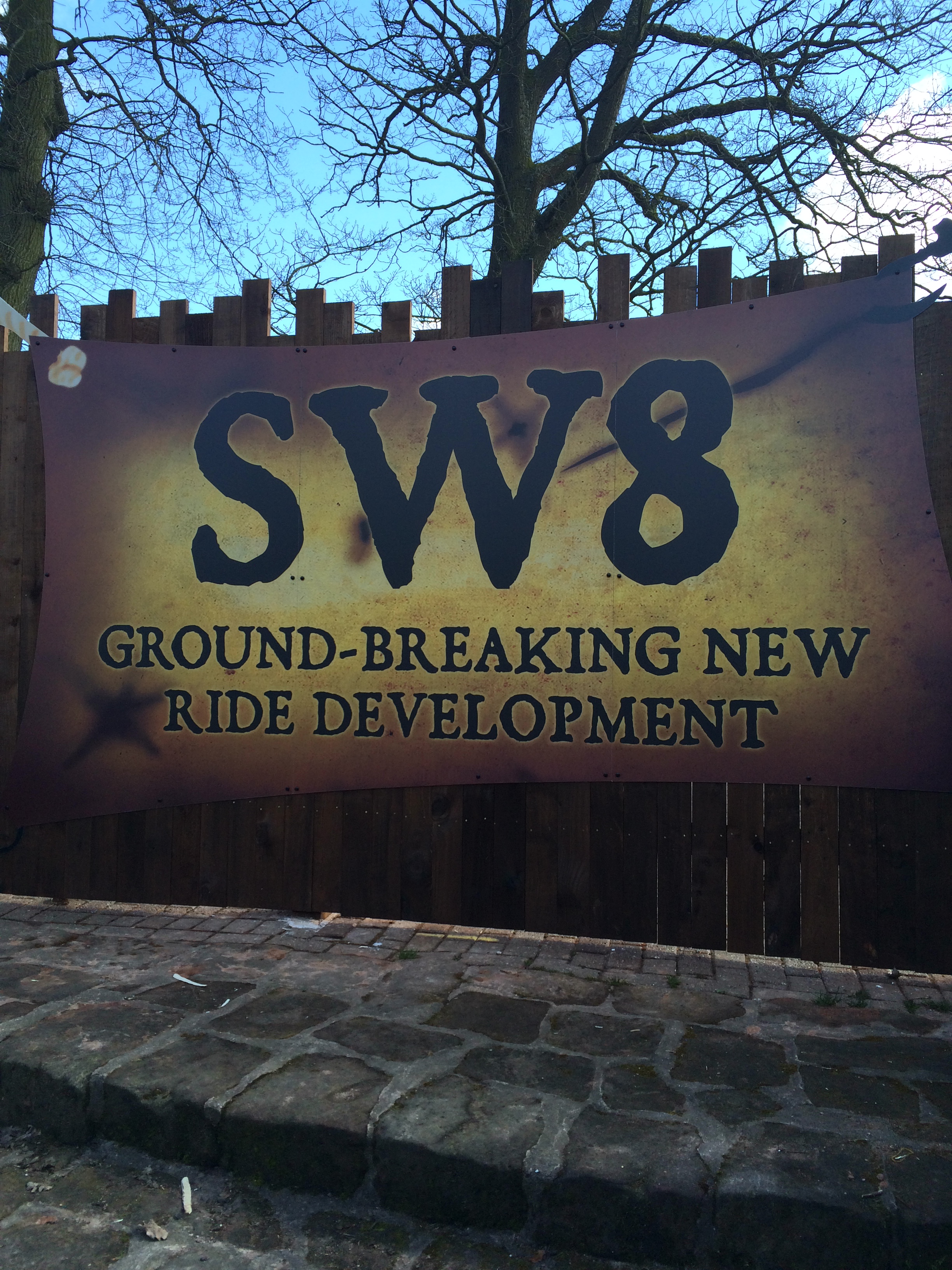 Nur ein paar Meter weiter sehe ich mal wieder Absperrungen, diesmal aber größer und mit der großen Aufschrift "SW8" - Secret Weapon 8. Aha. Also macht die Wildwasserbahn vielleicht nicht wieder auf, sondern Platz für die nächste Achterbahn? Ich bin gespannt, obs vielleicht mal was Hölzernes gibt. Oder gleich was von