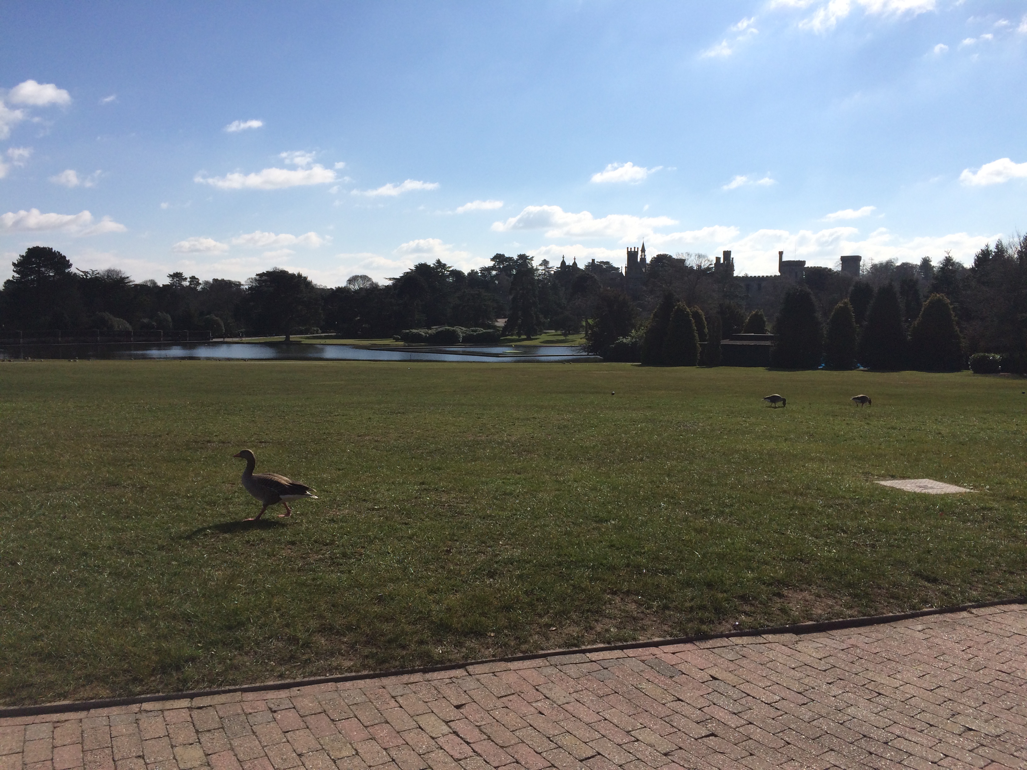 So langsam komme ich wieder im vorderen Parkbereich an, von dem aus man die Towers fast überall ganz gut im Blick hat. Auf der äußerst größen Rasenfläche welche die Sichtachse Eingang - Towers unterfüttert tummeln sich zahlreiche Gänse und Enten.