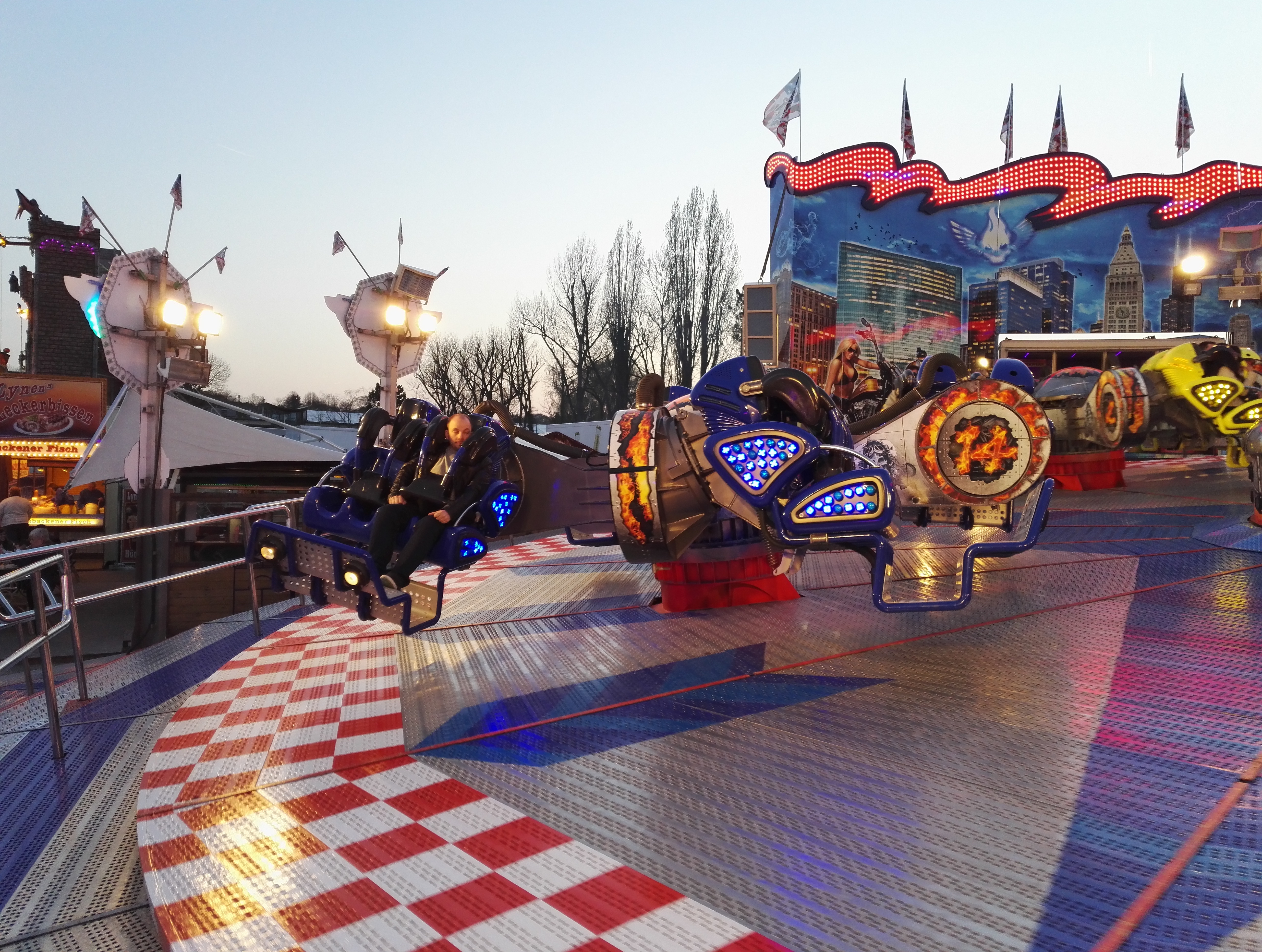 Am 03.04. musste unser altes Auto noch einmal für eine Tour herhalten: Den frisch getankten Sprit verbrauchen - und den gleichen Grund gab es dann eine Woche später - auf der Rückreise vom Bobbejaanland Richtung Brühl kamen wir eh an diesem Kirmesplatz vorbei.