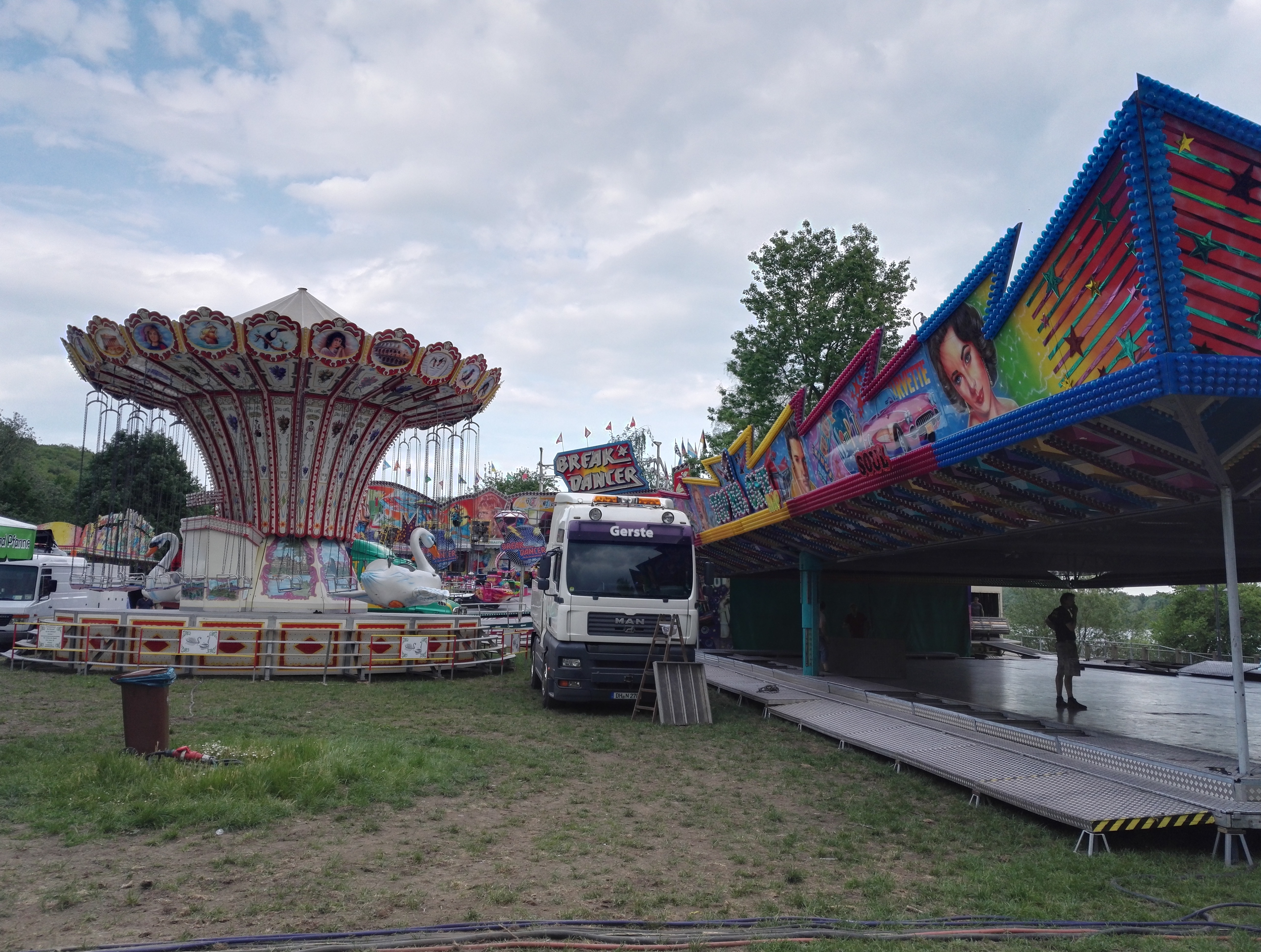 zusätzlich zum Break Dance und dem Rocket noch der Weltenbummler von Hartmann und der Autoskooter Top One von Gerste.