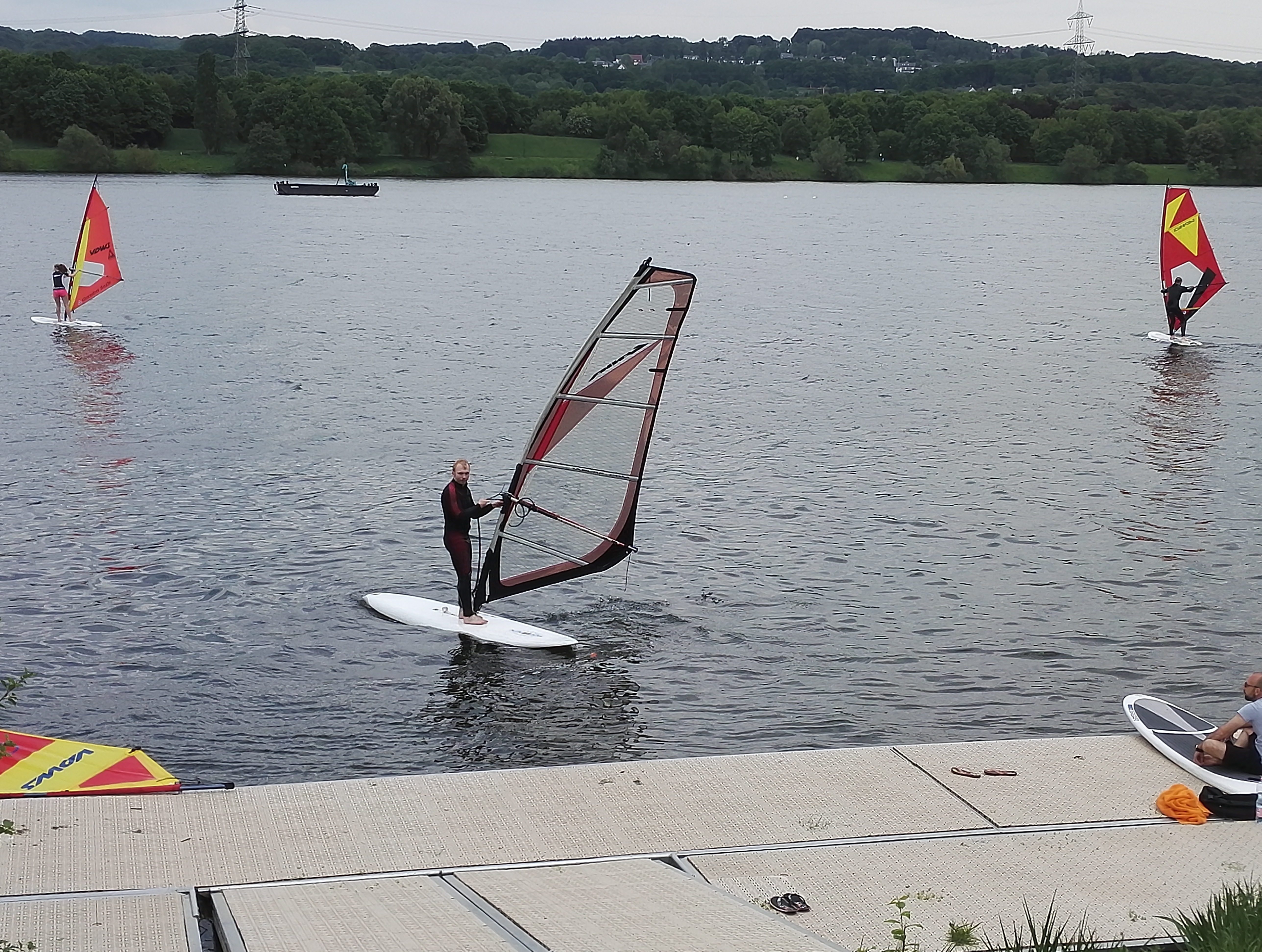 Und direkt am Ufer findet die Surfschule statt.