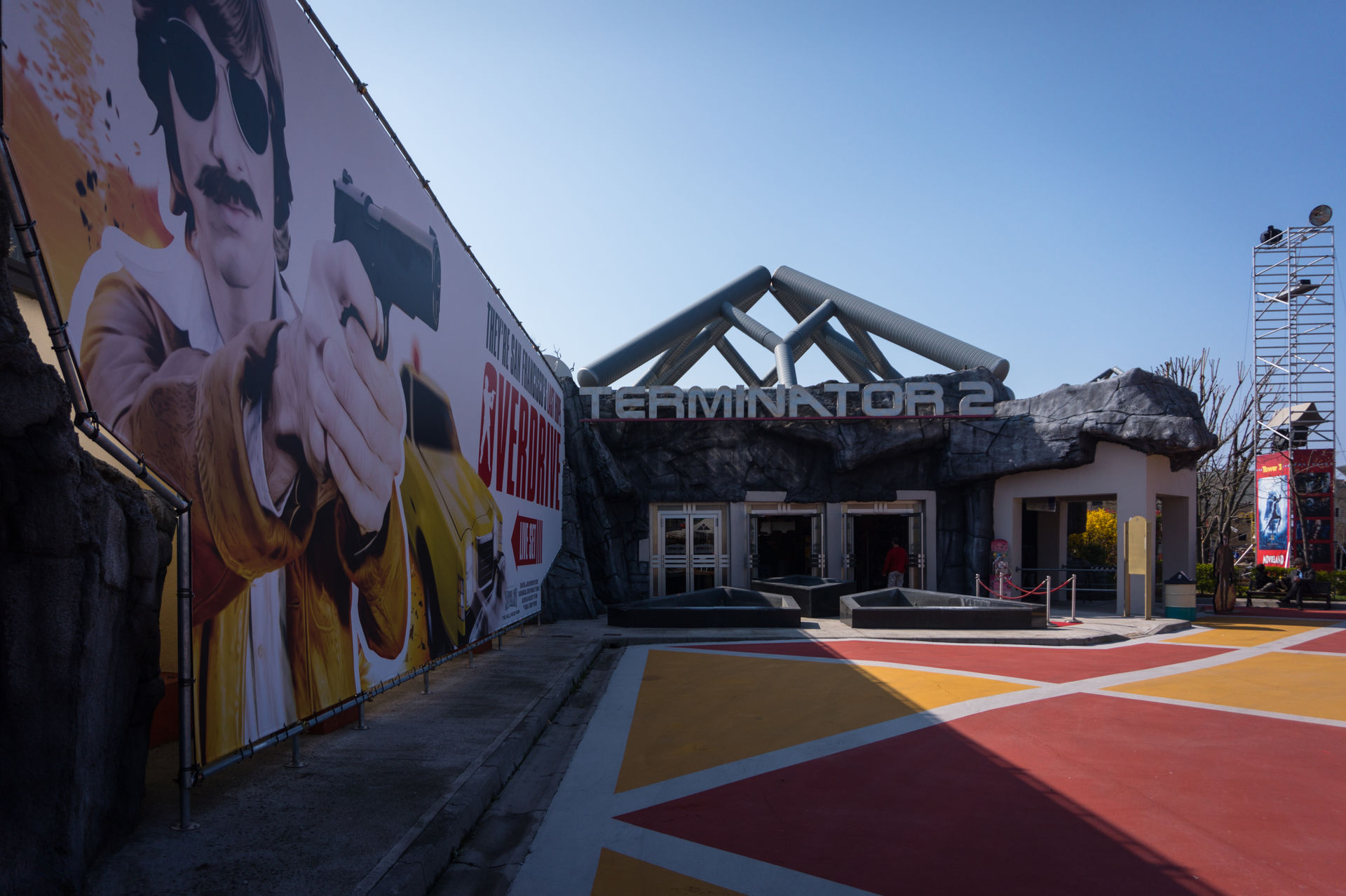 Direkt daneben befindet sich mit Terminator 2 – 5D ein interaktives Theater, in dem man mit Pistolen bewaffnet teilweise auf eine Leinwand, aber auch auf plastische Figuren, schießt. Die Terminatoren-Animatronics sind überzeugend, ebenso die zahlreichen zusätzlichen Effekte, leider aber sieht man von der Seite nicht sehr viel von der Leinwand. Dabei macht das Spiel durchaus Spaß und ist keineswegs zu kurzweilig, obgleich am Ende zwangsläufig Game Over heißt.