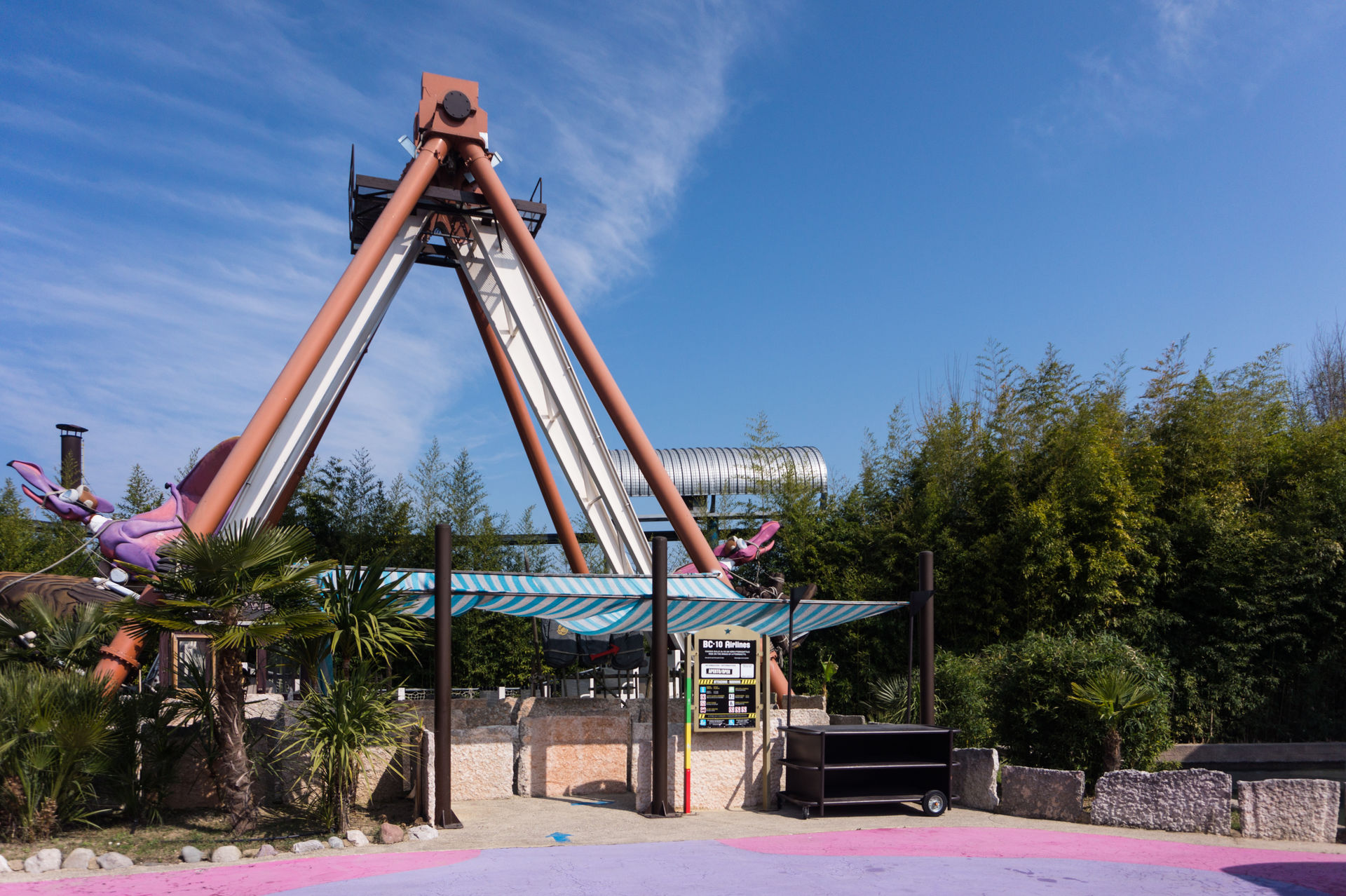 Intamin, wie sie bevorzugt in den 80er Jahren erbaut wurden, ehe man Mitte der 90er Jahre platzsparende Freifalltürme mit magnetischen Bremssystem in den Freizeitparks etablieren konnte. Bevor die Anlage im Jahr 2006 in den Park zog stand sie bis ins Jahr 2001 als Drop of Doom im Galaxyland Amusement Park der kanadischen West Edmonton Mall, ehe sie dort von einem etwa gleich hohen Double Shot der Firma