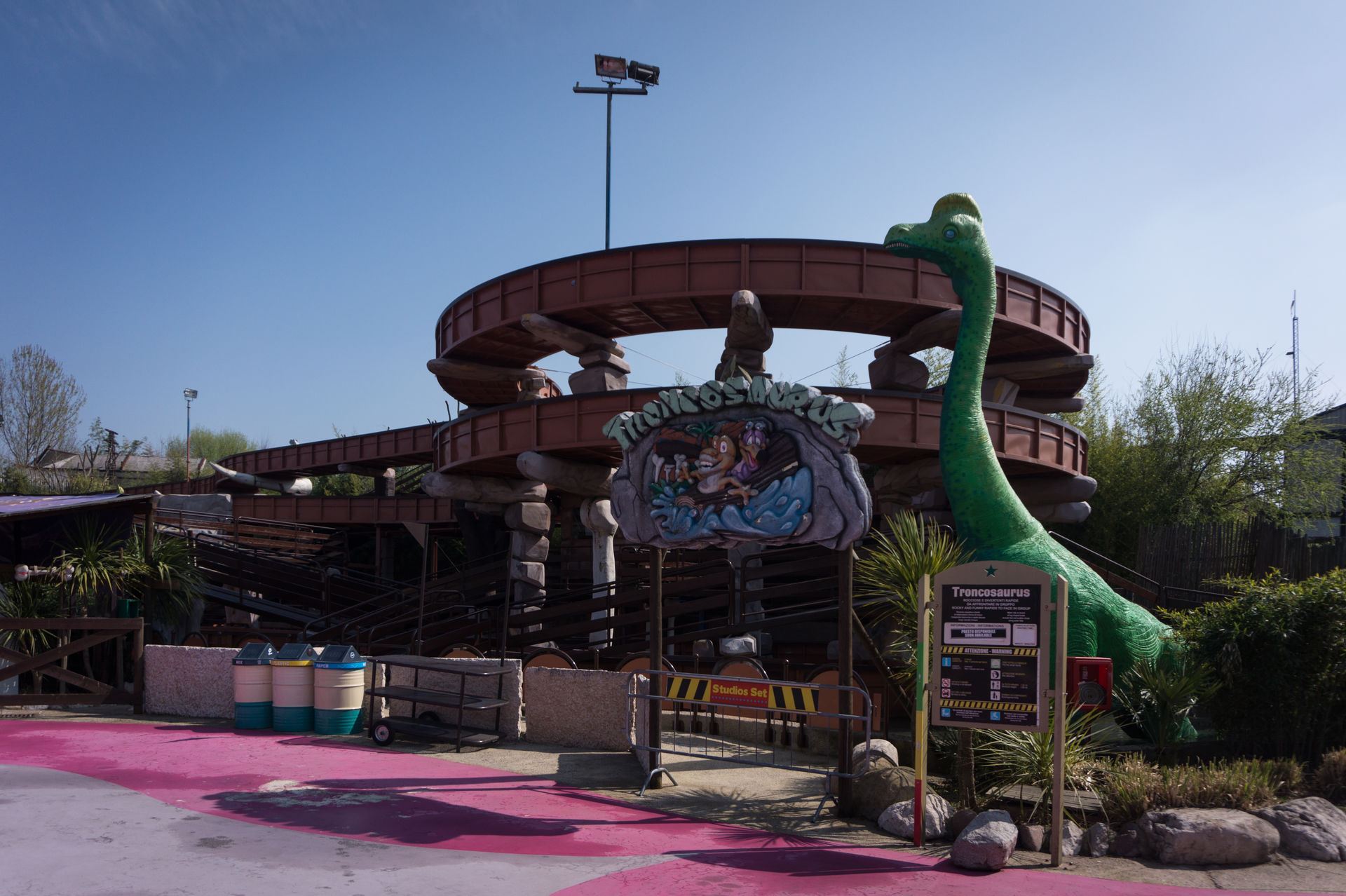 Sollte die Kleidung immer noch trockene Stellen aufweisen, so empfiehlt sich eine Fahrt auf der Wildwasserbahn Troncosaurus, welche vor der Umgestaltung des Dinosaurierbereichs am unteren Ende des Parks eher einem Parkhaus glich als einer spritzigen Baumstammfahrt über zwei Schussfahrten. Mittlerweile macht die Anlage jedoch genauso viel her wie der restliche Bereich, welcher nun ein idealer Kinderbereich mit passender Beschallung ist.