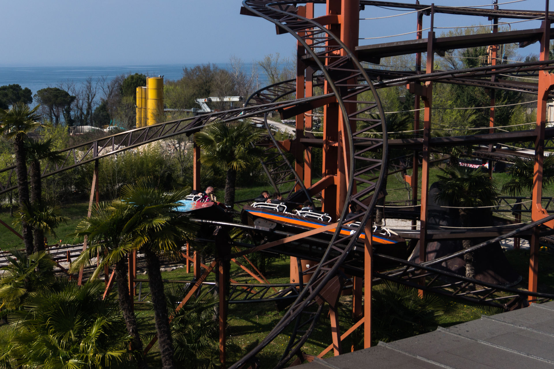 Nachdem man in dem bequemen Wagenverbund platzgenommen hat geht es nach einem kurzen Streckenabschnitt geradewegs in den Spirallift der Anlage, welcher durch eine Stromschiene die antreibenden Motoren der beiden Wagen mit Strom versorgt und somit stetig nach oben befördert. Oben angekommen kann man noch kurz den Ausblick auf den Gardasee genießen ehe es mit Karacho dem Erdboden entgegengeht. Mit voller Wucht durchquert man nun das erste Tal, woraufhin man gleich wieder emporschnellt. Kurz unterhalb der ersten Abfahrt umfährt man nun in einer gemächlichen Linkskurve den Spirallift, just bevor man sich erneut in eine Steilkurve gen Boden wirft. Nach einem bodennahen Umschwung geht es wieder einige Meter hinauf und schleunigst in einer ovalen Abwärtshelix, ausgeführt in feinster Bayernkurvenmanier, hinab. Nach einem sehr abrupten, und sicherlich nicht nach der Herzlinie ausgelegten, Übergang der geneigten Kurve in eine Gerade endet man sogleich in der starkgreifenden Bremse der Anlage.