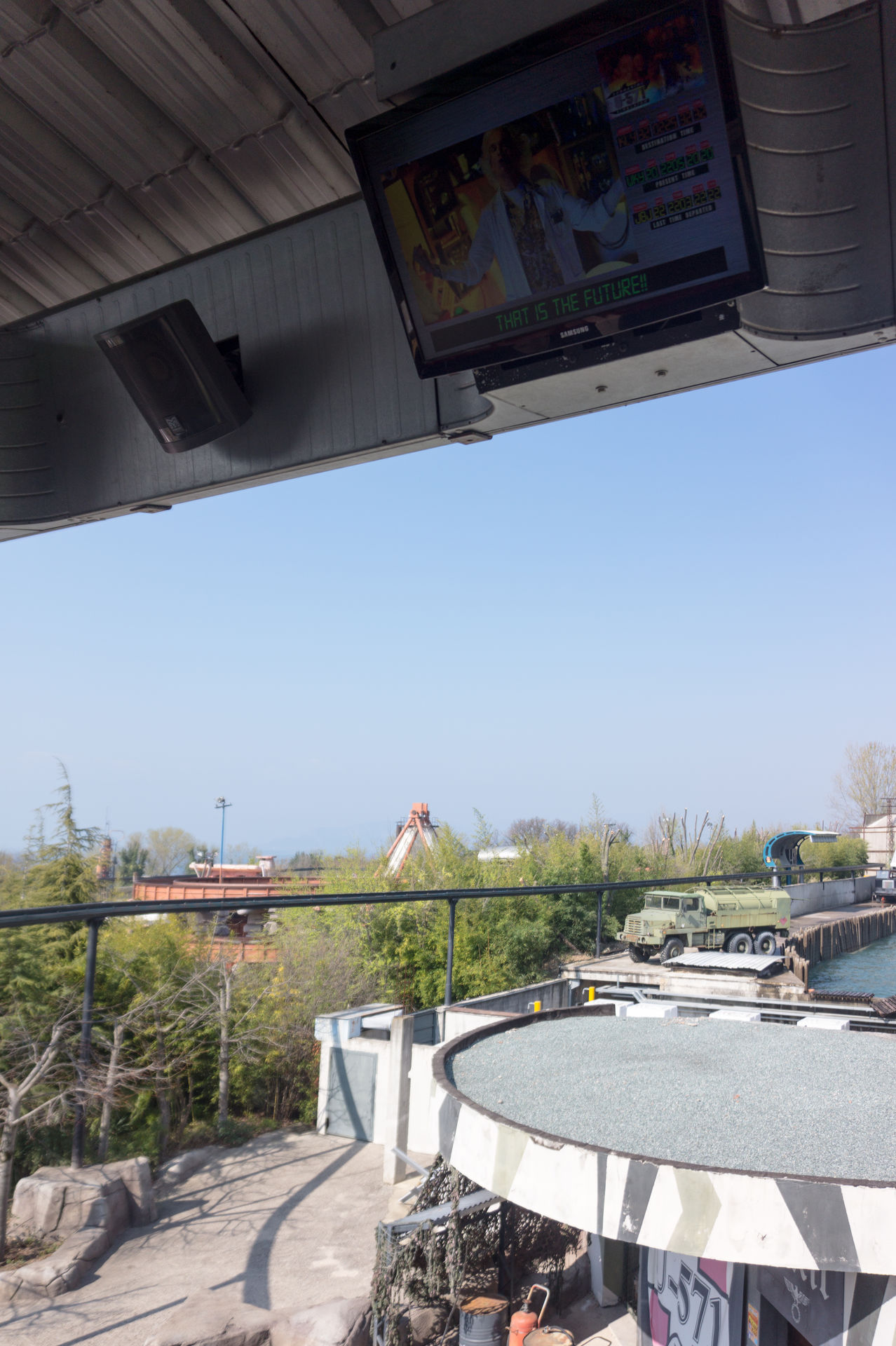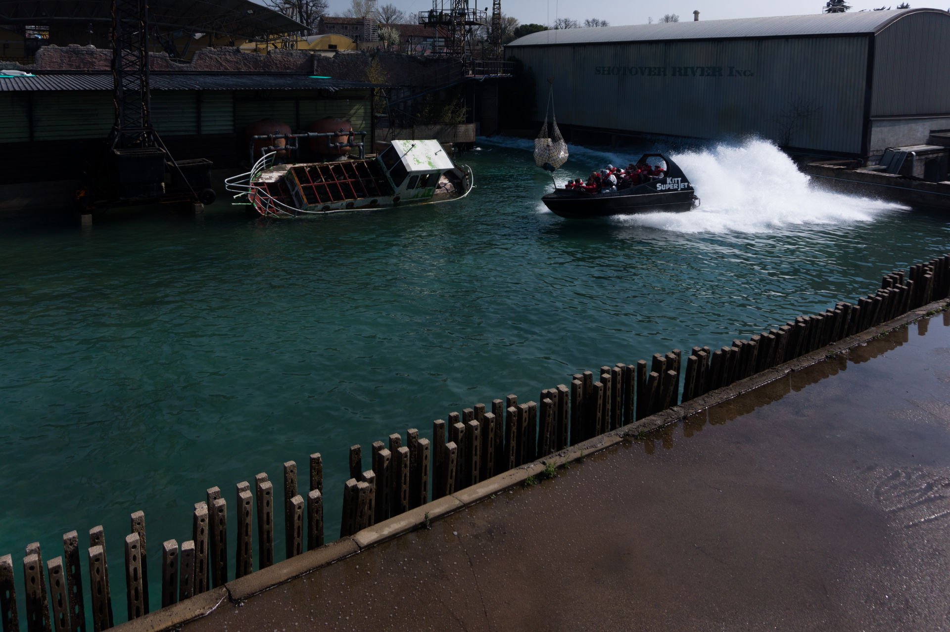 Von der Monorail aus bekommt man einen guten Einblick auf das wilde Treiben der Jetbootfahrer des Kitt Super Jets. Inspiriert durch die, nach wie vor beliebte, Serie Knight Rider bzw. Supercar auf Italienisch geht es im Auftrag der Foundation für Recht und Verfassung auf Verbrecherjagd. Aber nicht in Kitt, denn das wäre bereits von der Kapazität her eine Katastrophe, sondern im Super Jet, dem Pendant auf dem Wasser.