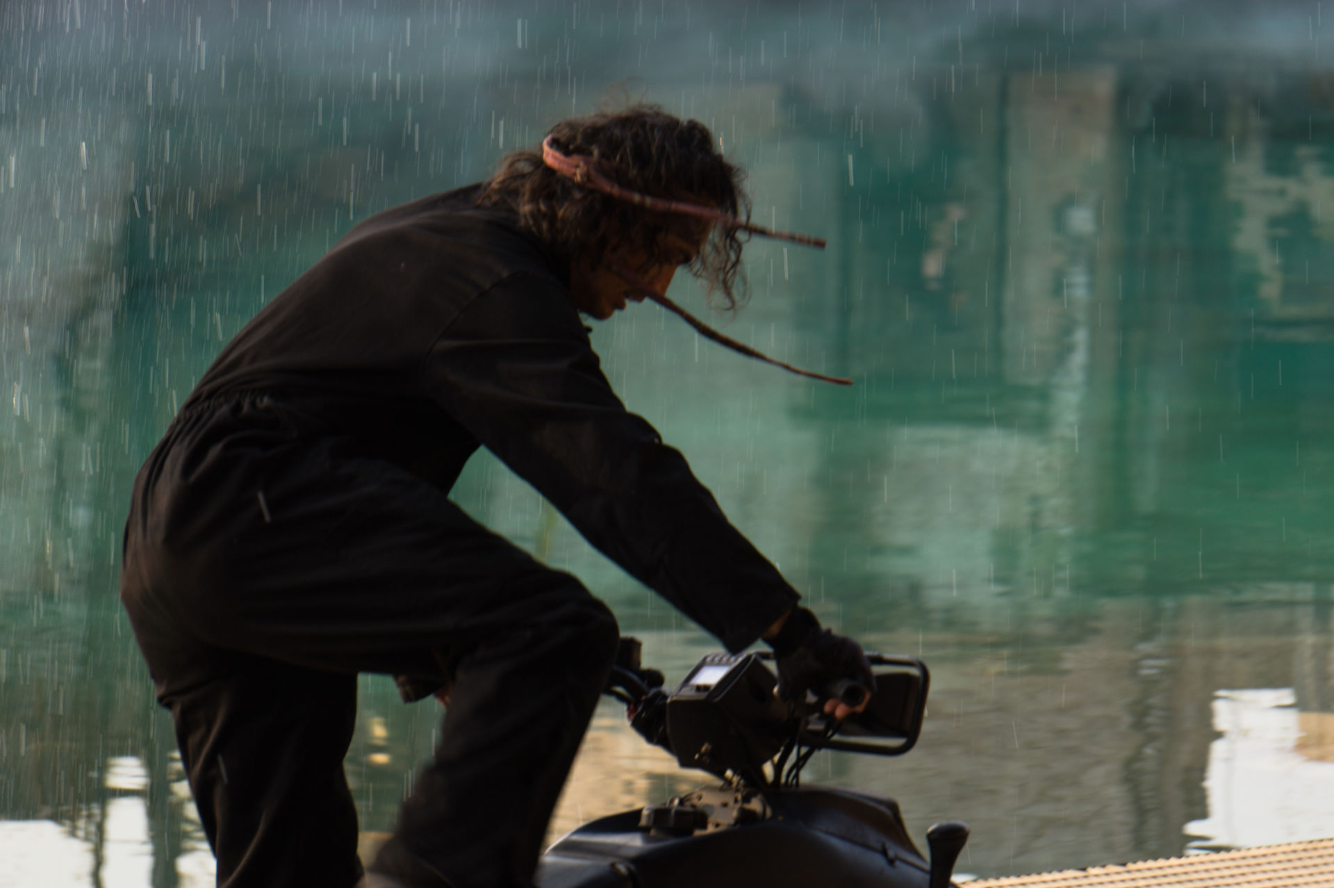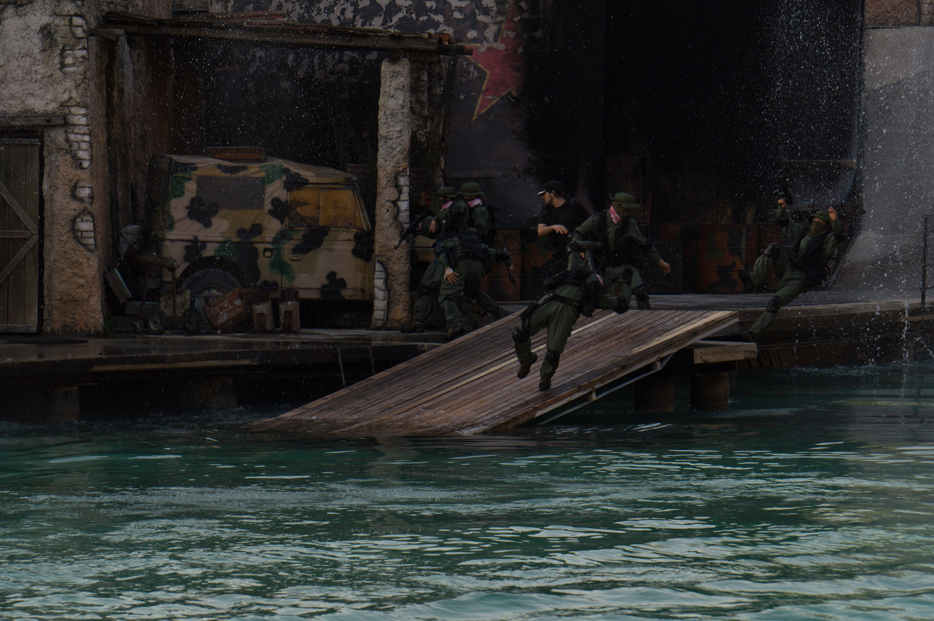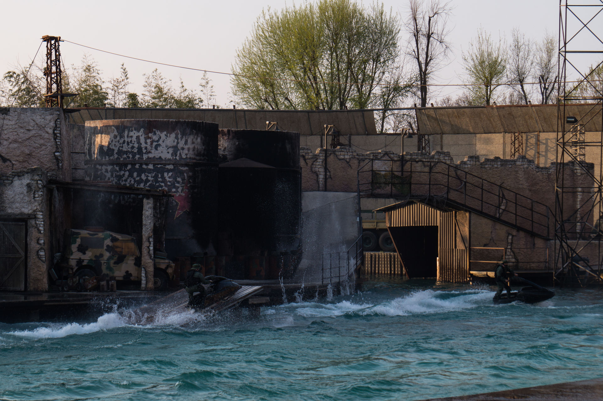 Kurz nach 17 Uhr öffneten sich die Pforten zur John Rambo Stunt Show und die verbliebenden Gäste konnten in etwa die Hälfte der riesigen Showarena füllen. Kurz darauf werden auch schon ein alter Kamerad John Rambos und einige Besucher von Terroristen gefangen genommen. John Rambo eilt herbei um seinen Kollegen zu befreien, wird dabei aber recht schnell entdeckt. Es beginnt eine Action Sequenz mit Motorrädern und Quads, an deren Ende Rambo ordentlich Prügel einstecken muss. Während dessen hat sich sein Kamerad befreit und gemeinsam schaffen sie ein wenig Ordnung. Eine verdeckt arbeitende Soldatin schließt sich an, nur um kurz darauf in einem Hinterhalt gefangen genommen zu werden. Währenddessen werden die Geiseln (die gefangen genommenen Besucher) auf die Hauptbühne gebracht und dürfen das Spektakel nun hautnah erleben. Als einzige nicht gefangen genommene Person versucht Rambo in einer One-Man-Army Sequenz jeden zu befreien. Dabei befreit er erst seinen Kollegen und öffnet die Fluchtwege, woraufhin eine actionbelandene Schau auf dem Wasser stattfindet, in der auch die restlichen Besucher mal wieder ein wenig Wasser abbekommen. Nachdem die feindlichen Streitkräfte zu einem Großteil besiegt sind und die Geiseln via Motorboot auf die vordere Bühne gebracht wurden gibt es noch eine kleine Liebesgeschichte zwischen Rambo und der Soldatin, die jedoch kurz darauf von dem einzigen übrig gebliebenen Widersacher tödlich verletzt wird. Daraufhin zückt Rambo seinen Bogen, feuert einen Pfeil auf die Ölfässer auf der gegenüber liegenden Seite und löst somit eine Explosion aus, die den Feind in Brand steckt.