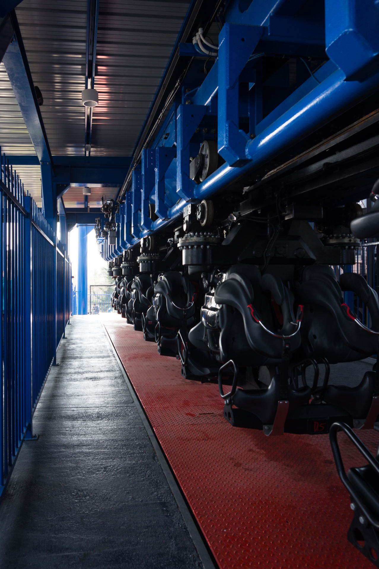 Boomerang, z.B. befindet sich der Zug unterhalb der Schiene und weißt eine vollkommen andere Sitzordnung auf, bei der man sich sogar gegenübersetzen kann, und auch die Technik ist hier ein wenig anders gelöst.
