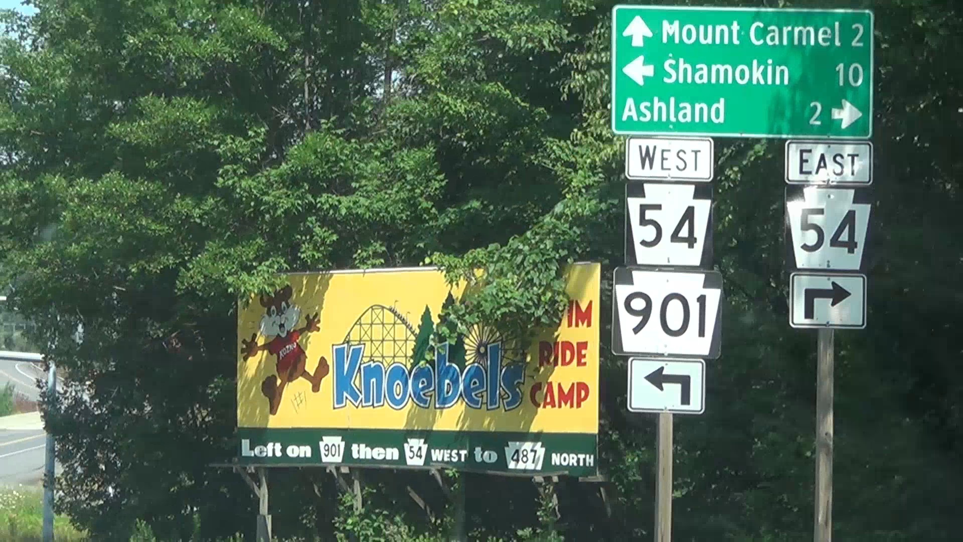 Knoebels, ein Name wie ein Stück Holz in der amerikanischen Kehle ("Cnowbells" nach meinem Ohr oder auch kuh-NO-bels in englischer Lautschrift) liegt bequeme 100 Kilometer von unserem Nachtlager in Hershey North entfernt und ist somit recht zügig erreicht. Da man dort erst um 11 Uhr in den Tag startet, sind wir heute auch mal ziemlich ausgeschlafen. Auch wenn der Park mit bis dato zweieinhalb (heute dreieinhalb) nennenswerten Achterbahnen zunächst nicht als der reizvollste Zuwachs für eine Achterbahntour erscheint, haben wir uns vielen Berichten, Meinungen und Empfehlungen gebeugt und einen Schlenker eingeplant.