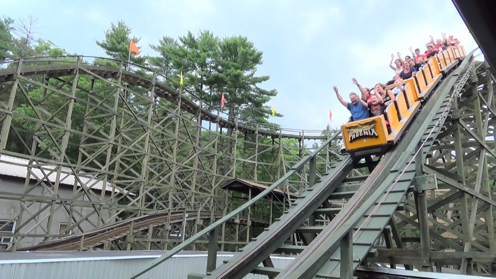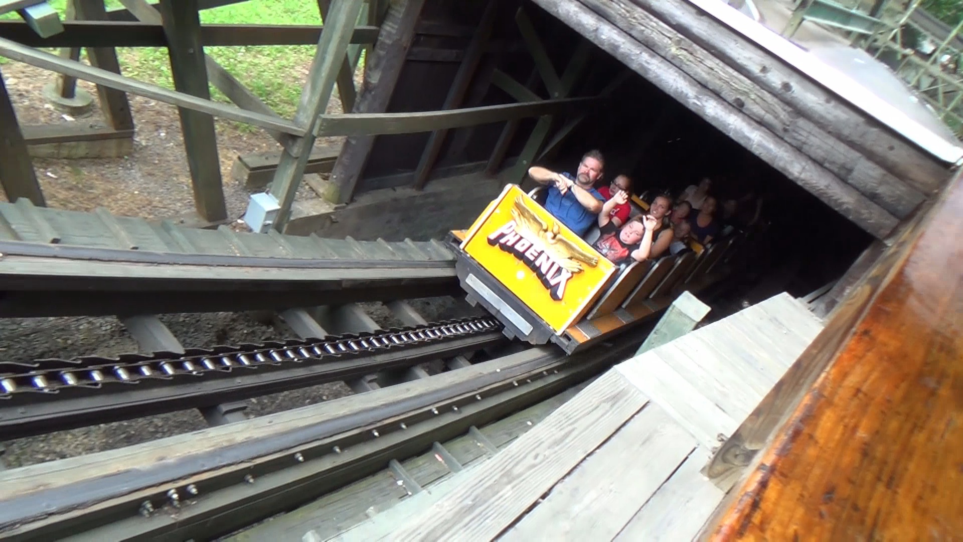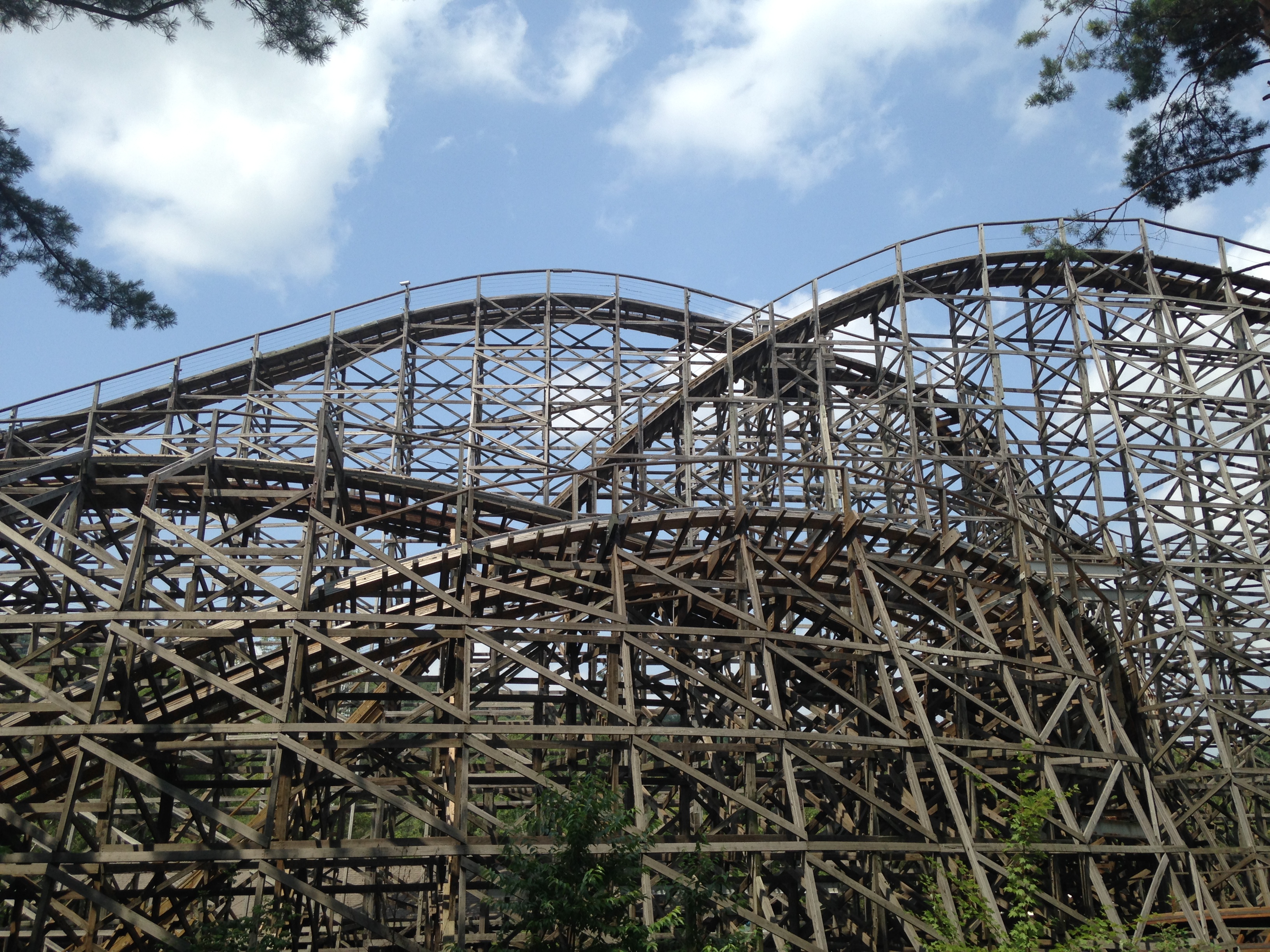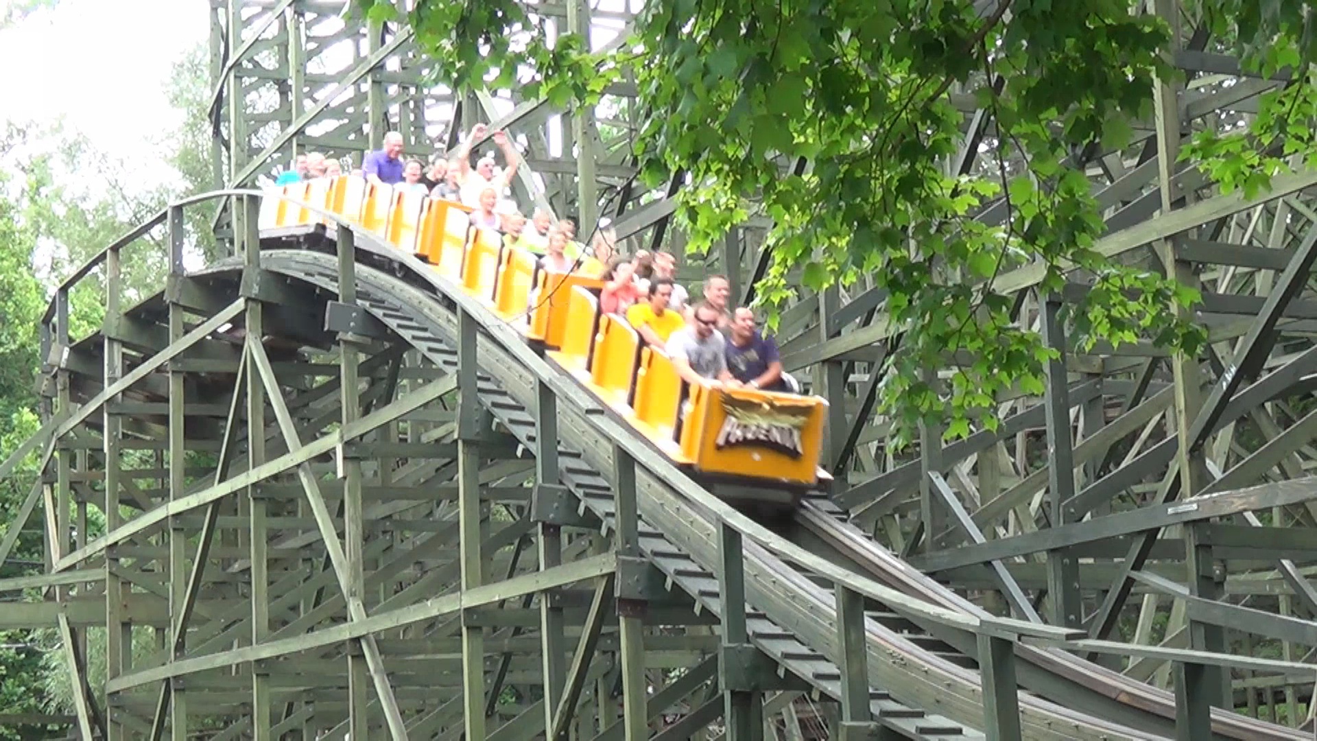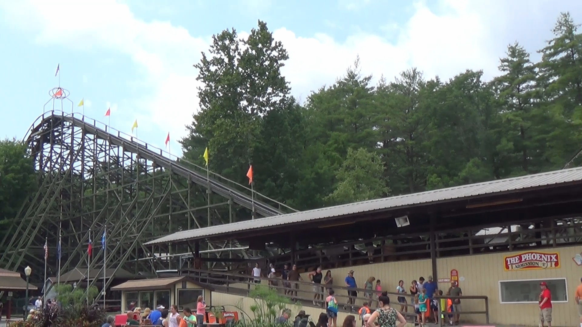 Phoenix. Dieser stand bis in die 80er Jahre im Playland Park San Antonio, nachdem er dort 1947 erstmals als Rocket, "the largest roller roaster in the world" eröffnet worden war und bevor er wiederum nach der Schließung des Parks dann 1985 in Knoebels aus der eigenen Asche emporstieg. Das hab ich gerade mal recherchiert. Was wir aber zu diesem Zeitpunkt schon wussten, ist dass dieses Stück Holz in quasi allen namhaften Woodie-Polls und -Bestenlisten seit jeher und nahezu ohne Unterbrechnung unter den Top 10, meist gar unter den besten 5 rangiert. Natürlich sorgt das für eine gewisse Erwartungshaltung.