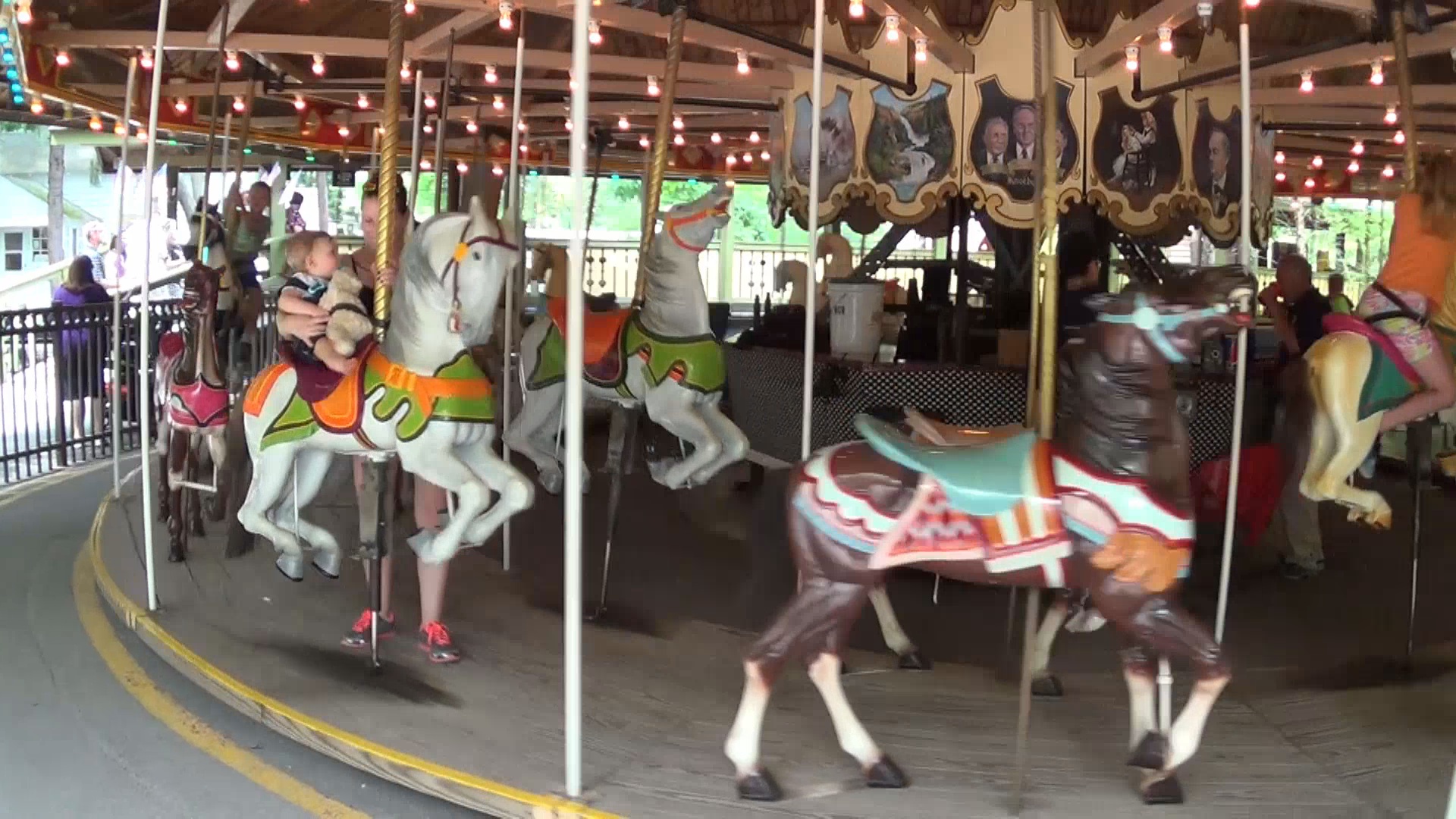 Hier hat's außerdem noch ein über 100 Jahre altes Karussell! Dessen Geschichte lasse ich jetzt mal unangetastet, zumal das hier nur die Kiddie-Variante ist. Zentraler im Park gibt es sogar noch das sich auch schon dreistellig jährende Grand Carousel, das wir glaube ich gar nicht so genau betrachtet haben, da ich nicht gedacht hätte, dass es gleich zwei dieser prächtigen Antiquitäten gibt.