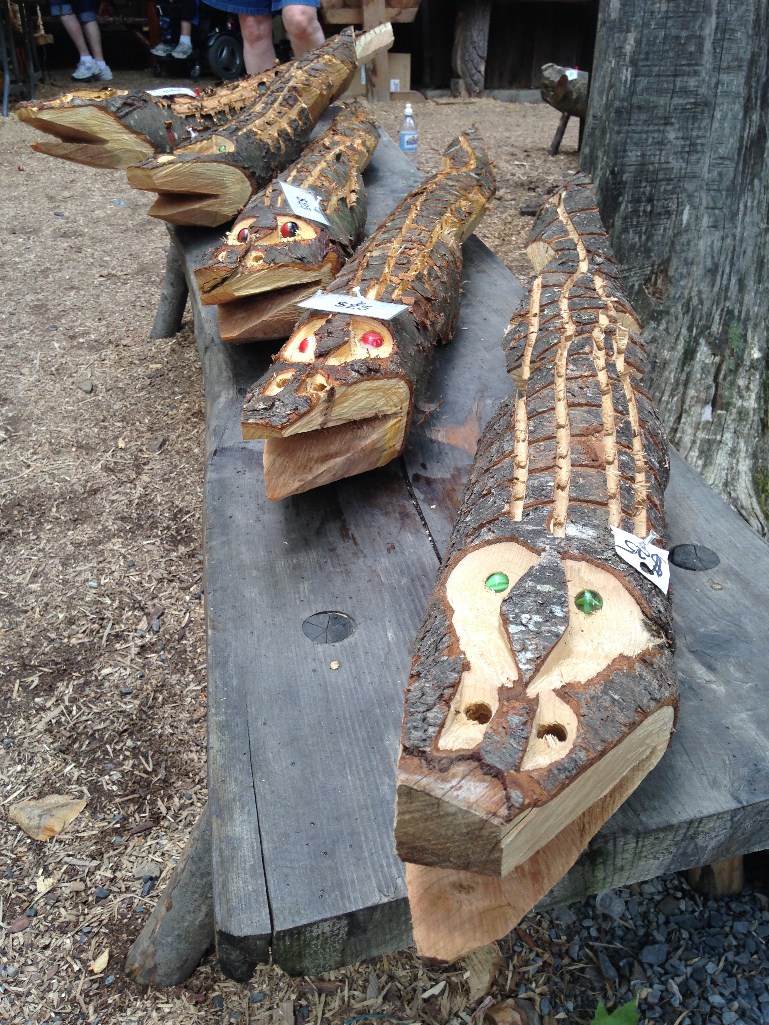Unweit des ersterwähnten Pferdchen-Rundfahrgeschäfts treffen wir auf eine weitere Sehenswürdigkeit: Auf dem Parkplan als Americana verzeichnet gibt es hier neben einer passenden Flagge einen Schmied, der glaube ich größtenteils althergebracht arbeitet und ein paar Souvenirs der niveauvolleren Sorte herstellt, während gegenüber ein Mann mit Kettensäge die Besucher durch das gekonnte Schwingen derselbigen zum Kauf von allerlei hölzernem Kram verlockt.