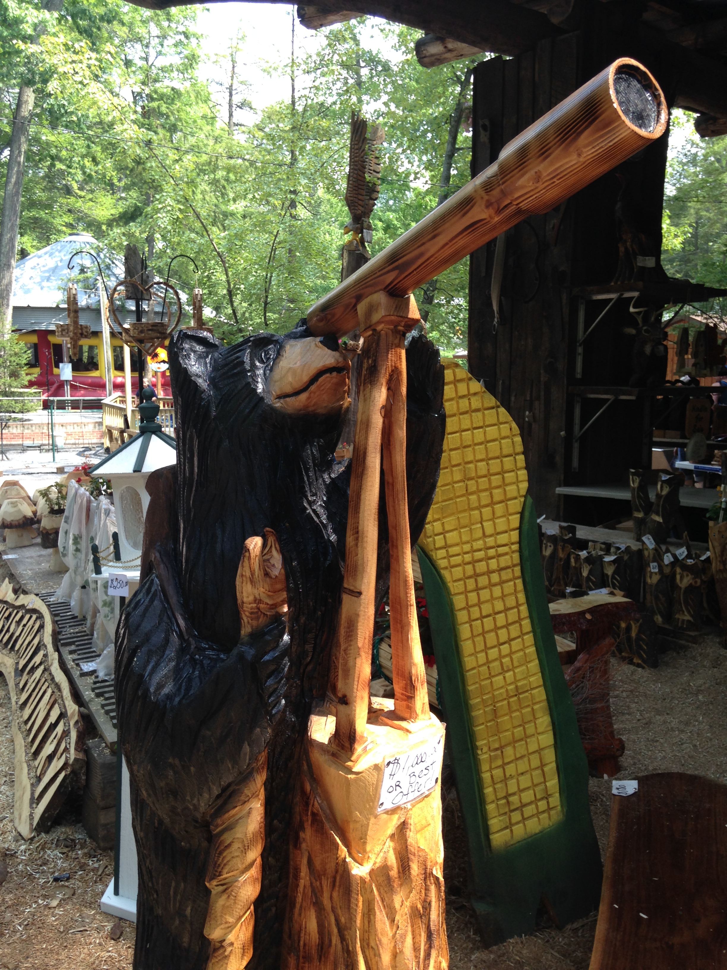 Und es ist schöner Kram dabei: Skulpturen in allen Größen, Bären, Gartenzierde aller Art und Schilder mit der Aufschrift "My dog's name is Peanut Butter". Na wenn man da mal nix findet! Wiedermal fühlt man sich hier nicht so ganz wie man es von einem Freizeitpark gewohnt ist - und zwar im positiven Sinne.