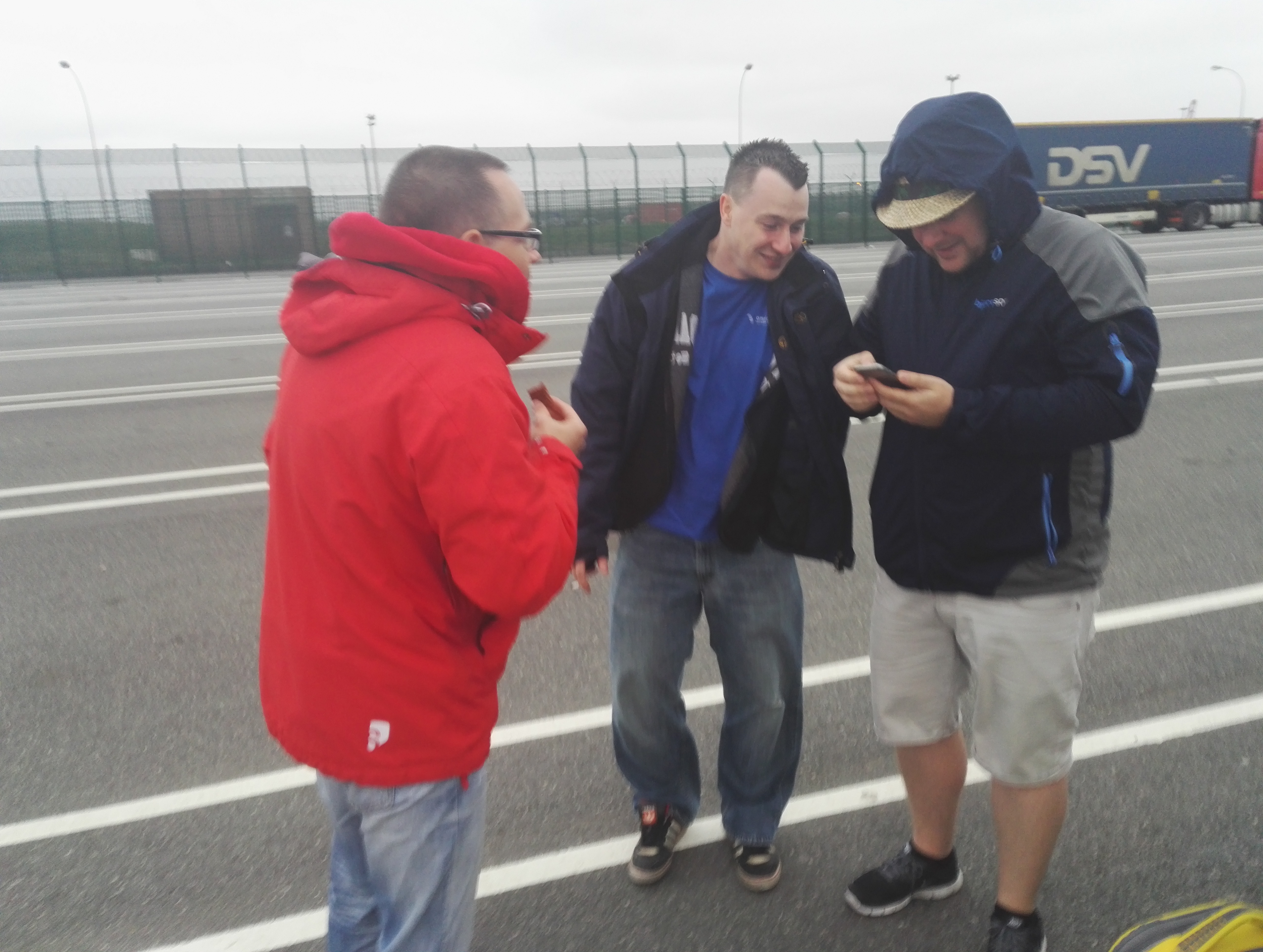Leider war die Anfahrt von Duisburg bis nach Dünnkirchen von einigen längeren Staus geprägt. Schon in Duisburg fuhr unser Fahrer in seiner Heimatstadt auf die falsche Abfahrt, so dass wir Duisburg erst gegen 16:30 Uhr verließen. Unsere Fähre war für 20:00 Uhr in Dünnkirchen gebucht, also blieben für die weitere Anreise noch ca. 3 stunden. Weitere Staus - vor allen Dingen auf dem Ring in Antwerpen ließen uns dann kurz vor 21:00 Uhr im Hafen in Dünnkirchen ankommen. Trotz fester Buchung der 20:00 Uhr-Fähre konnten wir dann noch die 22:00 Uhr Fähre mit demselben Ticket nutzen.
