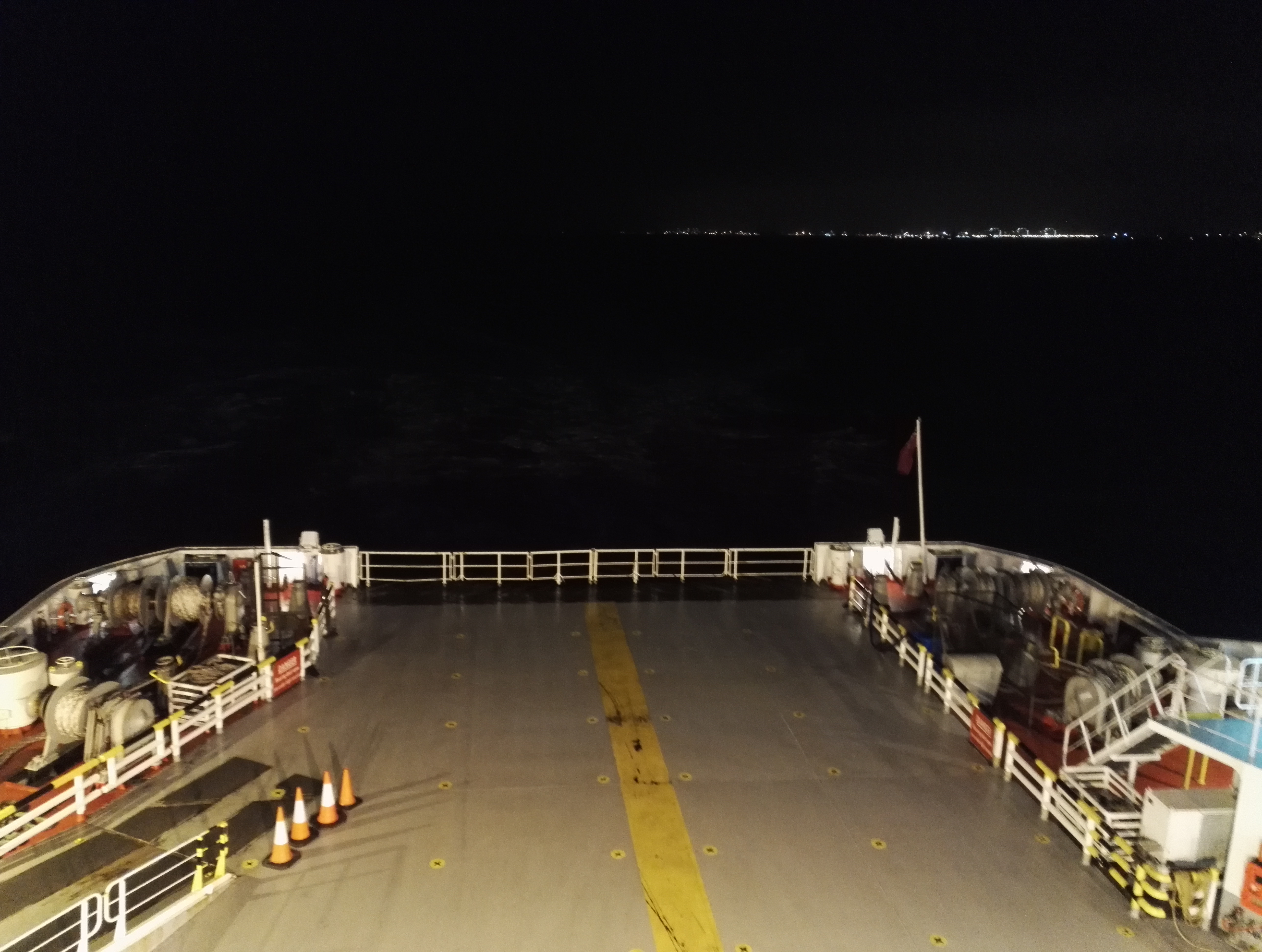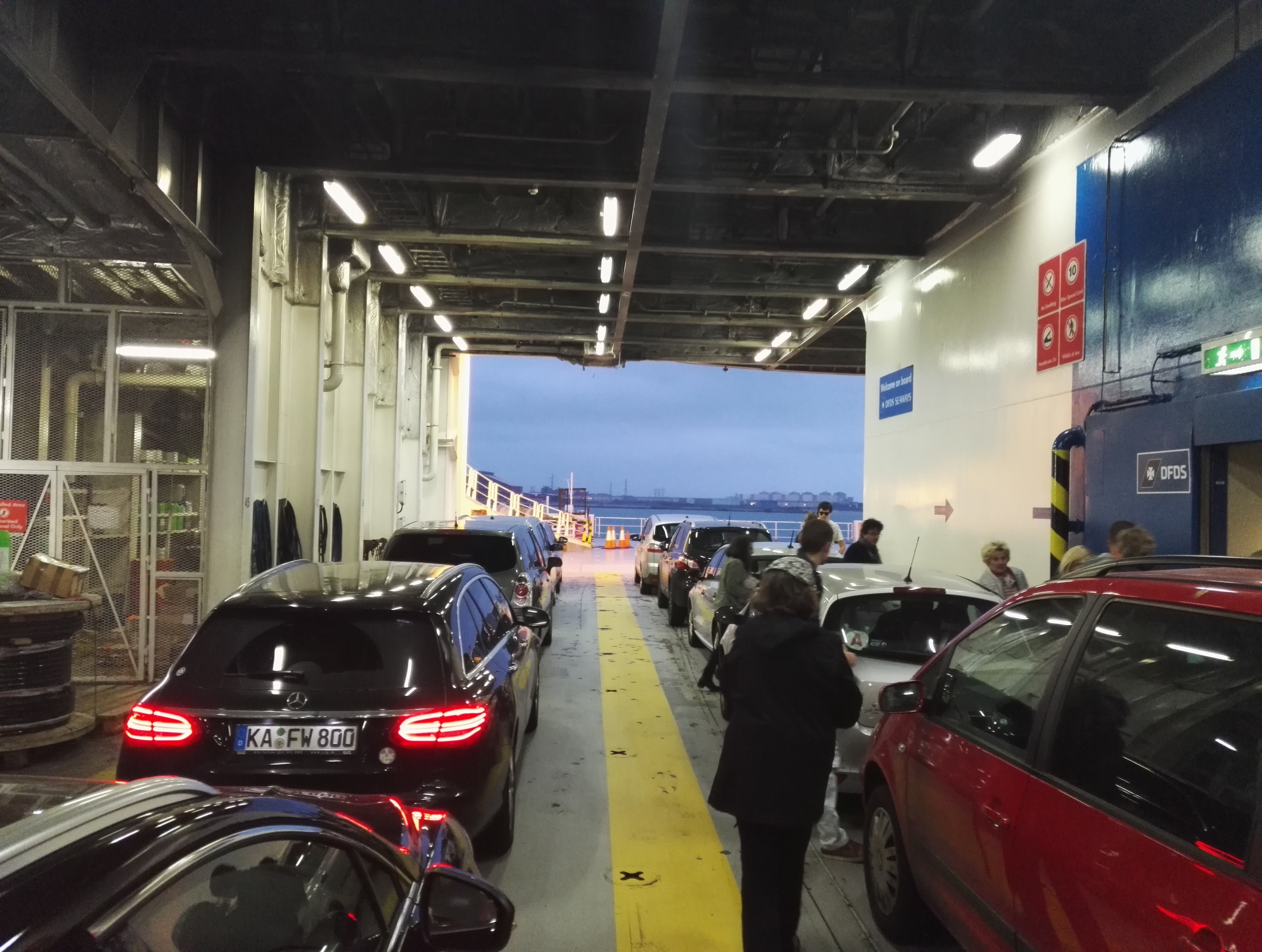Die Fähre legte mit ca. 20 Minuten Verspätung ab, da zahlreiche Autos, wie das unsere in den Staus standen, und somit man noch auf den ein oder anderen Nachzügler wartete.