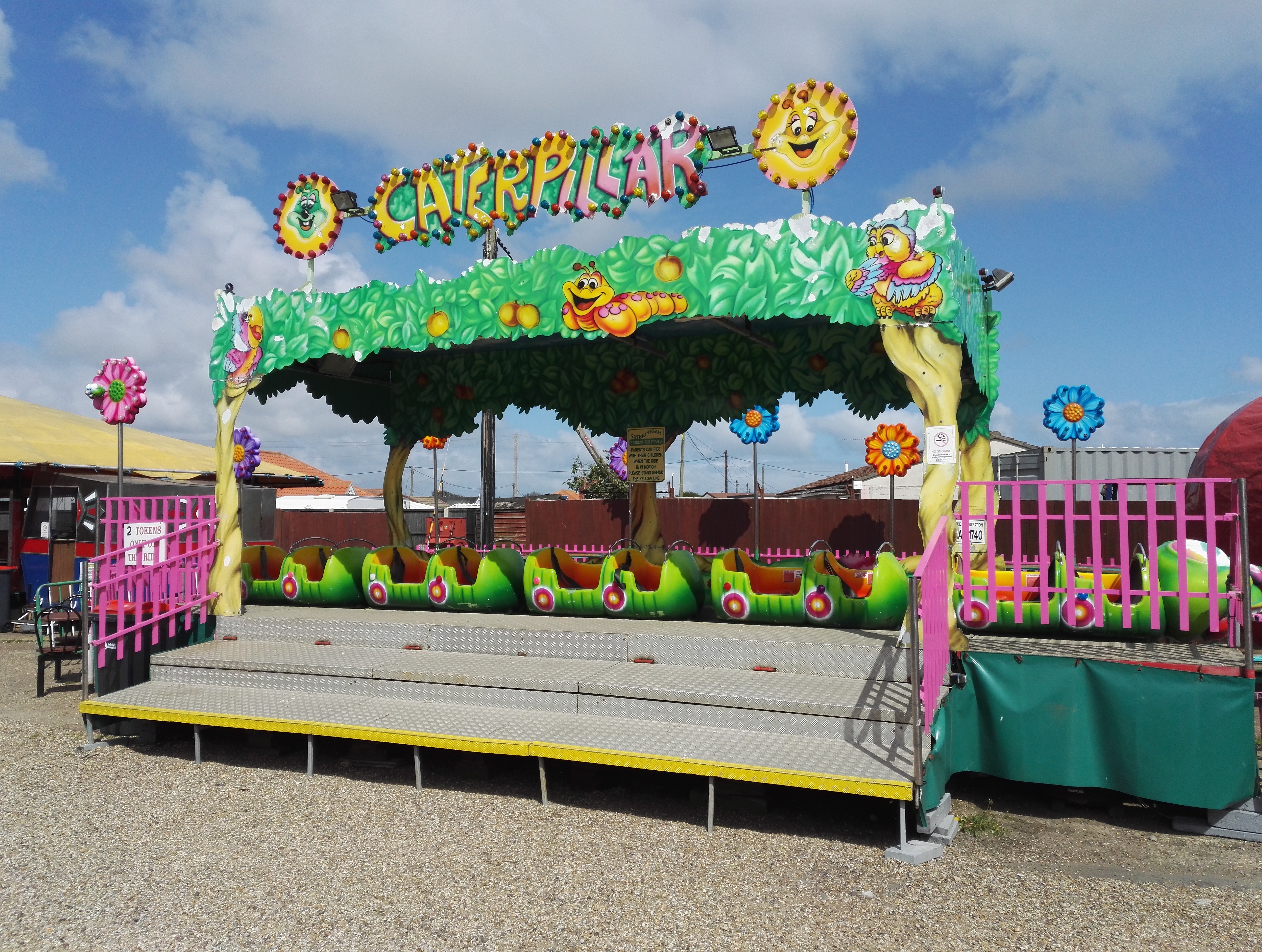 Kurz vor dem Strand liegt dann auch der kleine Funpark. Im Coaster-Count ein roter Punkt, der sich in der Realität, in das erste Token-Paradies der Tour verwandelt und den Charme einer angeranzten Kirmes verbreitet. Unser Ziel heisst Caterpillar und entpuppt sich bei näherem Hinsehen als ein Powered Coaster.