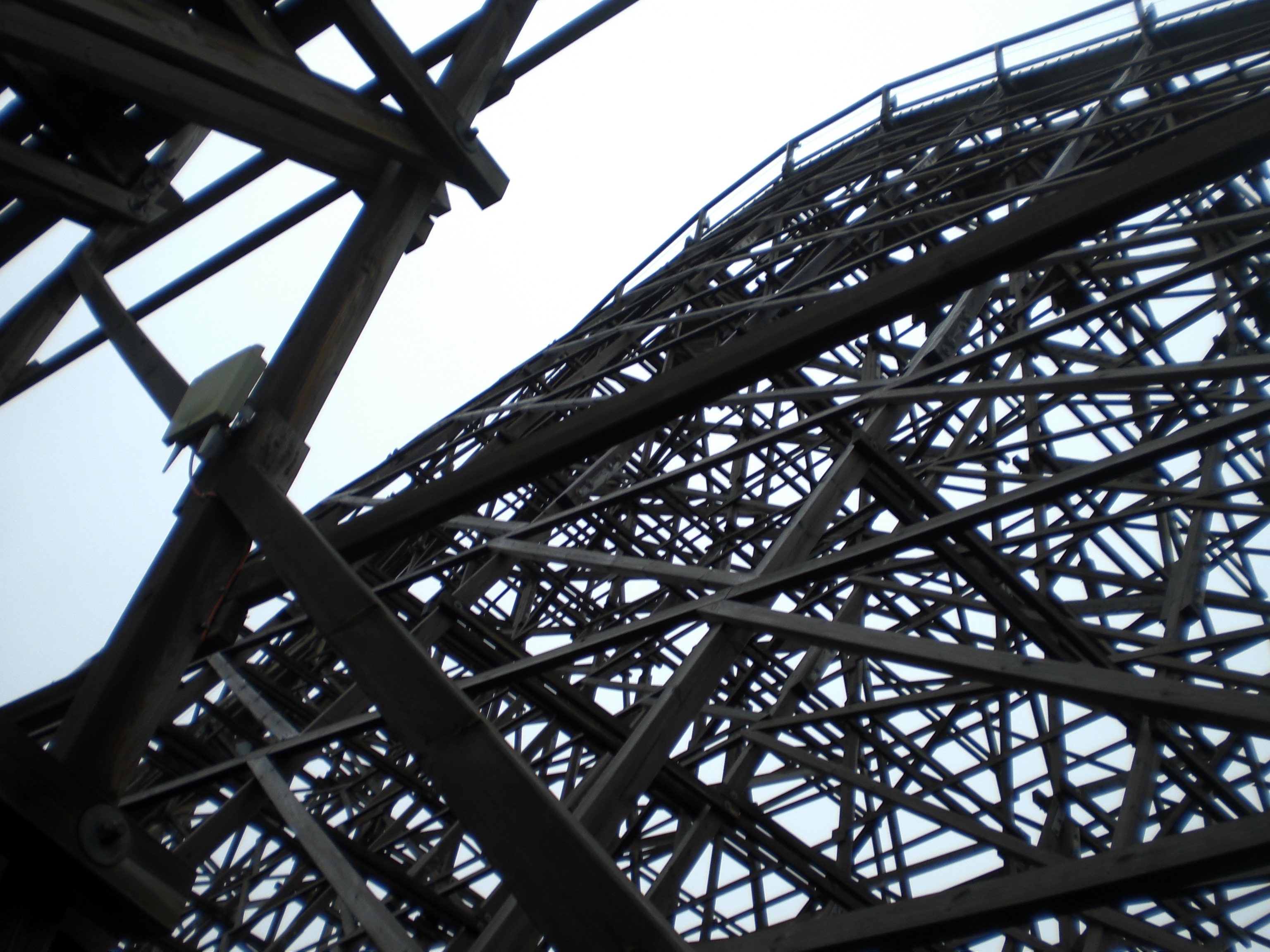 Am Ende geht es hoch in diesen Turm hinein und auf den größten und letzten Drop zu.