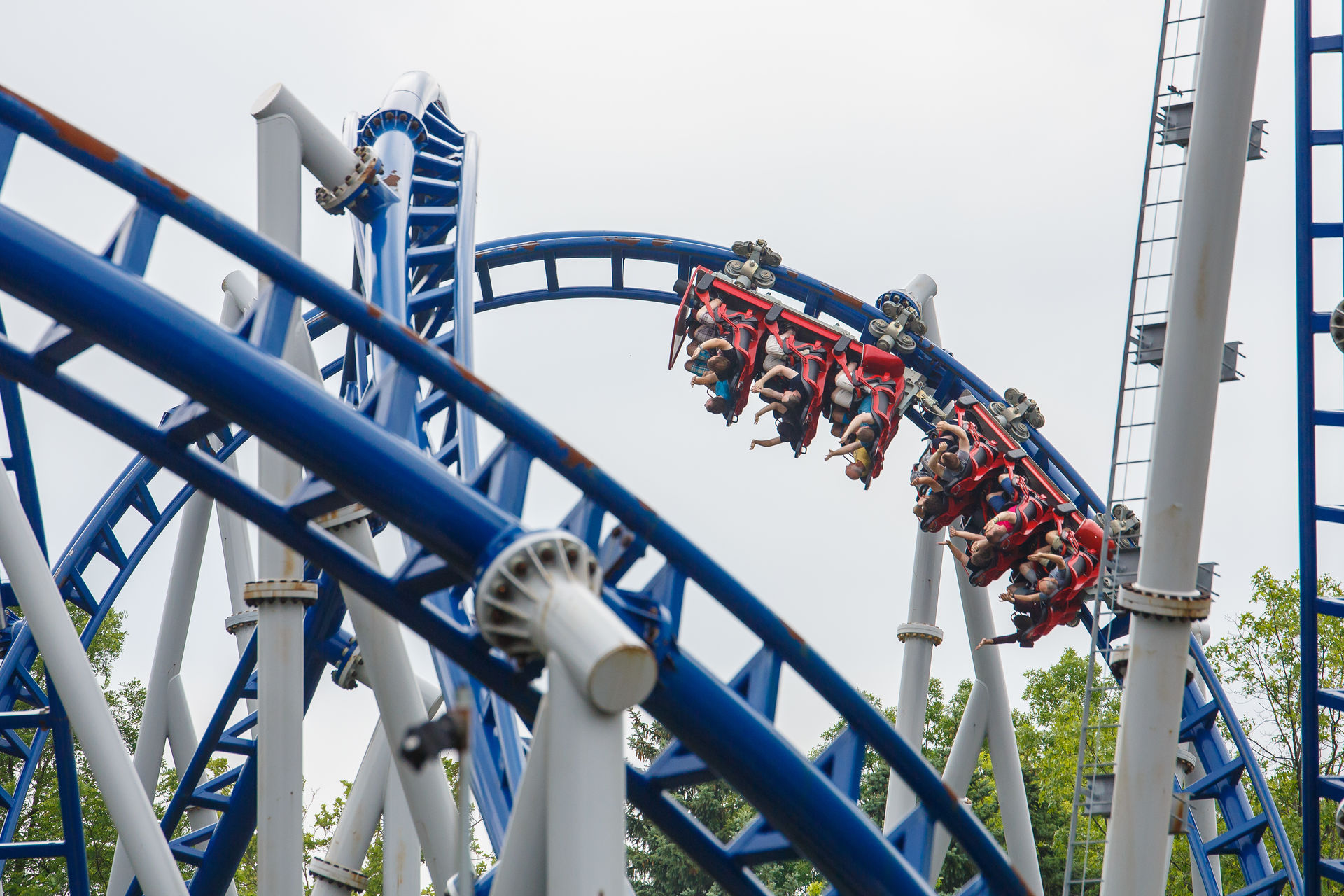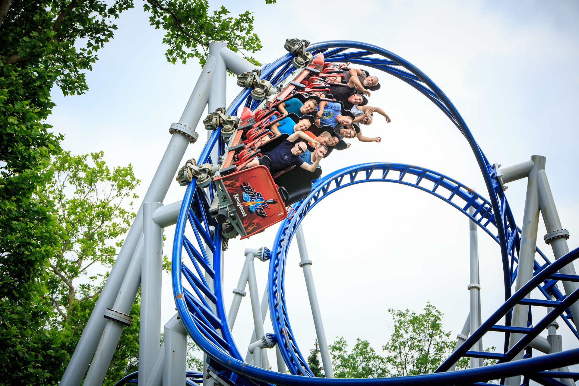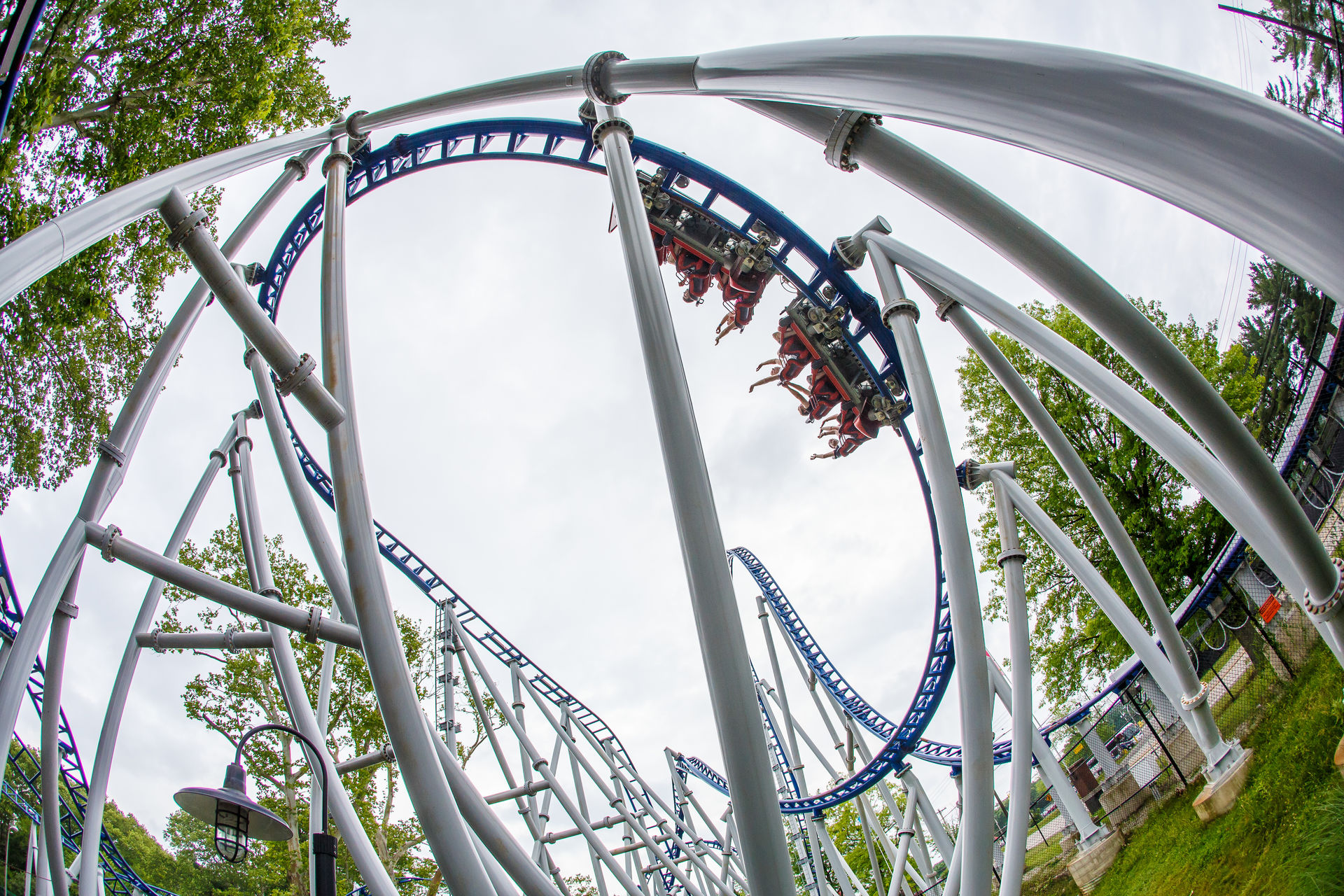 Im Anschluss gingen wir als Gruppe zum ehemaligen Multilooper Steel Phantom, der im Zuge einer Komplettrenovierung zum inversionlosen Megacoaster Phantoms Revenge wurde. Auffällig ist vorallem der große Drop entlang eines Gefälles im mittleren Teil der Layouts. Hier kreuzt man auch die Strecke der Holzachterbahn Thunderbolt. Phantoms Revenge besticht vorallem durch sein ungewöhnliches Layout und die heftige Airtime im letzten Teil der Fahrt. Für mich die beste Bahn im Park.