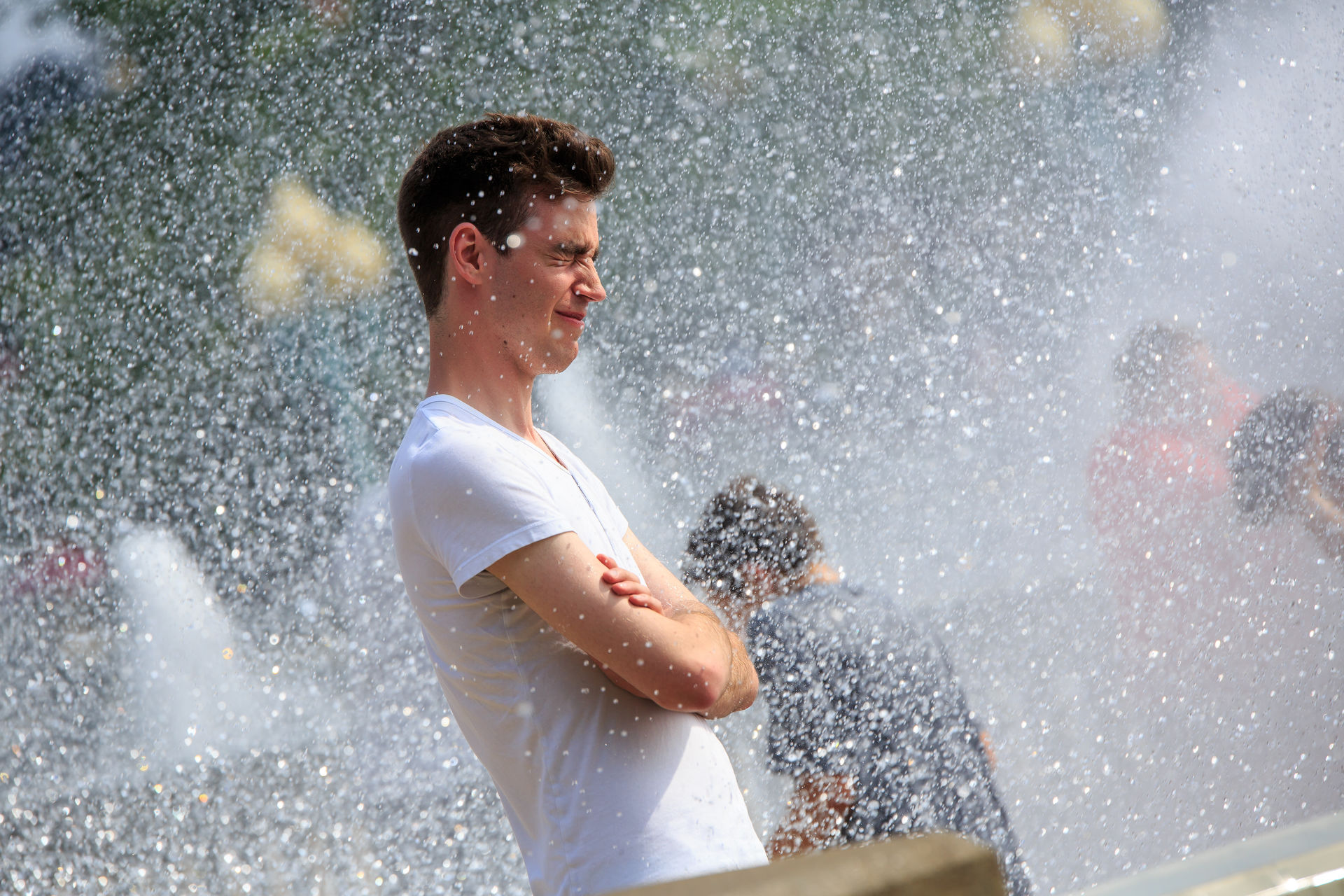 Gestelltes Splash Foto. Er hat nicht mal nen Tröpfchen abbekommen
