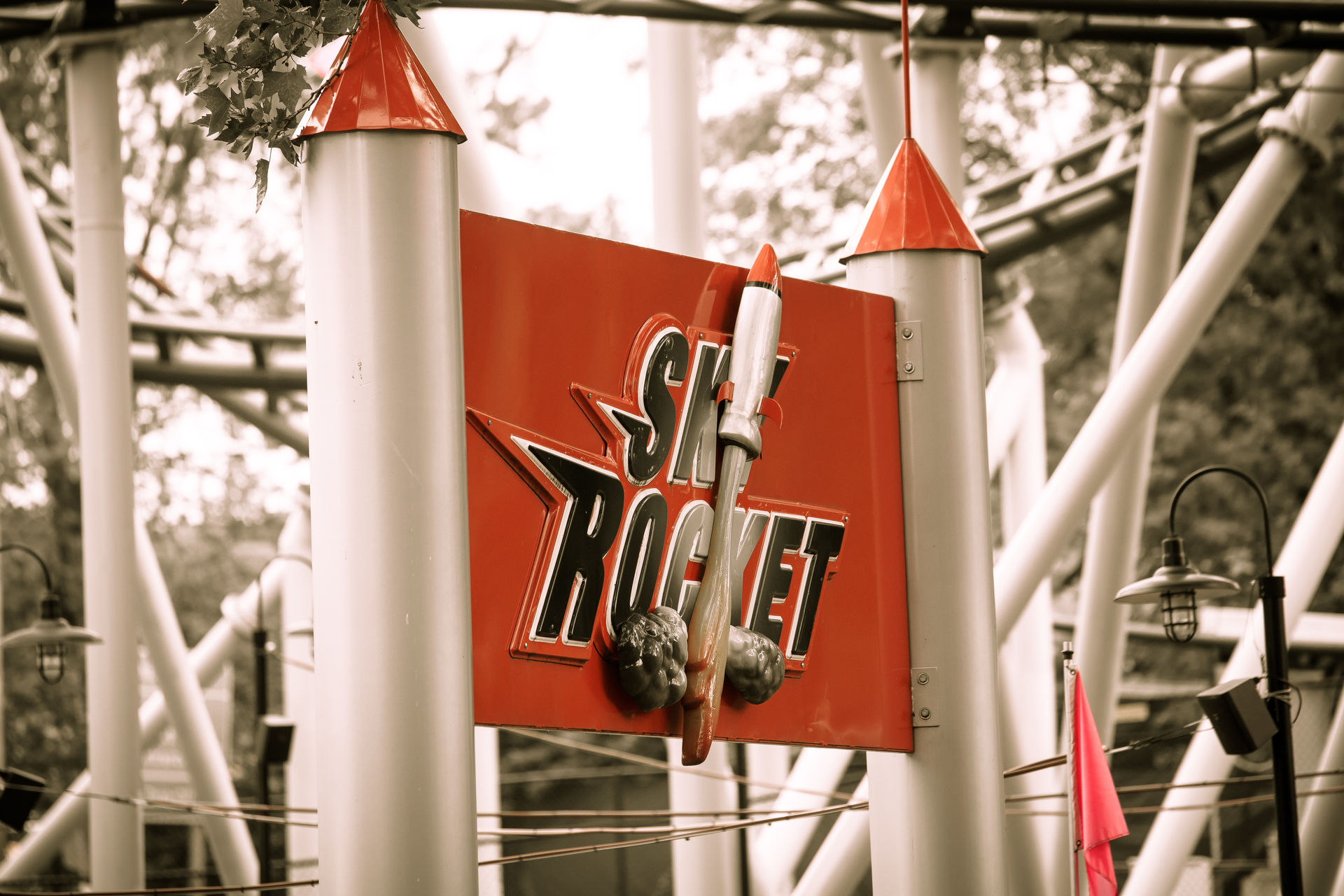 Sky Rocket steht direkt an der Straße und lässt sich somit gut vom gegenüberliegenden Parkplatz einsehen.