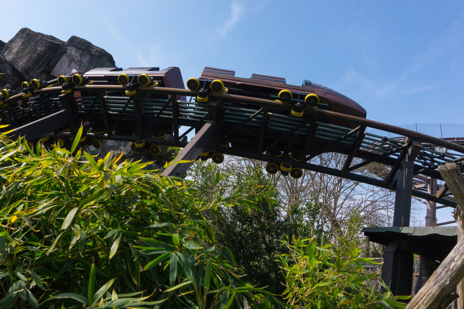 Die Fahrt beginnt mit einer weiten Linkskurve, an der sich ein gemächlicher Anstieg vorbei an einigen künstlichen Felsen anschließt. Oben angekommen durchfährt der Zug eine Abwärtshelix durch die Felsenformation ehe es eine steilere Gerade empor geht. Nun fährt der Zug durch eine weite abwärtsführende Rechtskurve, unterquert die eben passierte Strecke und umrandet die erste Abwärtshelix in einer Linkskurve. Mit nun deutlich mehr Schwung durchquert man die Station und vollführt eine weitere Runde durch den Parcours.