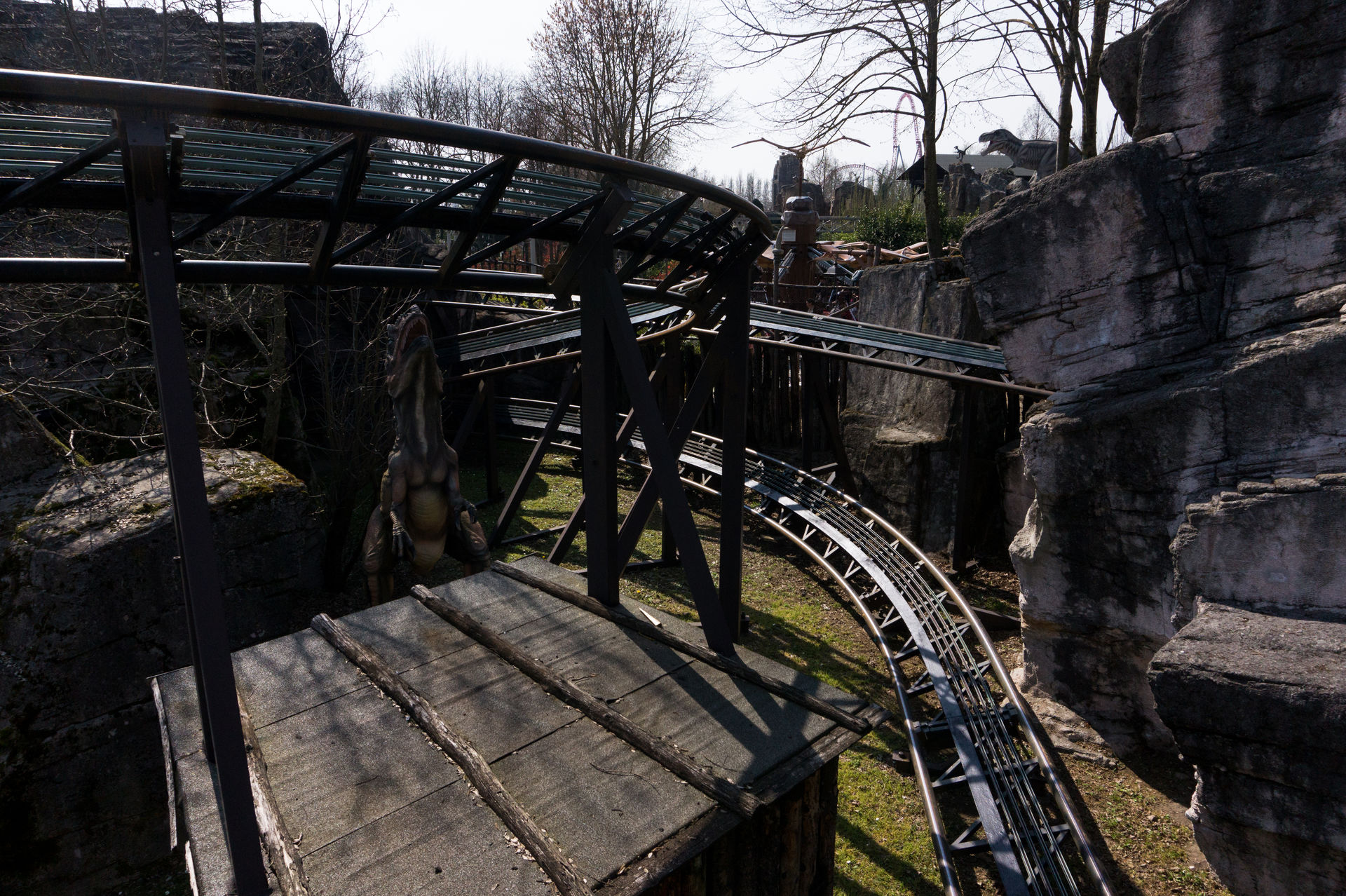 Über die Insel mit der Acapulco-Todesspringer-Show erreicht man das im Jahr 2014 neugestaltete Dinoland. Neben der Umgestaltung vorhandener Anlagen, wie z.B. der Pressluftflieger mit Schrägstellung oder der beliebten Kindermonorail, fanden auch eine Gelddruckmaschine, ähm Kinderfahrschule, und ein Magic Bike von Zamperla ihren Weg in den Themenbereich. Wichtigstes Ziel für uns war jedoch die älteste Achterbahn des Parks, der Powered Coaster Rexplorer.
