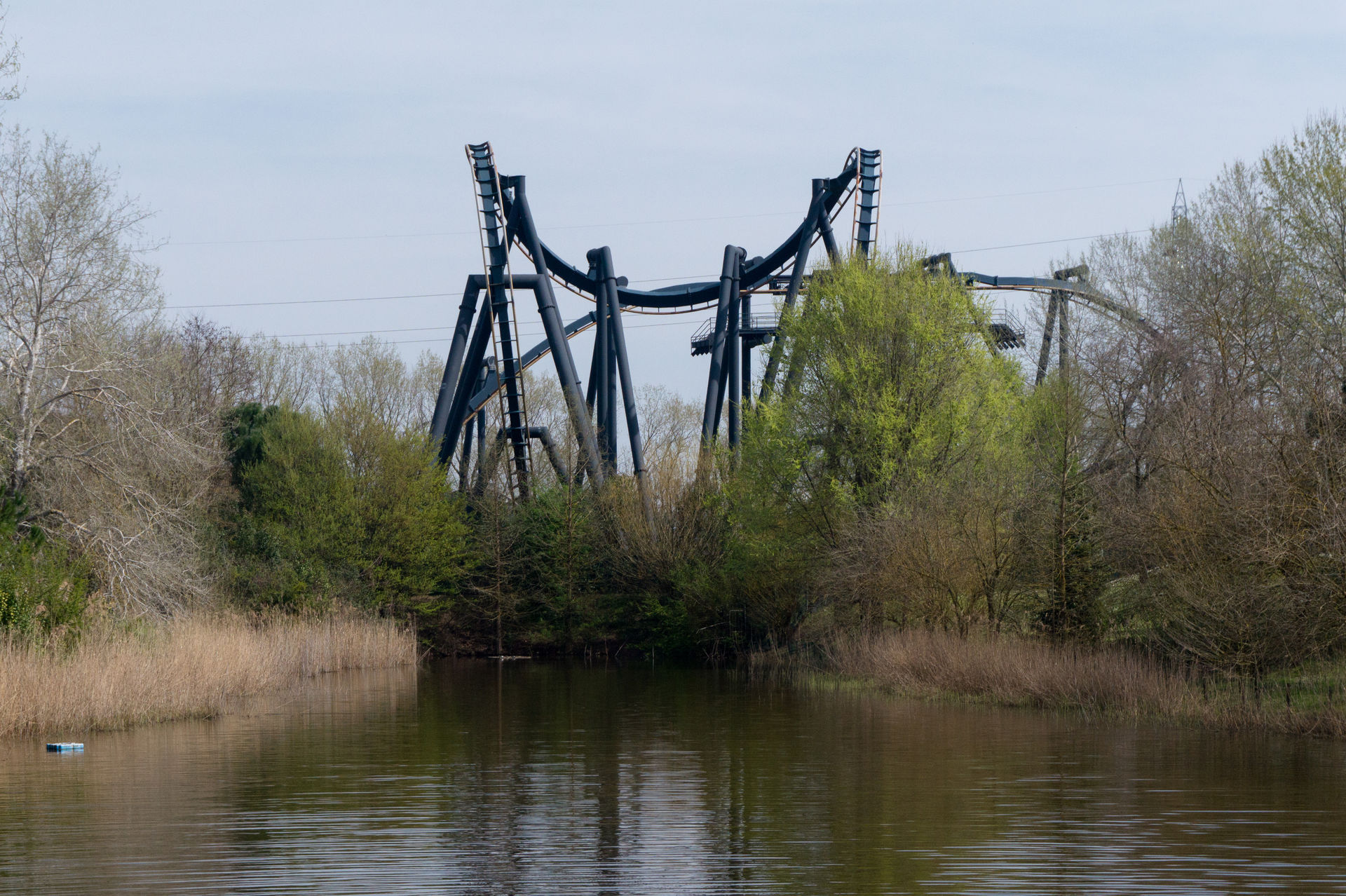 Wasserachterbahn Divertical. Spätestens jetzt wird einem bewusst, wie hoch die Anlage doch ist und wie verschwenderisch sie mit dem Platz auf dem sie platziert wurde umgeht; dadurch wirkt die Anlage jedoch keineswegs ästhetisch, was vor allem an den sparsam platzierten Dekorationselementen liegt. Andererseits schmückt sie mit dem hinteren Teil der Fahrt den irrsinnig langen Zugangsweg zur völlig deplatzierten interaktiven Themenfahrt Reset, was durchaus positiv anzumerken ist und wahrscheinlich mehr Personen als je zuvor in diese Ecke des Parks lockt.