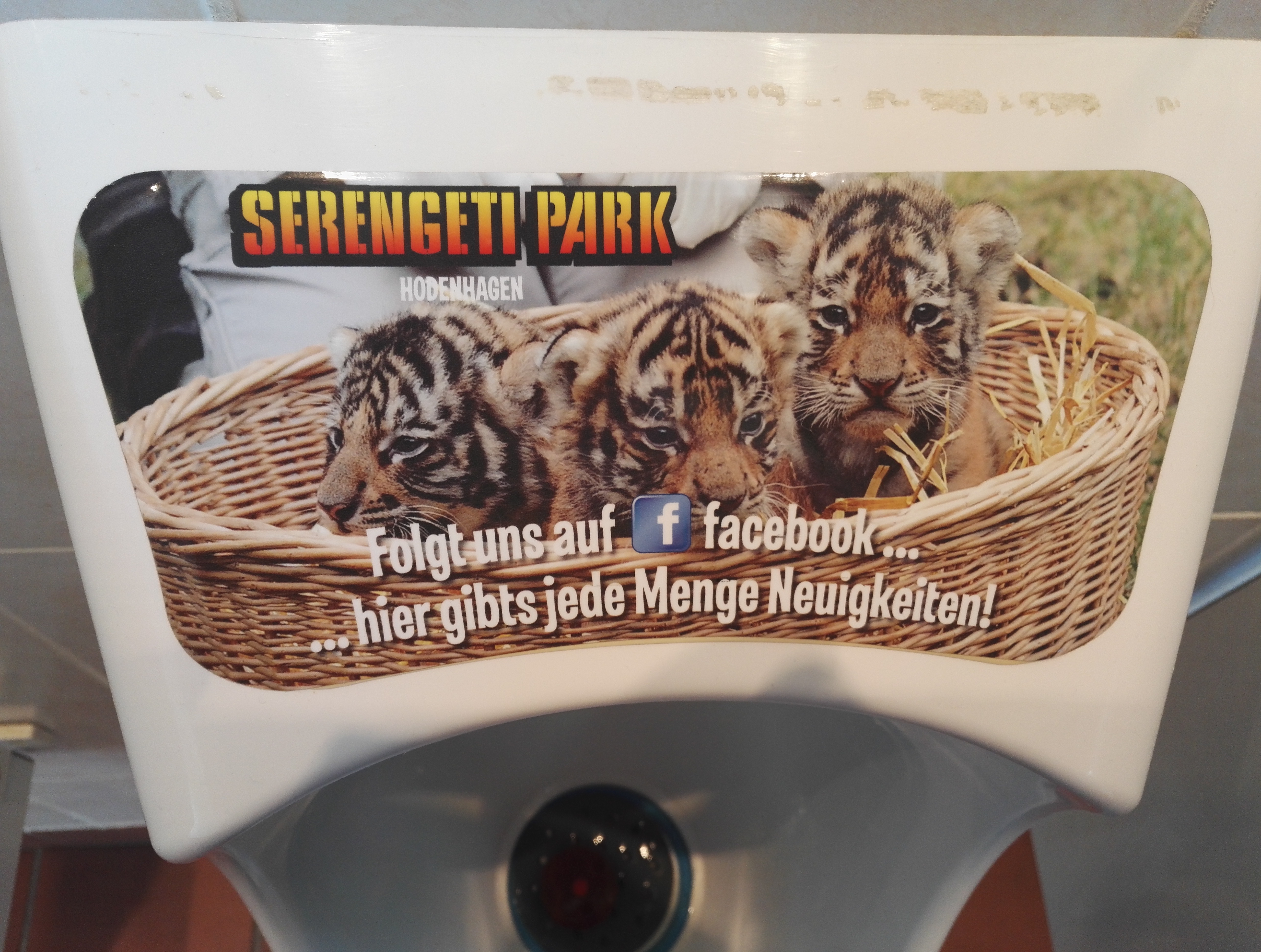 Erste Station, erstes Foto: Pippi-Station, Urinal mit Werbung