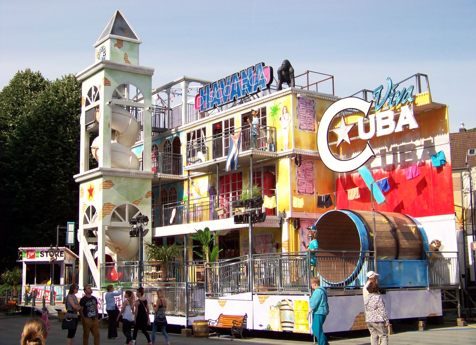 Auch in diesem Jahr ist die Megakirme insgesamt sehr stark besetzt. Direkt gegenüber der Schwebebahn-Station erwartet den Besucher die Laufgeschäftsneuheit Viva Cuba von Hartmann.