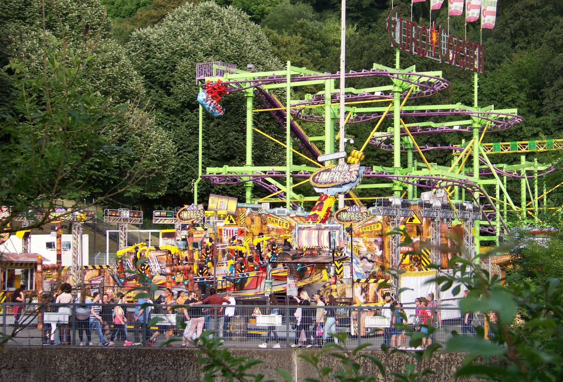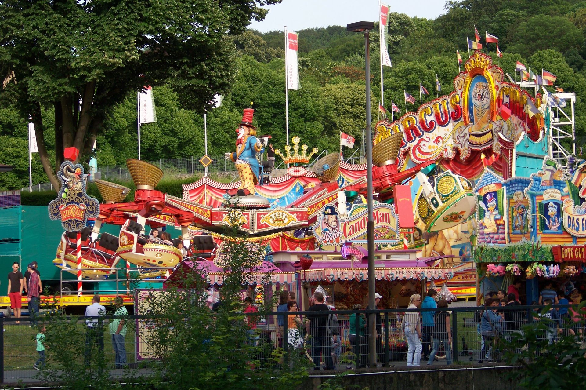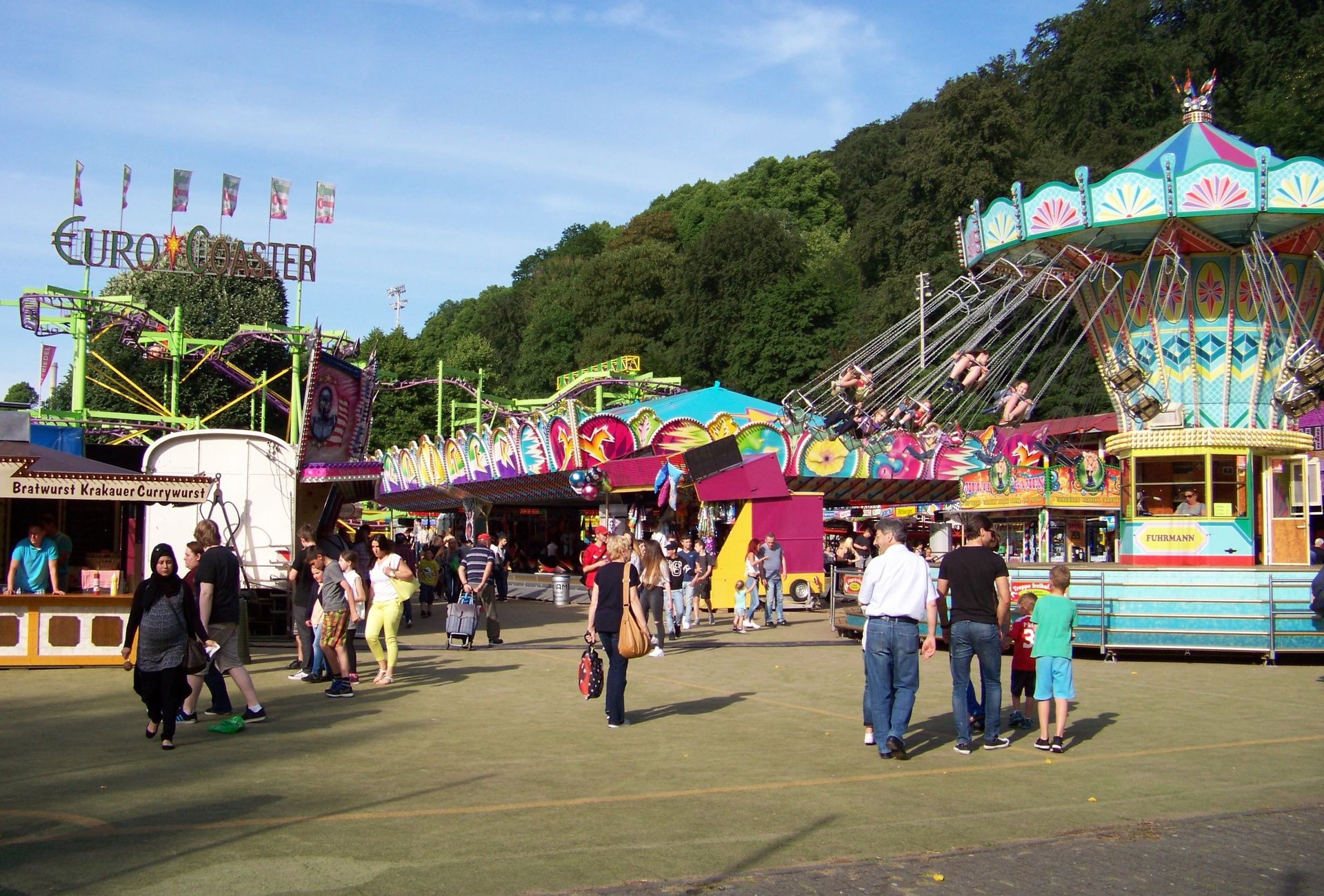 Am Freitag ging es zur frisch eröffneten Megakirmes am Stadion am Zoo in Wuppertal. Bereits am Nachmittag war die noch recht junge Veranstaltung, deren fünfte Ausgabe an diesem Wochenende über die Bühne geht, sehr gut besucht. Der Platz selbst ist sehr schön im Tal gelegen, direkt an Wupper, Schwebebahn und besagtem Stadion und strahlt trotz - oder vielleicht auch gerade wegen - der etwas eigenwilligen Platzaufteilung ein tolles Kirmesflair aus.