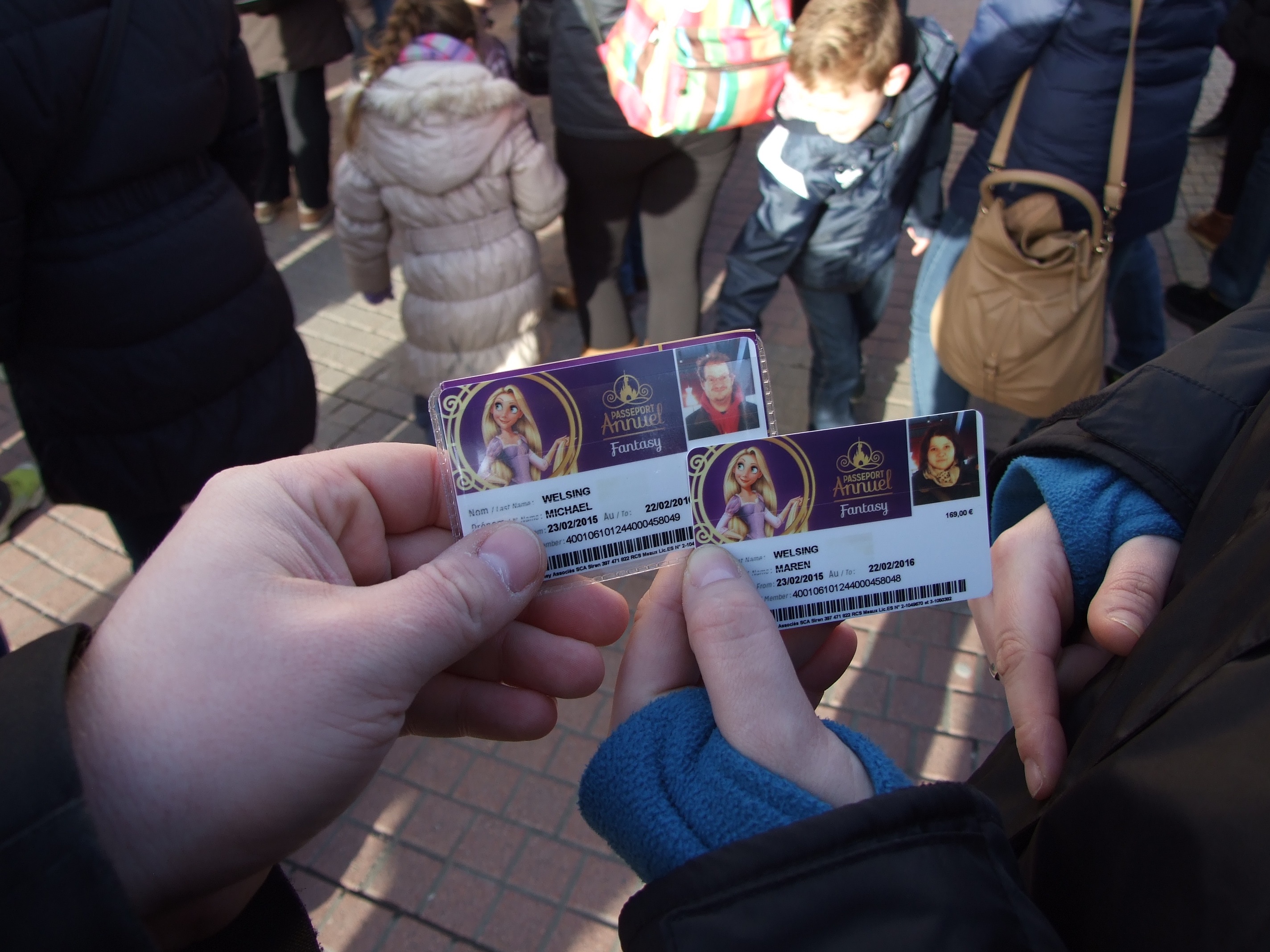 Als wir also dann am Park waren, leuchteten die Augen meiner Frau. Endlich Disney! Also schnell zur Kasse und die Jahreskarten gekauft. Diese Entscheidung war im Vorfeld bereits geplant, kostet die 3-Tageskarte doch 169 ¤ und die Fantasy-Jahreskarte ebenfalls. Nur bekommt man mit der Jahreskarte eben noch 10% Rabatt auf Merchandise und in den Restaurants.