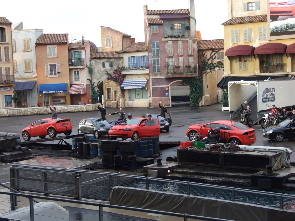 Nun war es an der Zeit den Shows des Parks mal eine Chance zu geben. Zudem musste meine Frau wieder trocken werden. Während ich in der Halle im trockenen gewartet hatte, gab es draußen einen Regenschauer und anstatt sich im Studio 1 unterzustellen, hatte meine Frau Angst, dass ich sie nicht wiederfinde und hat im Regen gewartet.
