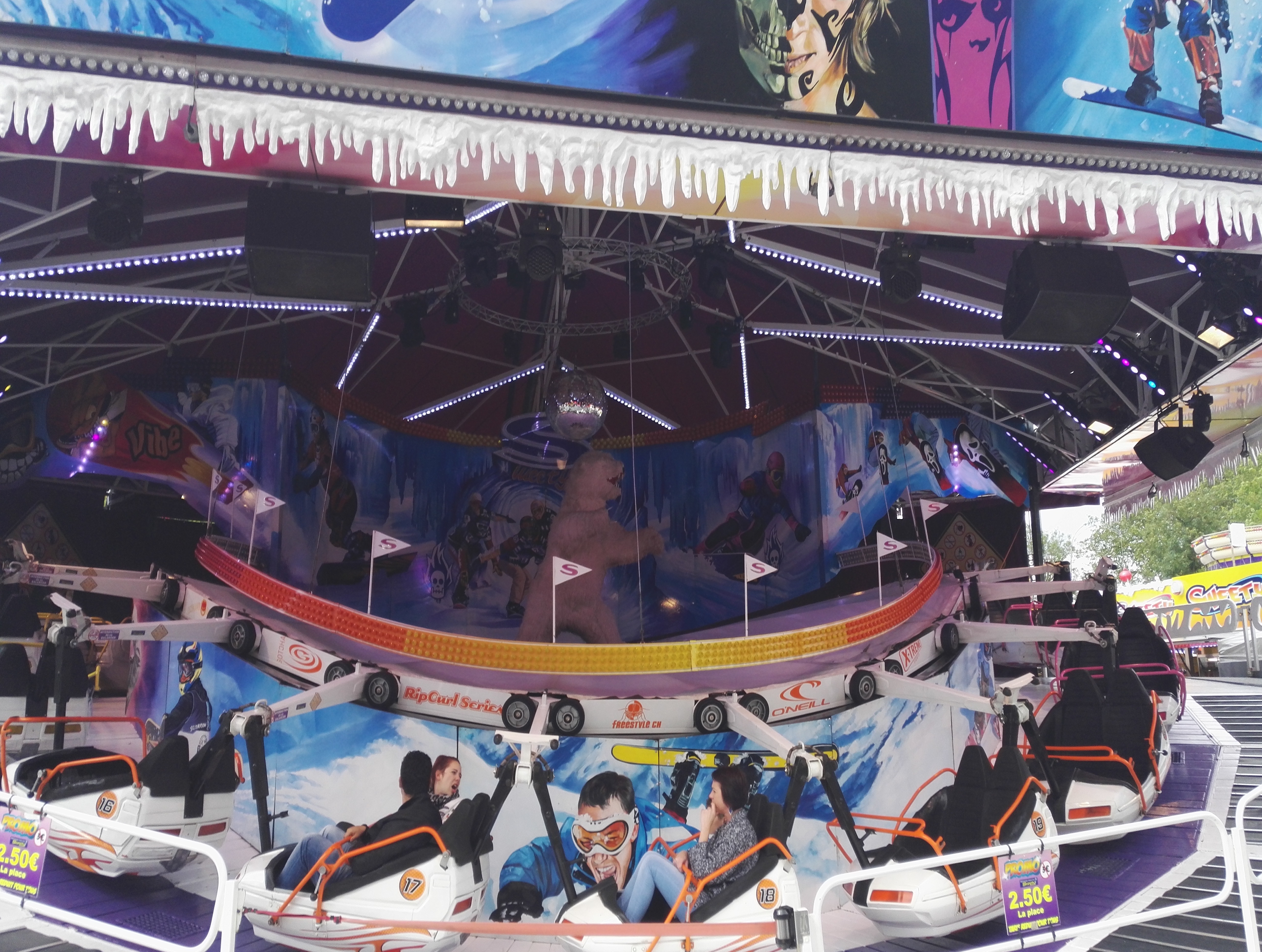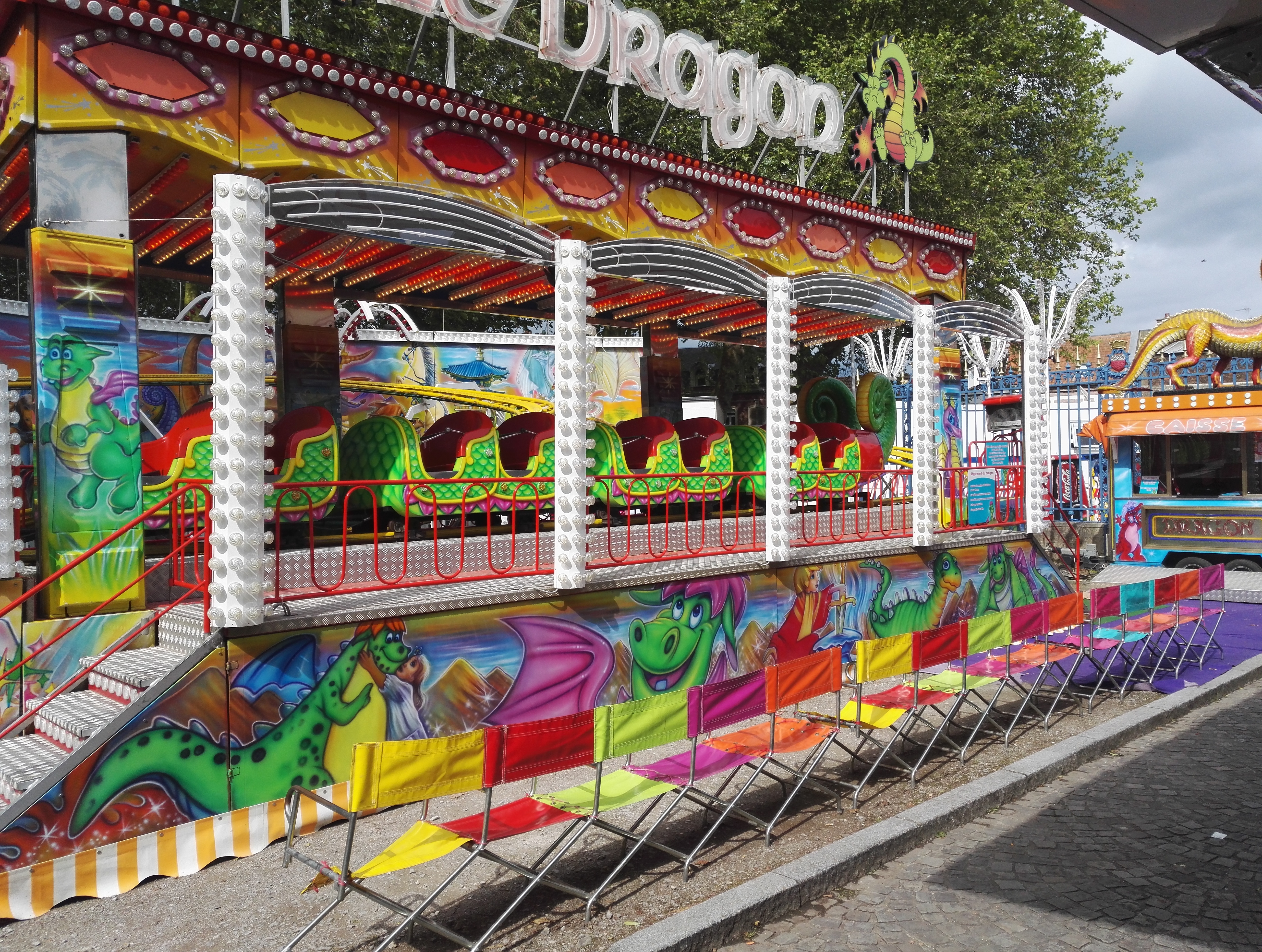Der Großteil der Fahrgeschäfte befindet sich auf zwei Plätzen die neben der Promenade de Hotoie liegen.