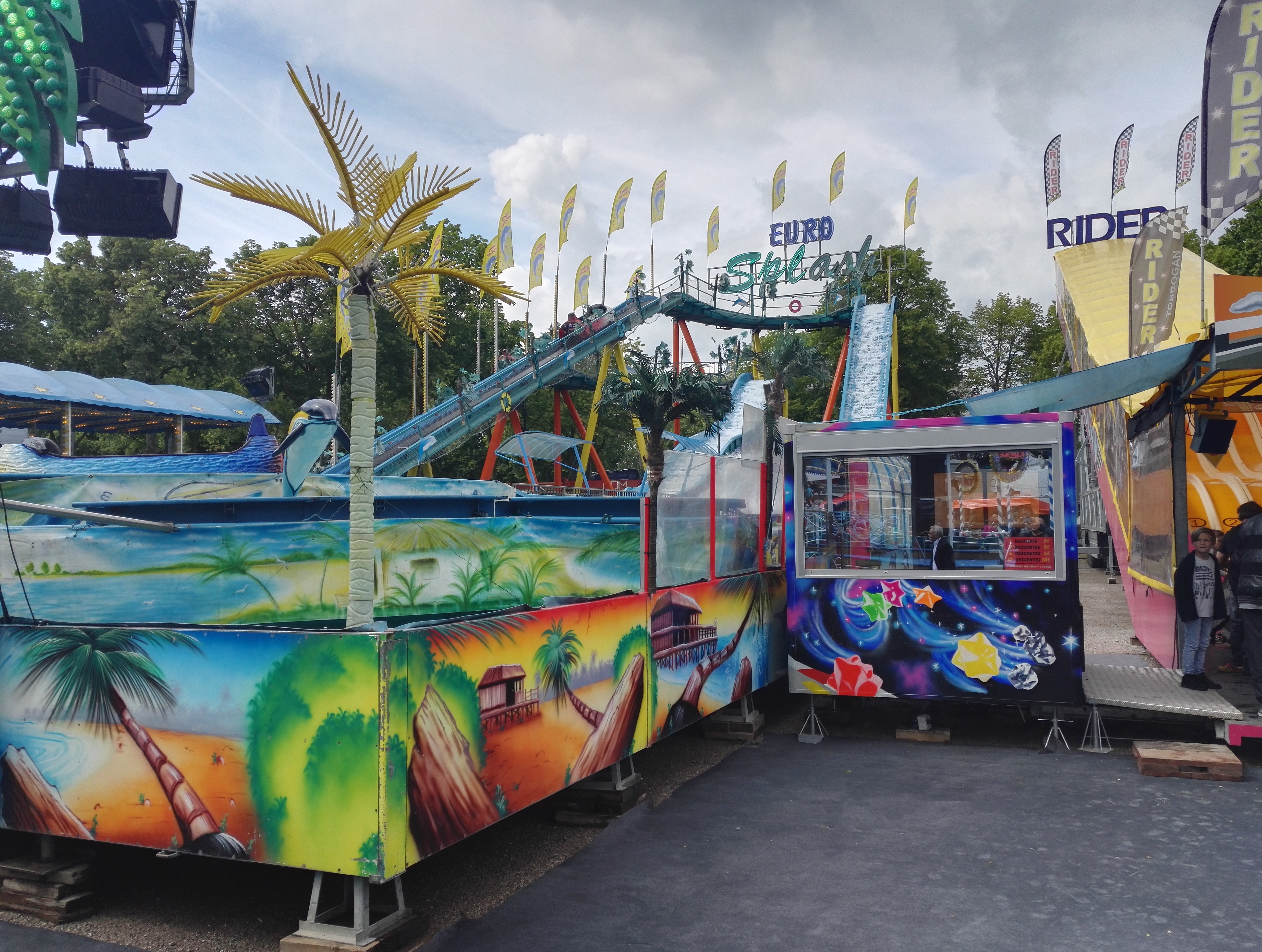 Anders als auf hiesigen Plätzen findet man also eine geballte Ladung an Fahr- und Laufgeschäften nebeneinander, während Spiel und Gastronomie in einer Reihe auf der besagten Promenade zu finden sind.
