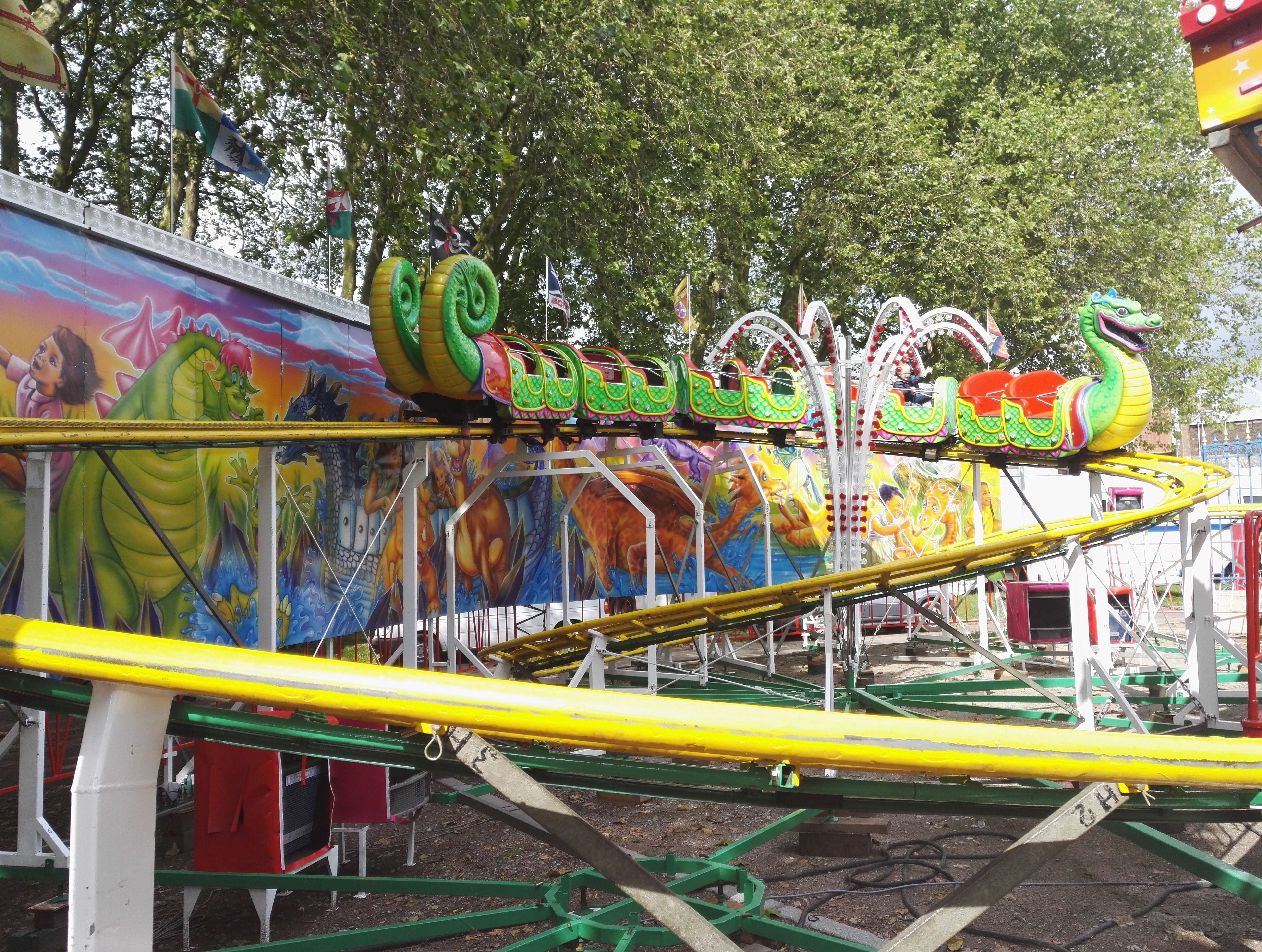 Und den Aufbaufotos nach mit einem Count, einem Le Dragon genannten Powered Coaster unbekannten Besitzers. Für mich ganz spannend: Auf dem mittelgroßen Kirmesplatz steht auch eine Schwarzkopf-Bayernkurve. Das letzte Mal, dass ich so ein Fahrgeschäft gesehen habe ist einige Jahre zurück in Crange gewesen. Und gefahren? Ich glaube das letzte Mal war eine Fahrt im Swiss Bob in Six Flags Magic Mountain - und das ist noch länger her.