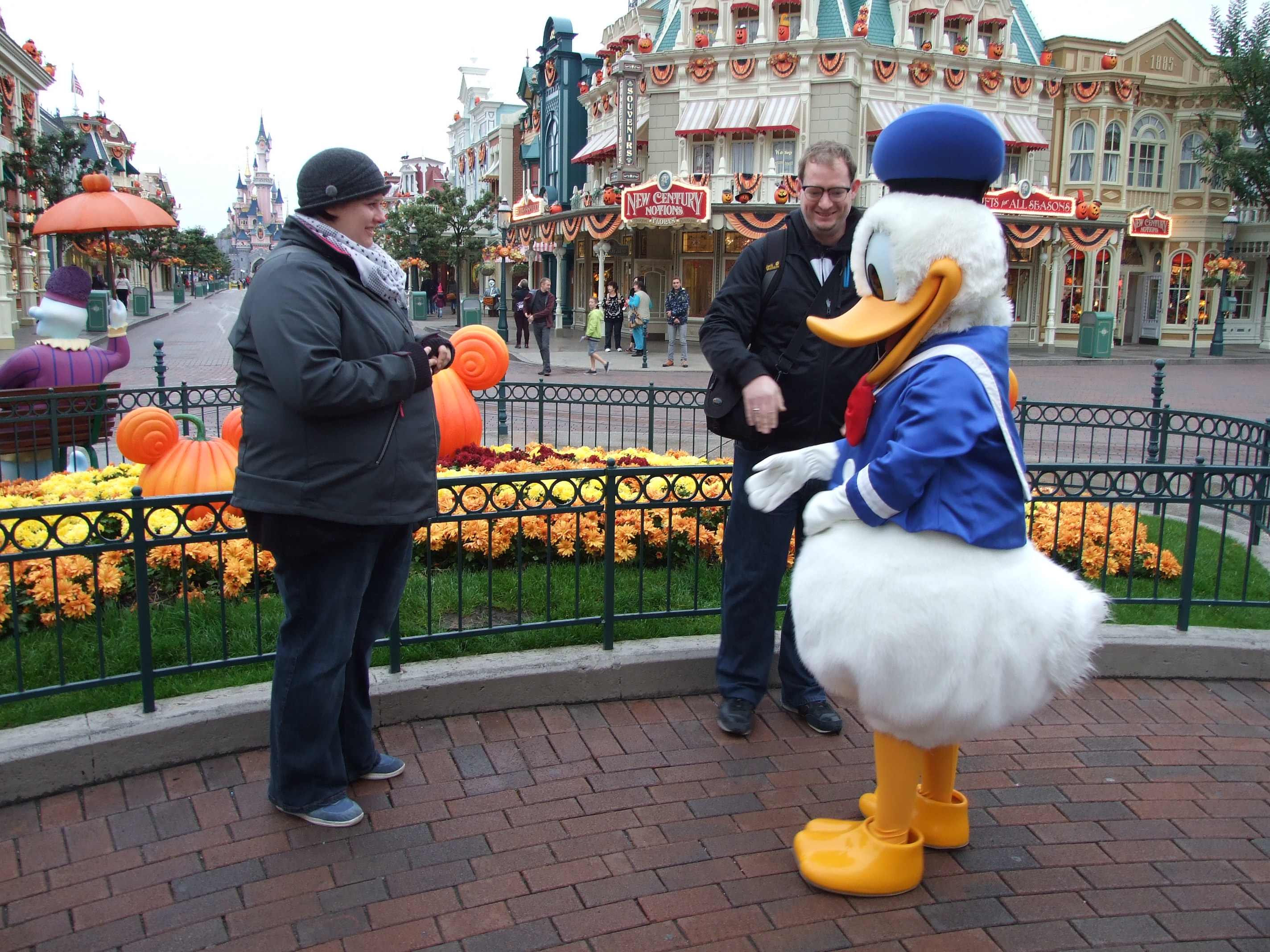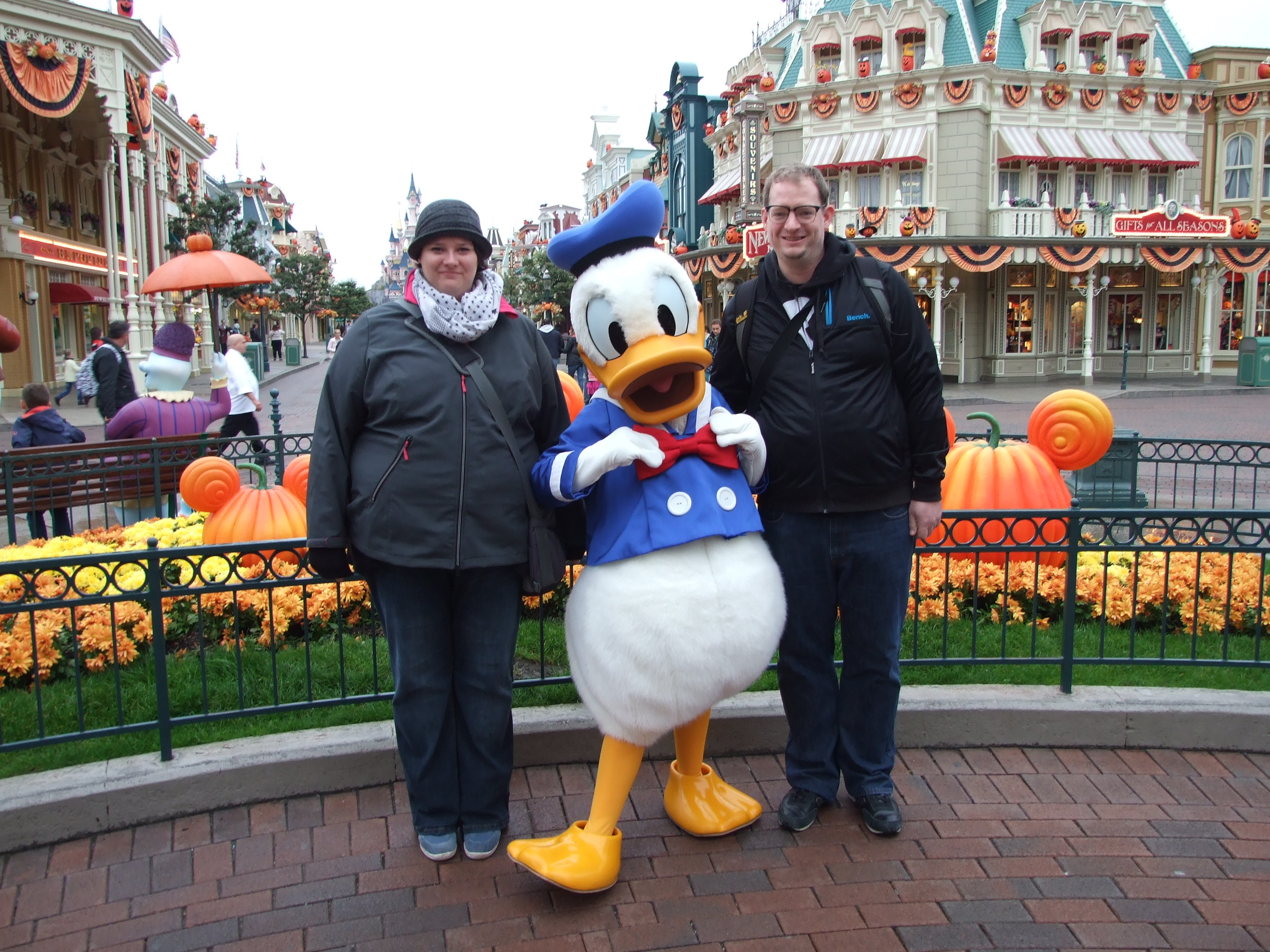 Da es zwei von drei Tagen ziemlich leer war, konnten wir auch einige Charakterfotos machen. Hier ist es einfach schön zu sehen, dass die Mitarbeiter zwei Erwachsene Menschen dabei nicht komisch anschauen und auch die Charaktere auf einen genauso reagieren wie auf Kinder. Ebenfalls toll, istr dass die Mitarbeiter sowohl mit der Parkkamera, als auch mit der eigenen Kamera dann Fotos machen. Und da auch mehr als ein. So wurde sogar der erste Kontakt mit Donald eingefangen. That’s Disney Magic.