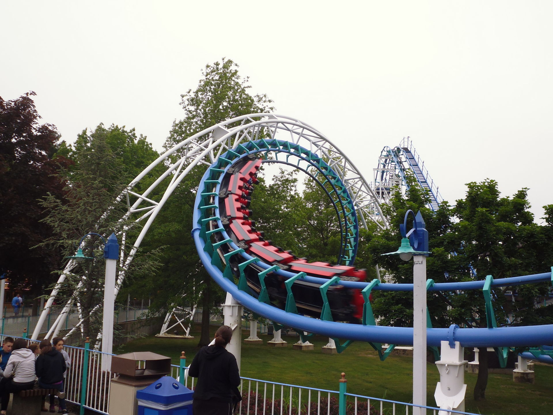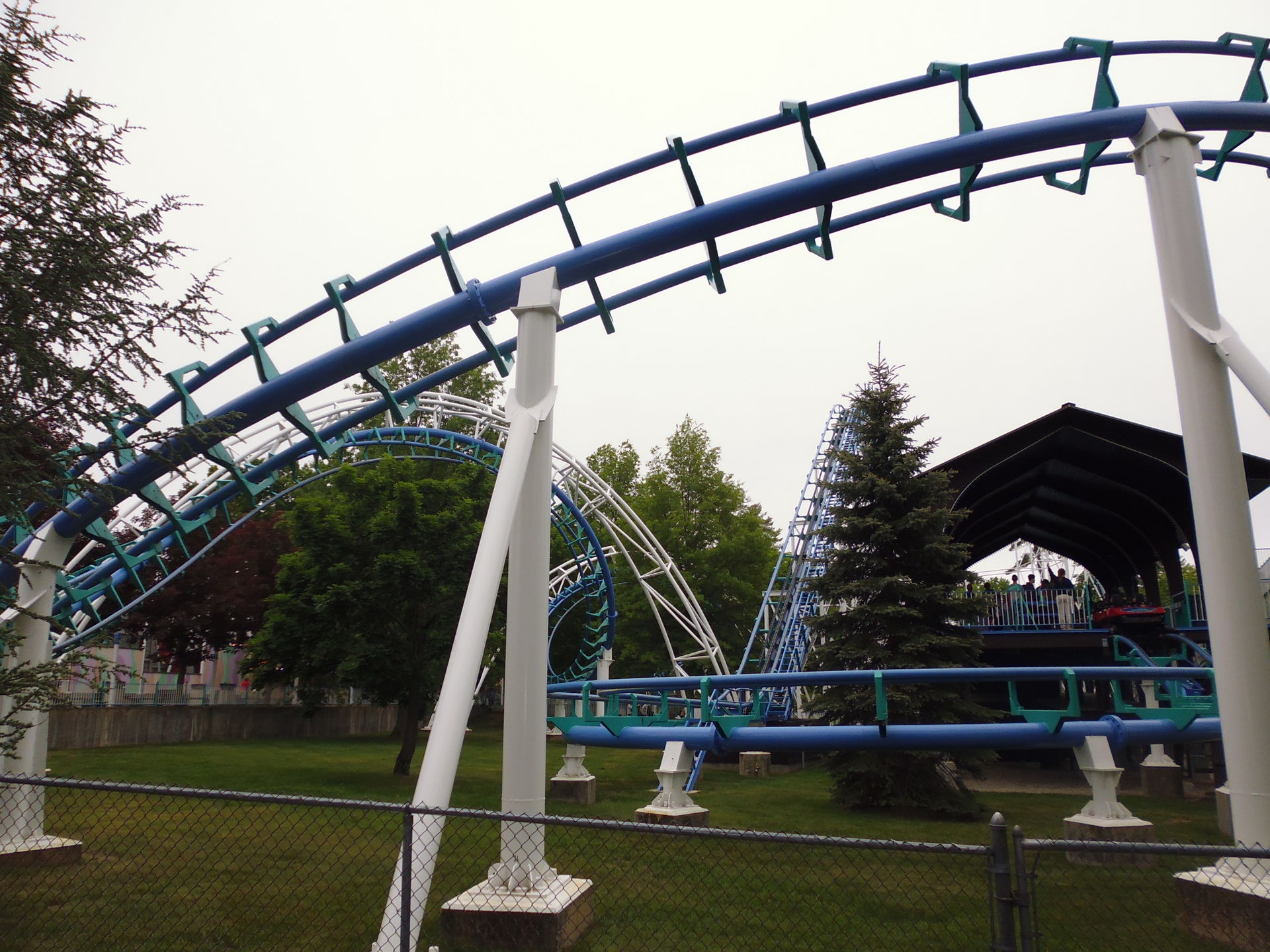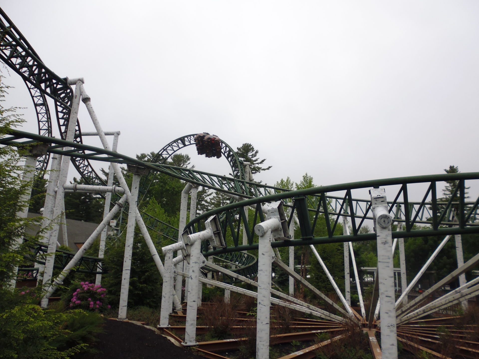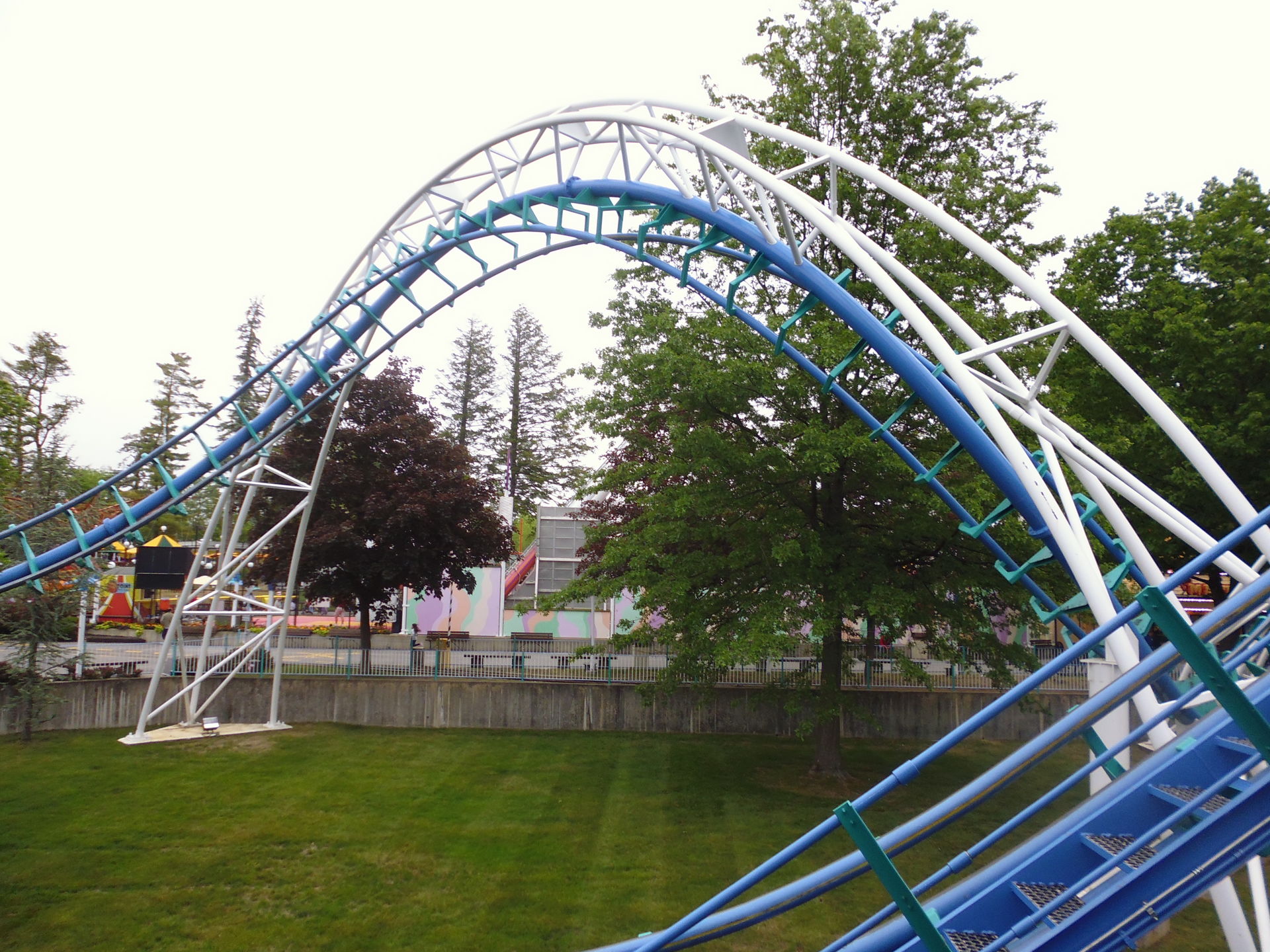 Corkscrew-Layout geniessen. Da ich auch hier wie bei vielen alten Arrow-Loopern die Schulterbügel exakt ausfüllte und eine routinierte vekomagemässe Kopf-Mitbeweg-Choreographie zum Besten gab, ergab sich hier eine schöne und im hintersten Wagen sogar richtig airtimereiche Tourdebüt-Fahrt! Definitiv angenehmer zu fahren als der Jahrgangs-Kollege in Silverwood, aber mit äquivalenter coasterhistorischer Signifikanz - terrific!