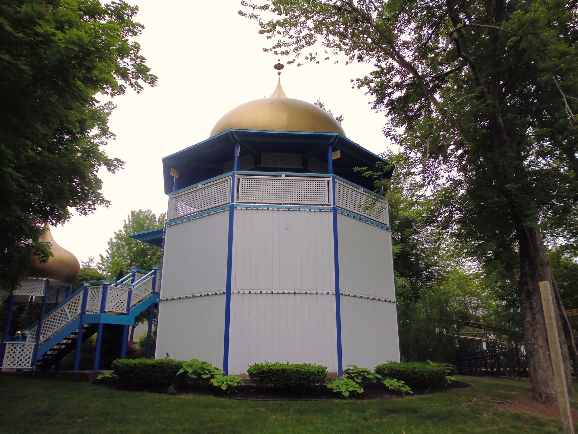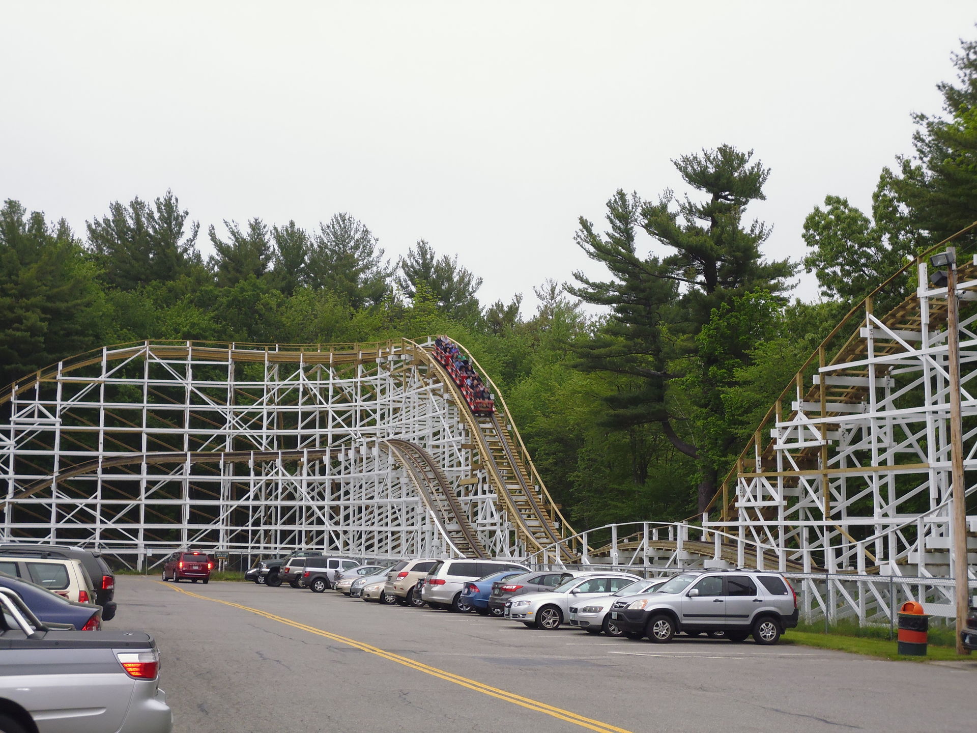 Die schick und prominent über einem Wasserspiel angebrachte ACE-Plakette vor der Station lässt schon einmal auf eine tolle Fahrt schliessen. Historisch bedeutsam ist die Anlage auf jeden Fall: in den 30er-Jahren zwischen Lake Compounce und Quassy im Lakewood Park erbaut, wurde sie nach nur fünf Jahren Betrieb Stück für Stück nach Salem versetzt. Jeder Abschnitt wurde dabei um etwa 15 Zentimeter gekürzt, um sie dem hiesigen Gelände anzupassen.
