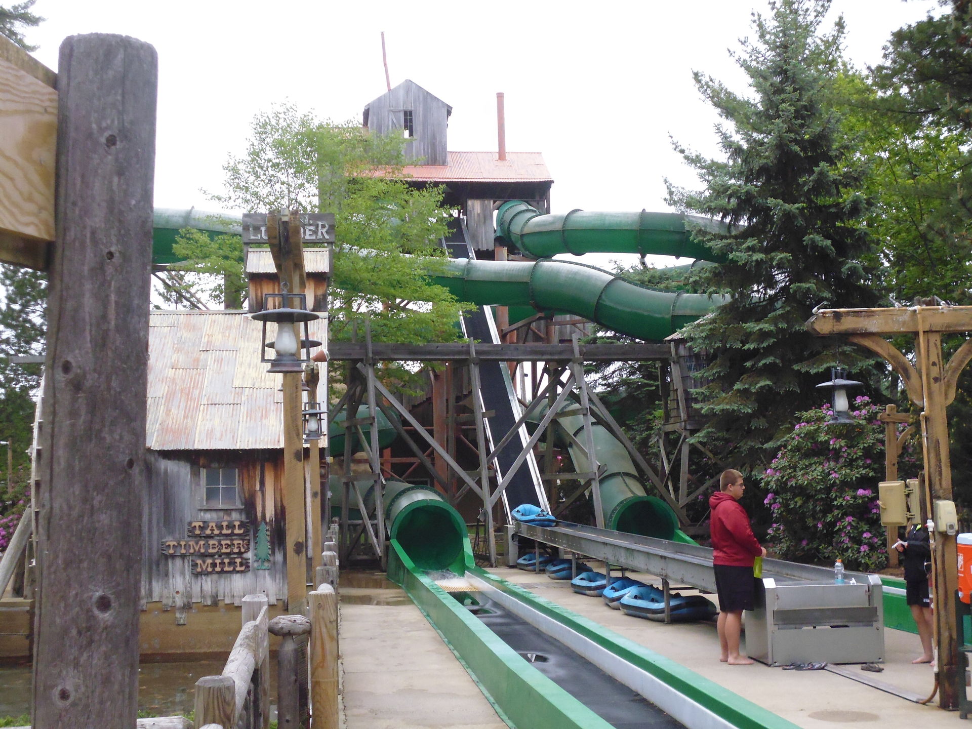 Ausserdem die Schlauchboot-Röhrenrutschen Tall Timber Splash.